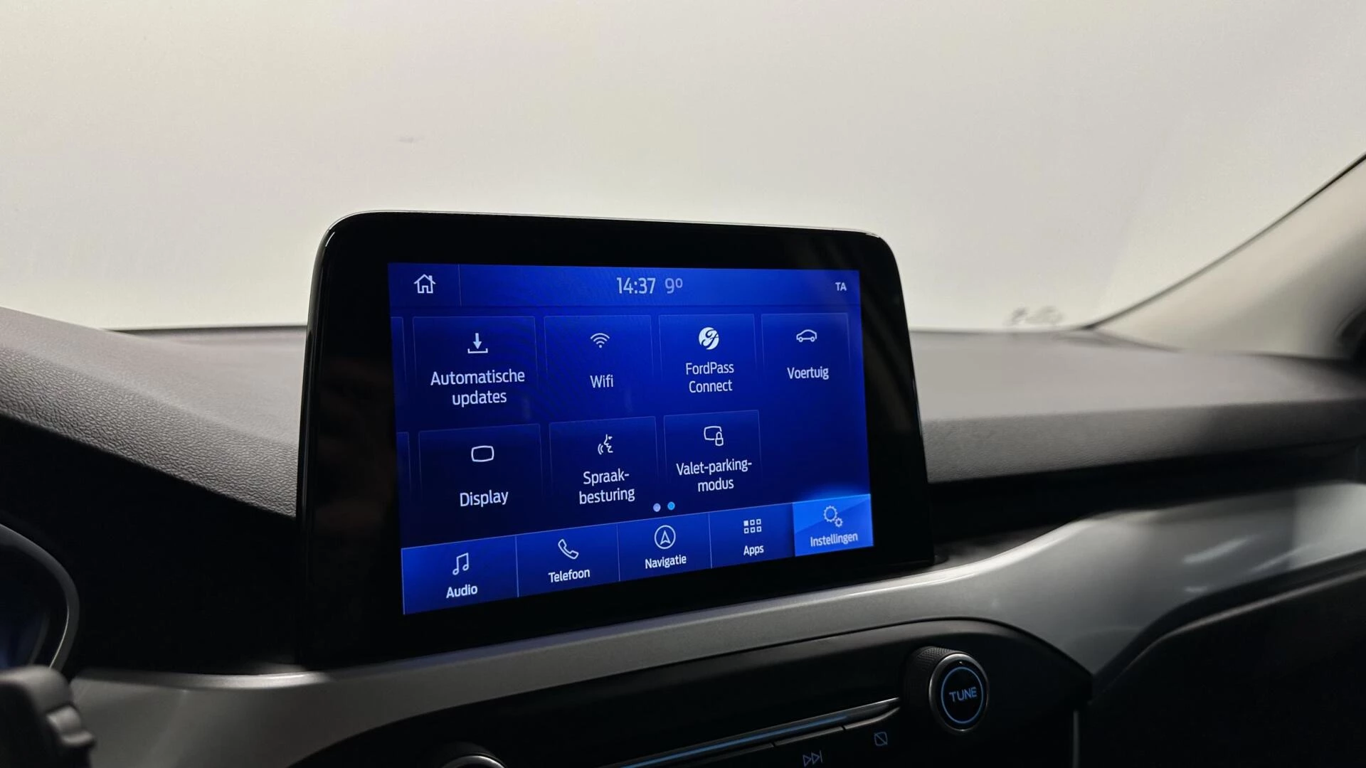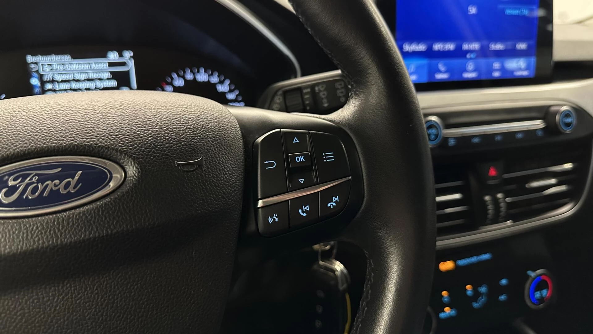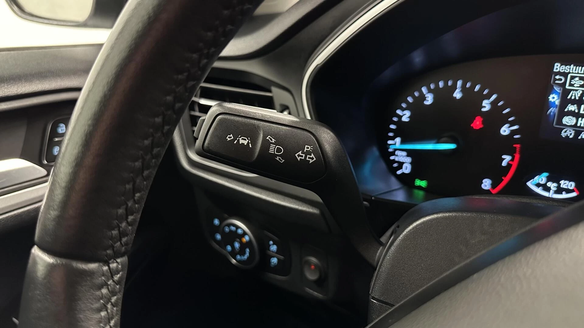 Een aanhanger of caravan kan ook mee, dankzij de elektrisch inklapbare trekhaak Hoe is het met de banden, de accu en andere onderdelen? Connected Services maakt het inzichtelijk, 24/7 via de app. De bediening van het audiosysteem en het full map navigatiesysteem gebeurt met knoppen op het stuur en als u wilt zelfs met uw stem. De audio is overigens voorzien van DAB-radio voor een altijd heldere ontvangst. De sensoren van de achteropkomend verkeer waarschuwing registreren wat er gebeurt in de dode hoeken en achter u. U krijgt meteen een waarschuwing als u een achterligger over het hoofd ziet. Boem is ho? Niet bij deze Ford Focus Wagon. De piepjes van de parkeersensoren waarschuwen u op tijd voor obstakels. U bent in deze Ford ook voorzien van WIFI-hotspot, cruise control, airconditioning, lederen stuur, isofix-aansluiting en centrale deurvergrendeling met afstandsbediening.