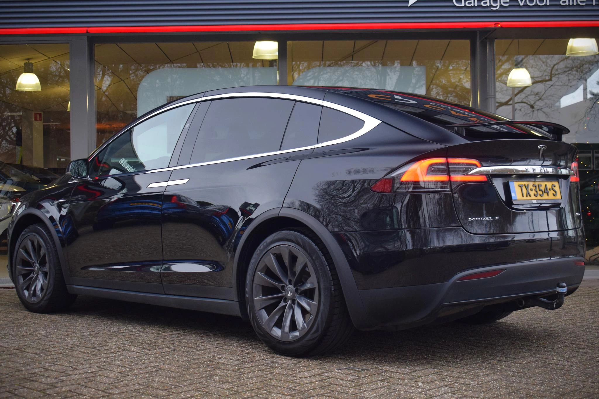 Duurzame mobiliteit is niet langer een ongrijpbare droom. Tesla maakt het waar met de innovatieve elektrische Model X. U hoort slechts het lichte gezoem van de elektromotor tijdens het rijden. De uitermate solide wegligging is te danken aan de ingebouwde luchtvering. De auto is uitgerust met lederen bekleding. U past de stoelen moeiteloos aan, ze zijn elektrisch in te stellen en hebben bovendien een geheugen. Zelfs op de koudste dagen zorgt het verwarmbare stuurwiel, de voorstoelen en de achterbankverwarming ervoor dat u en uw passagiers het nooit koud hebben in deze luxueuze auto. De achterklep opent automatisch met een druk op de knop. Handig als u met volle handen staat. Met de panoramische voorruit voelt het alsof u in een cabrio zit. Tot de uitrusting van deze Tesla behoren ook 20 inch lichtmetalen velgen, LED koplampen, LED-achterlichten, verwarmde ruitensproeiers en snelheidsafhankelijke stuurbekrachtiging.
