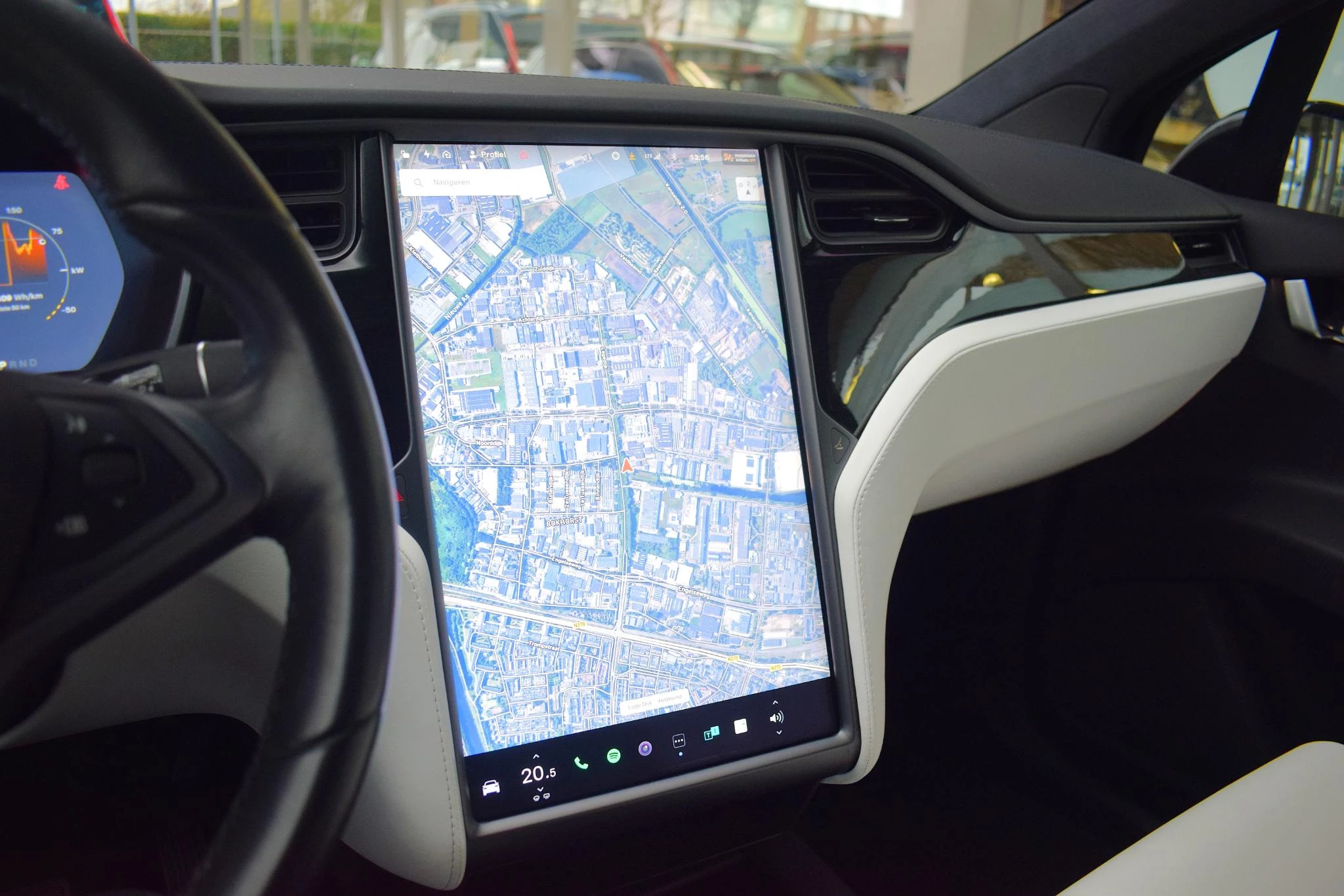 Met de achteruitrijcamera ziet u precies wat er achter de auto gebeurt. De auto is voorzien van een trekhaak en is een uitstekende caravantrekker. U bedient het full map navigatiesysteem en het audio-installatiesysteem via knoppen op het stuur. Zo kunt u steeds uw aandacht gericht houden op de weg. De electronic climate control zorgt voor een behaaglijk klimaat in de auto. Het drukke verkeer eist onderweg al uw aandacht op. Daarom is het goed dat deze Tesla is voorzien van diverse systemen die u assisteren tijdens de rit. Een automatisch inschakelbare verlichting neemt het waar als het donker wordt of gaat schemeren, en schakelt dan automatisch de verlichting in. Op dezelfde manier "ziet" de regensensor de eerste spatjes regen en schakelt dan de ruitenwissers in, en als het harder gaat regenen zet hij de ruitenwissers ook in een snellere stand. Ook cruise control, keyless entry en automatisch dimmende buitenspiegels horen tot de voorzieningen op deze auto.