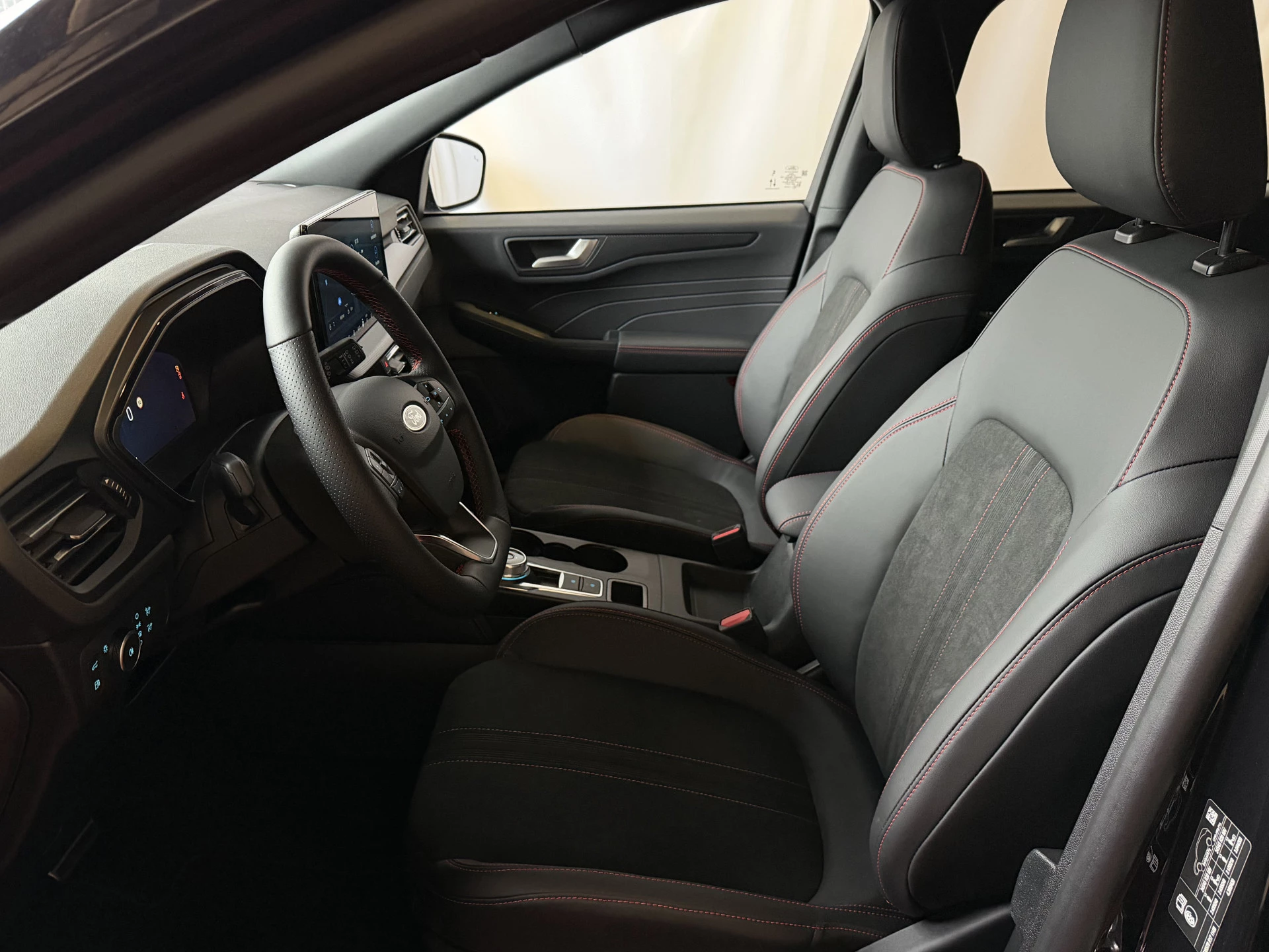 Donkere hemelbekleding en ST-design vloermatten: sportieve afwerking van het interieur.