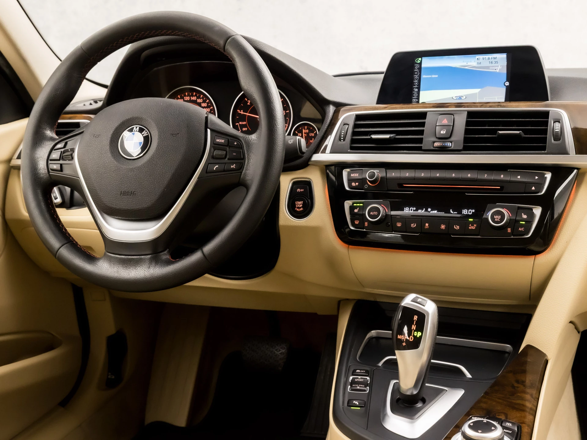 De ingebouwde Connected Services vertellen u via de app alles over de status van de auto. Locatie, onderhoudsstatus, brandstofpeil en nog veel meer! In deze 3-serie vindt u niet alleen schakelaars op het stuur om het audio-installatiesysteem te bedienen en het navigatiesysteem met harde schijf, maar er is ook spraakbediening. Automatische airconditioning regelt volautomatisch de temperatuur. U kiest de gewenste temperatuur en het systeem doet de rest. Parkeerplekken worden er niet ruimer op. Maar met de aanwezige parkeersensoren krijgt u deze BMW 3-serie zonder problemen op z'n plaats. Het luxeniveau in deze BMW is niet alleen gericht op comfort, maar ook op uw veiligheid. Tal van sensoren helpen u om de omgeving in de gaten te houden. De automatisch inschakelbare verlichting zorgt dat automatisch de verlichting wordt ingeschakeld als het donker wordt, wat bijvoorbeeld in tunnels erg handig is. En de regensensor zet de ruitenwissers aan zonder dat u eraan hoeft te denken. Wat u ook in deze auto kunt vinden zijn lederen sportstuur, cruise control, isofix-aansluiting, centrale deurvergrendeling met afstandsbediening en boordcomputer.
