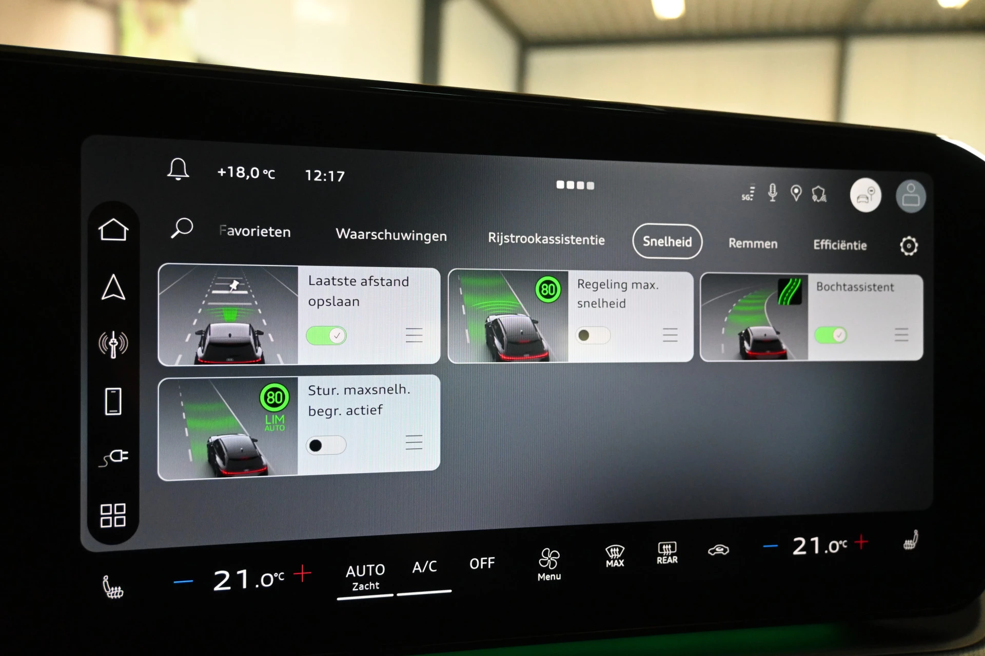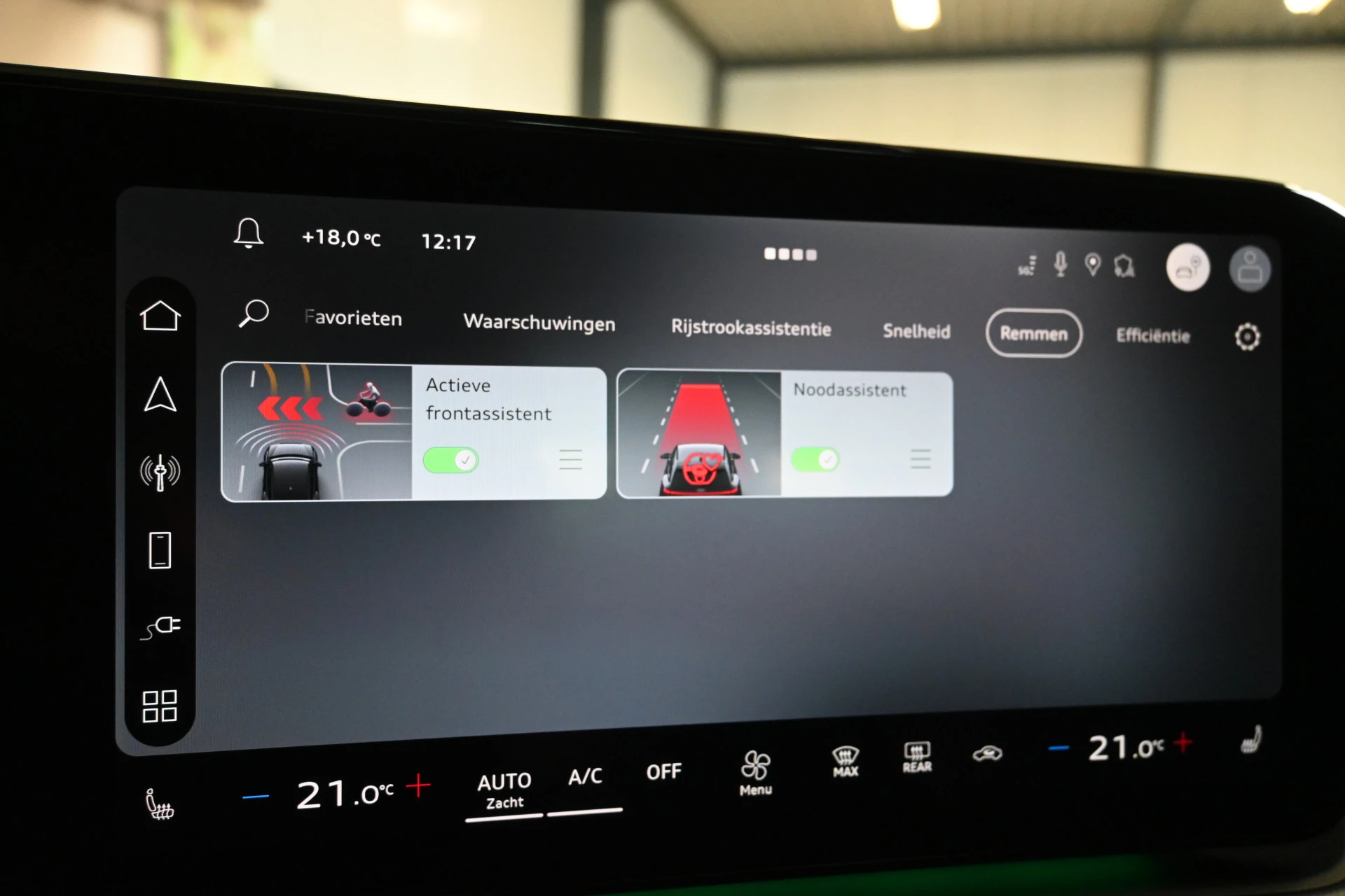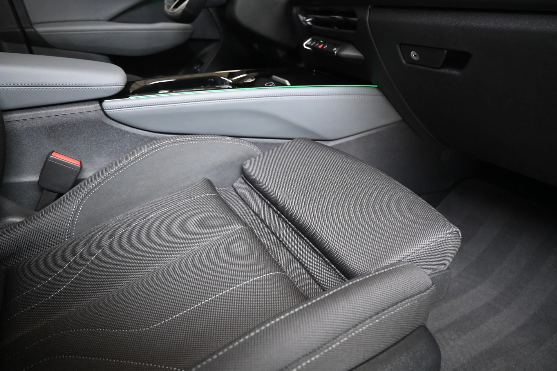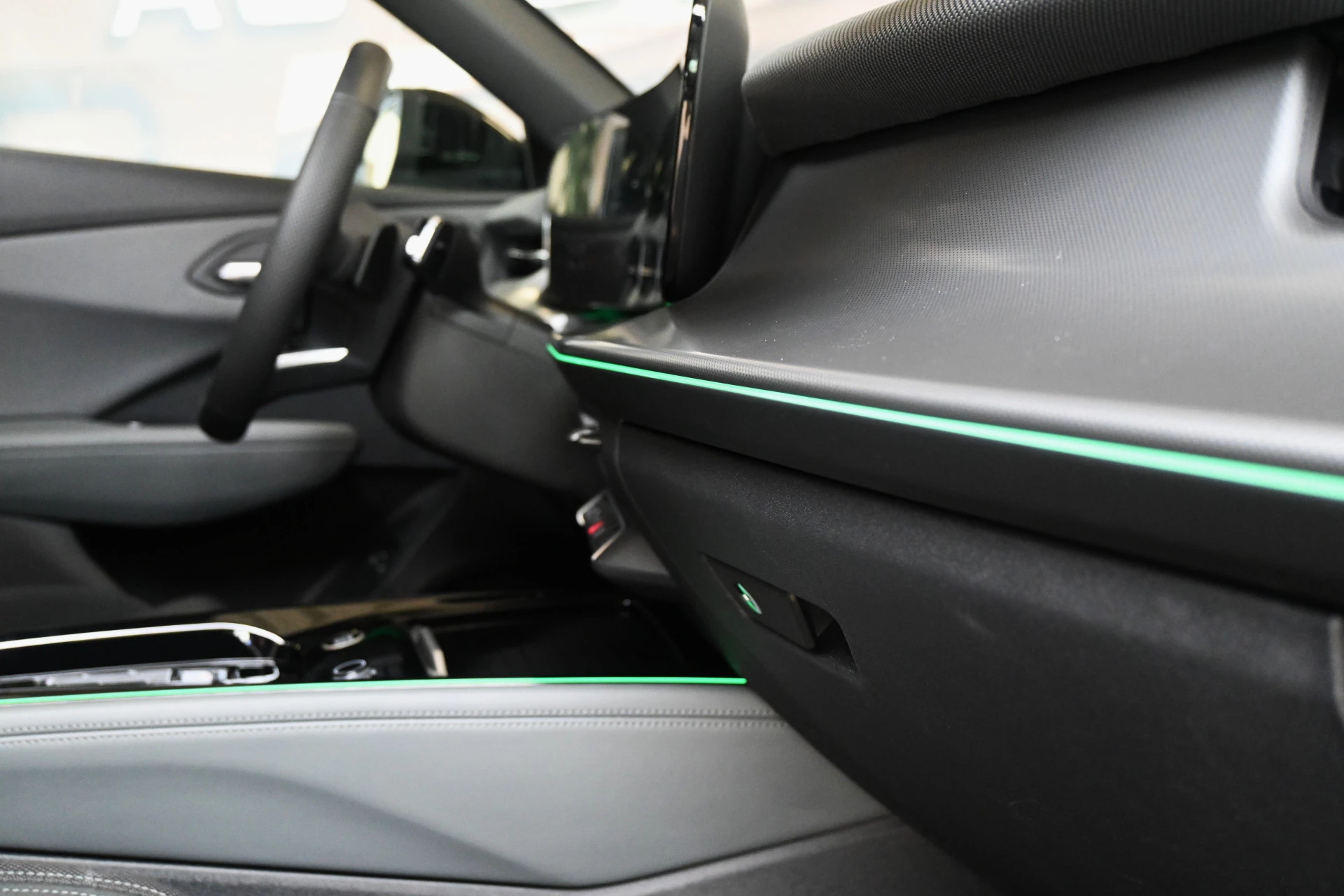 Adaptieve cruise control, sfeerverlichting (kleur instelbaar) en een draadloze telefoonlader maken het interieur compleet.