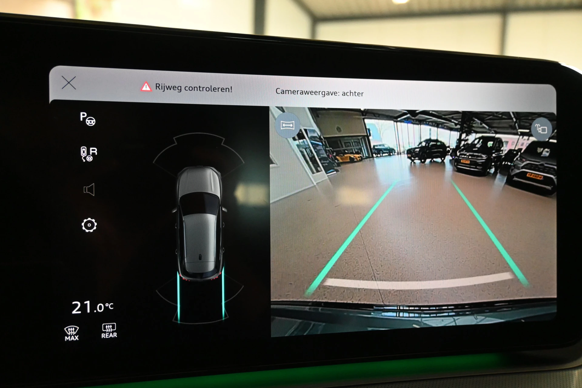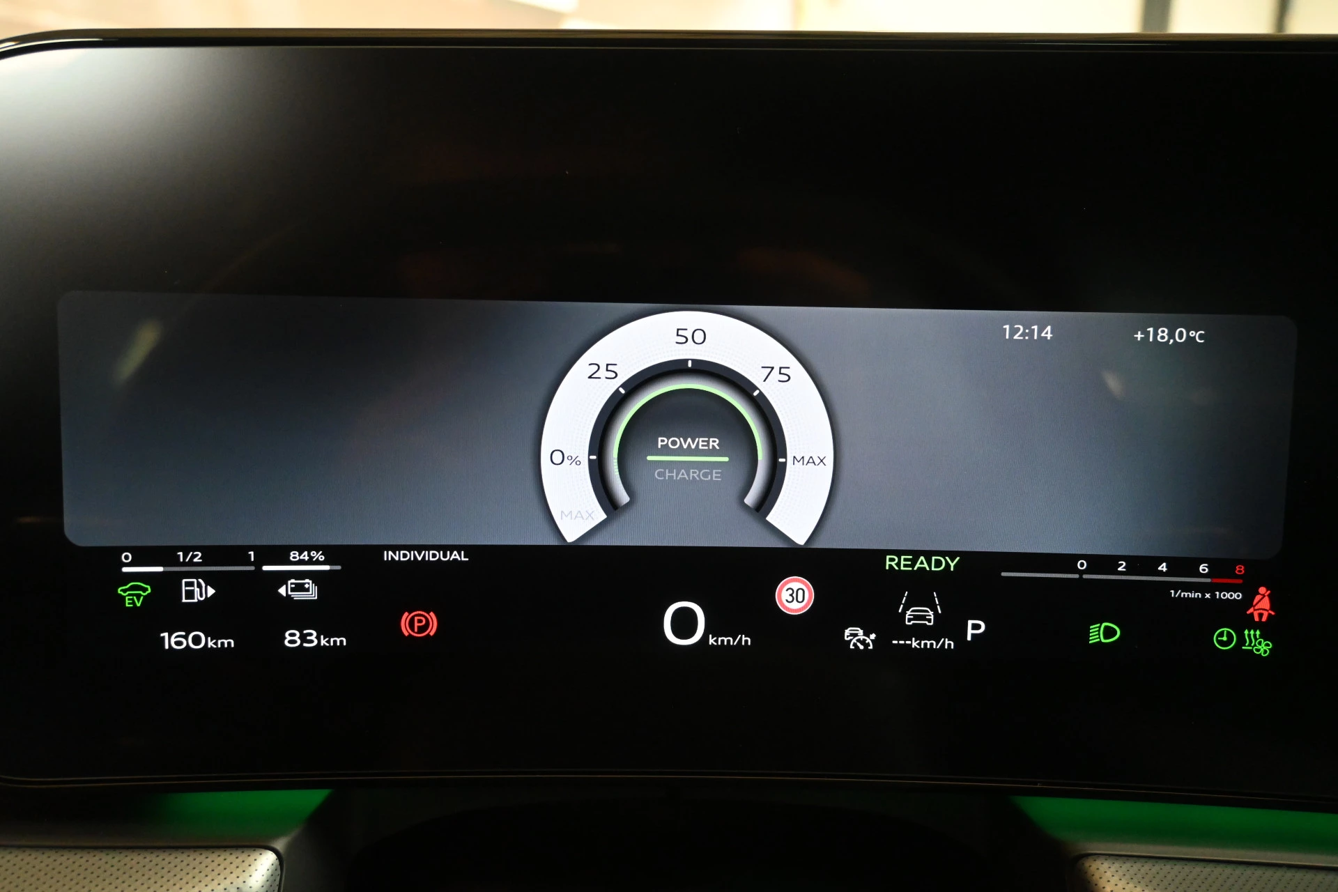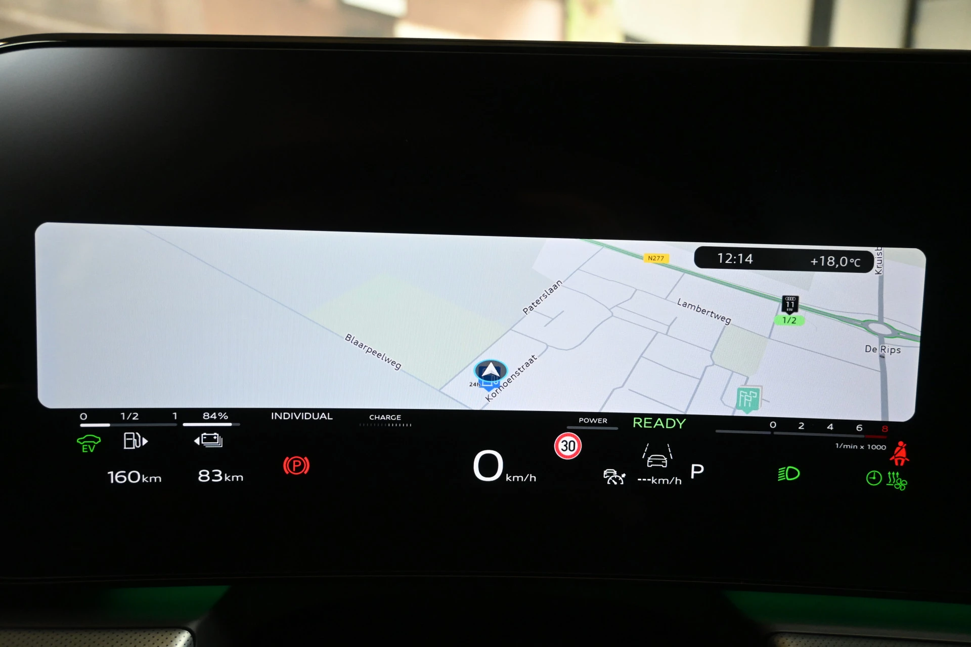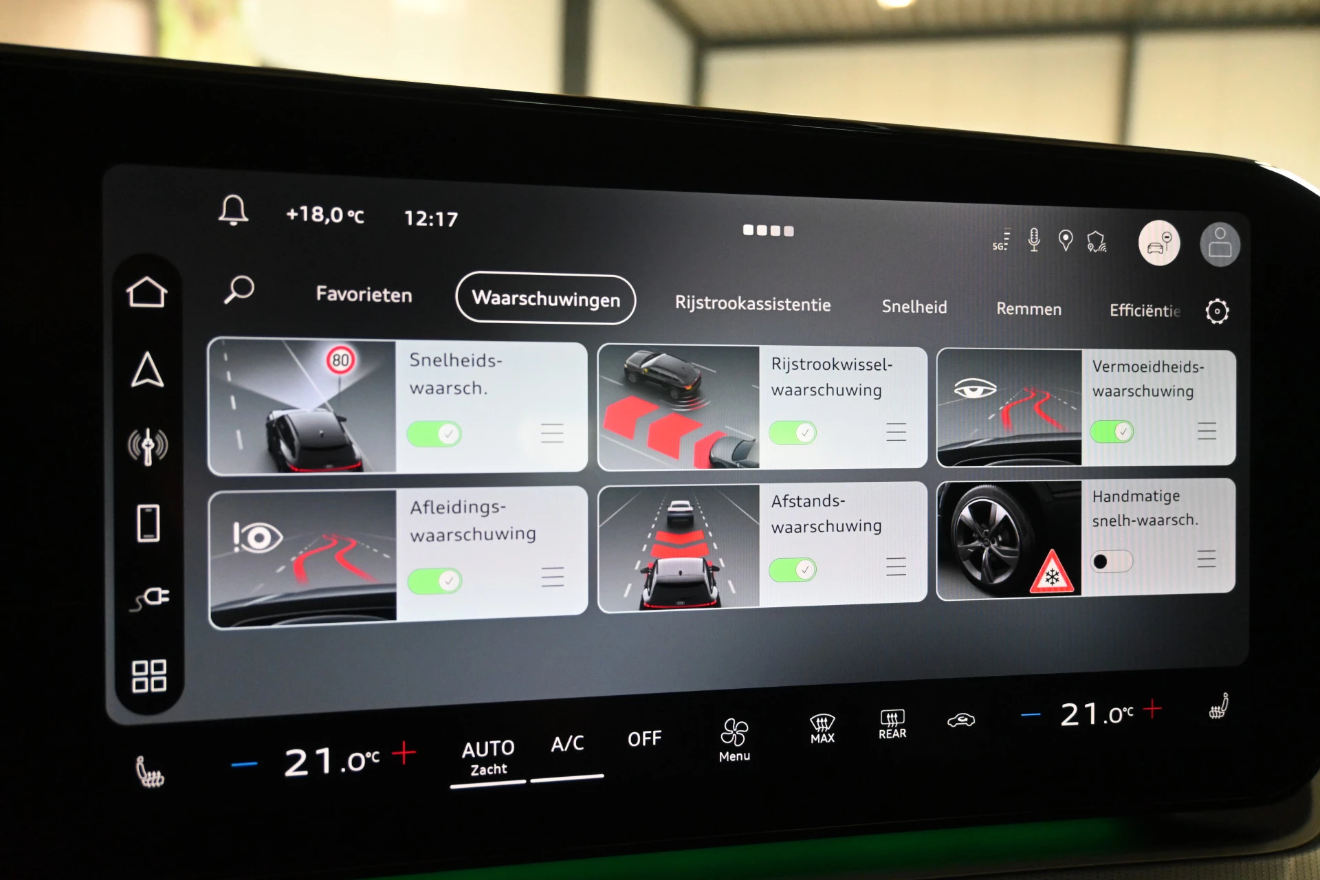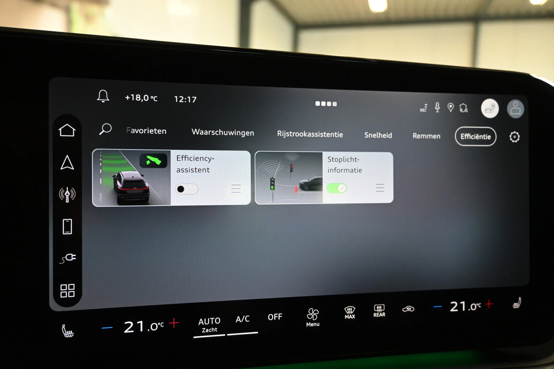Adaptieve cruise control, sfeerverlichting (kleur instelbaar) en een draadloze telefoonlader maken het interieur compleet.