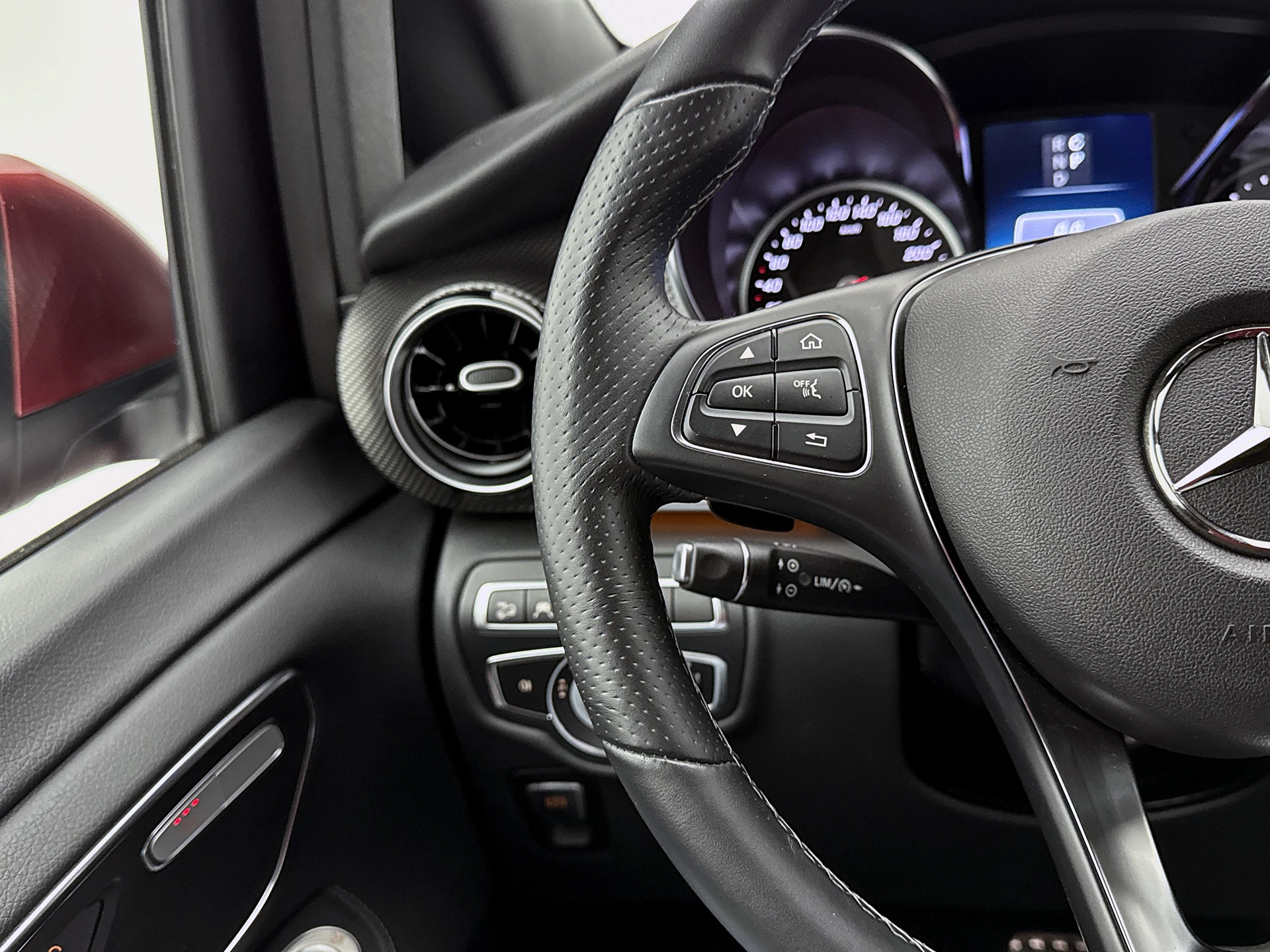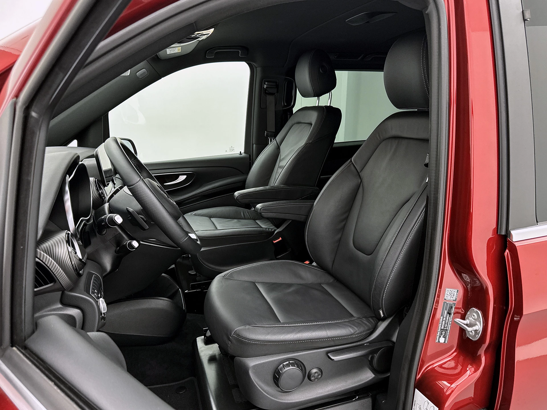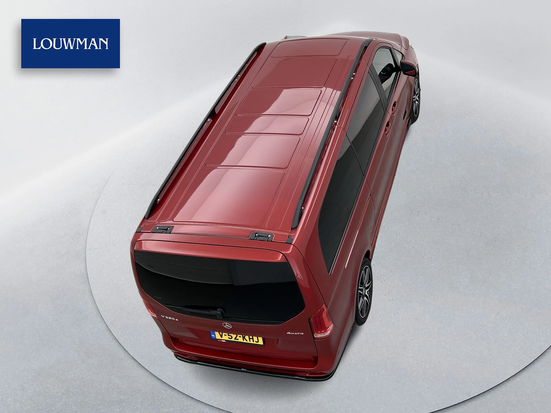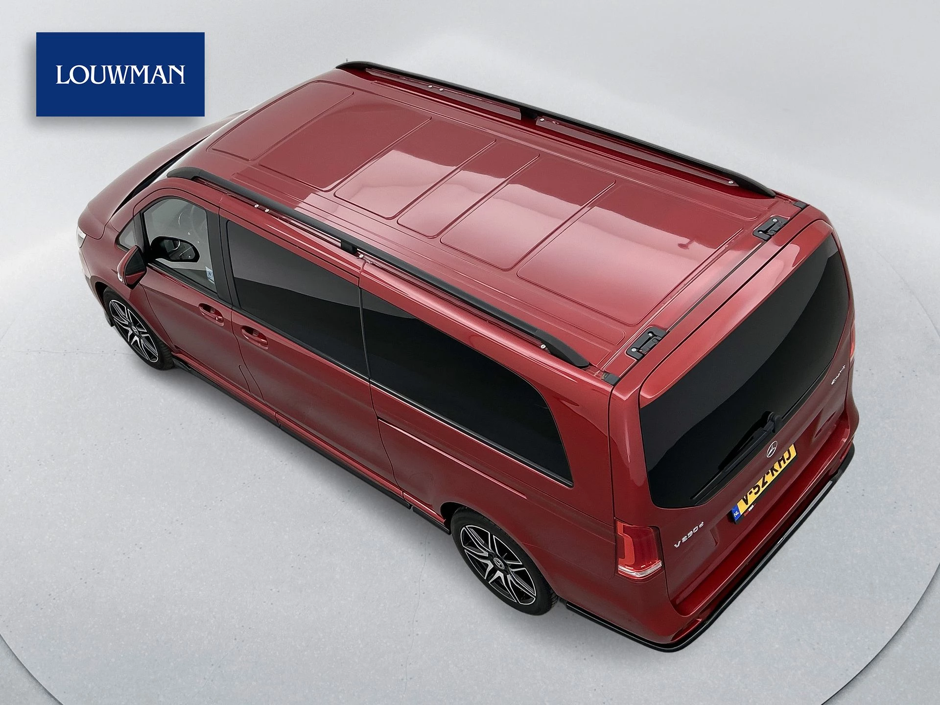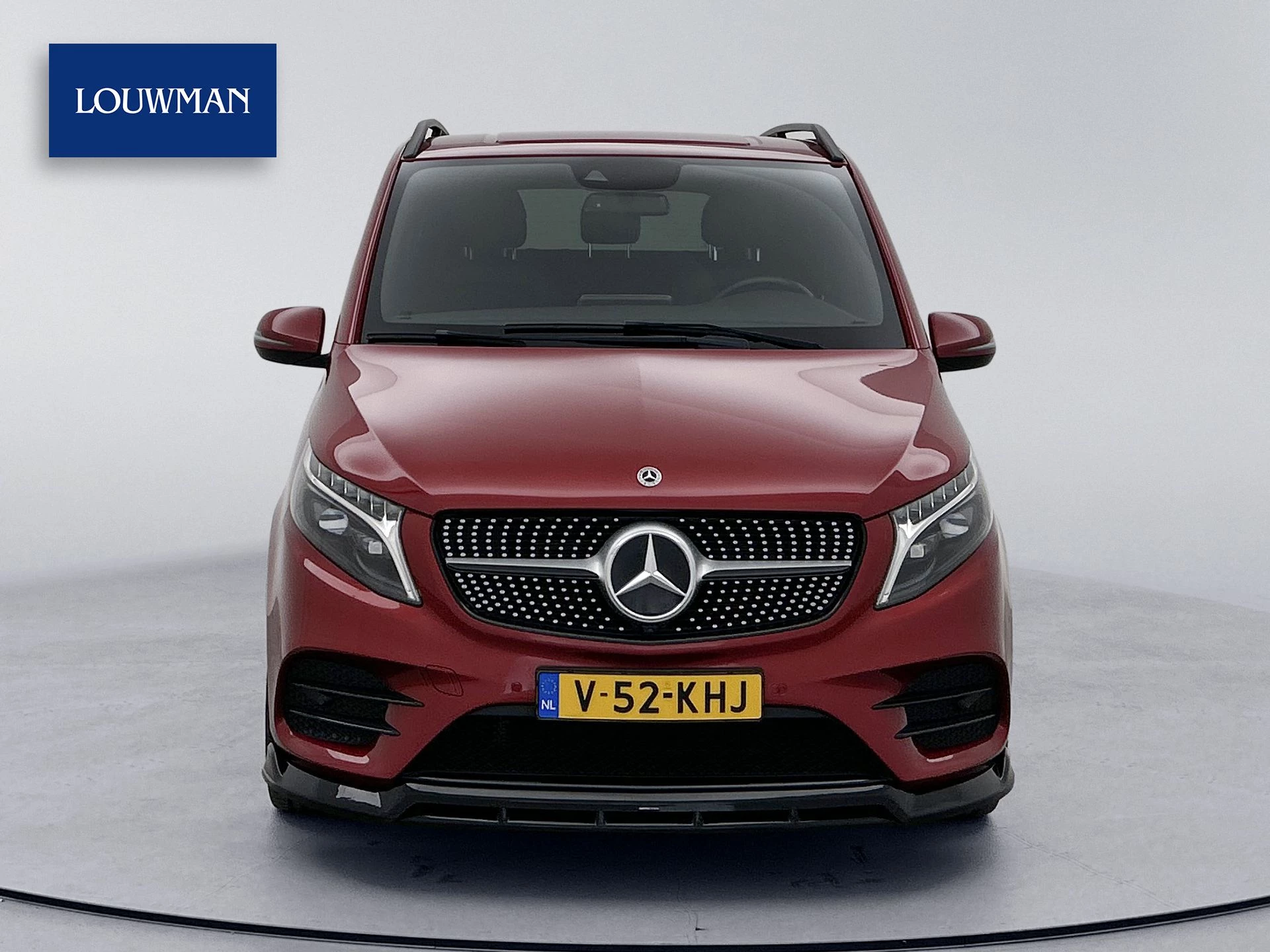 Deze V-Klasse is uitgevoerd in stijlvol donkerrood metallic en voorzien van het AMG Styling-pakket, inclusief 19-inch lichtmetalen velgen en sportieve styling, wat zorgt voor een dynamische uitstraling.