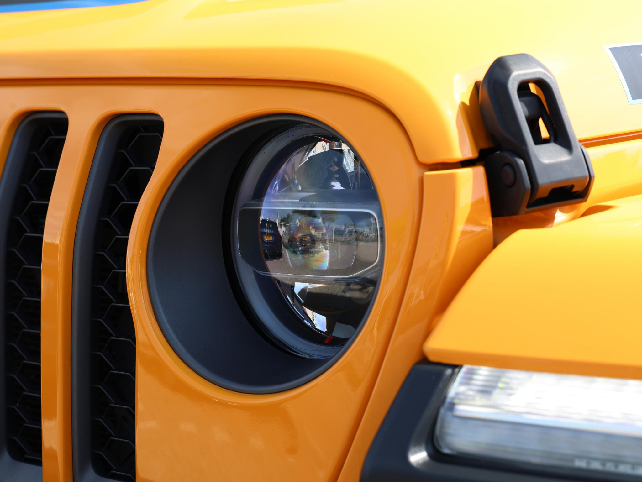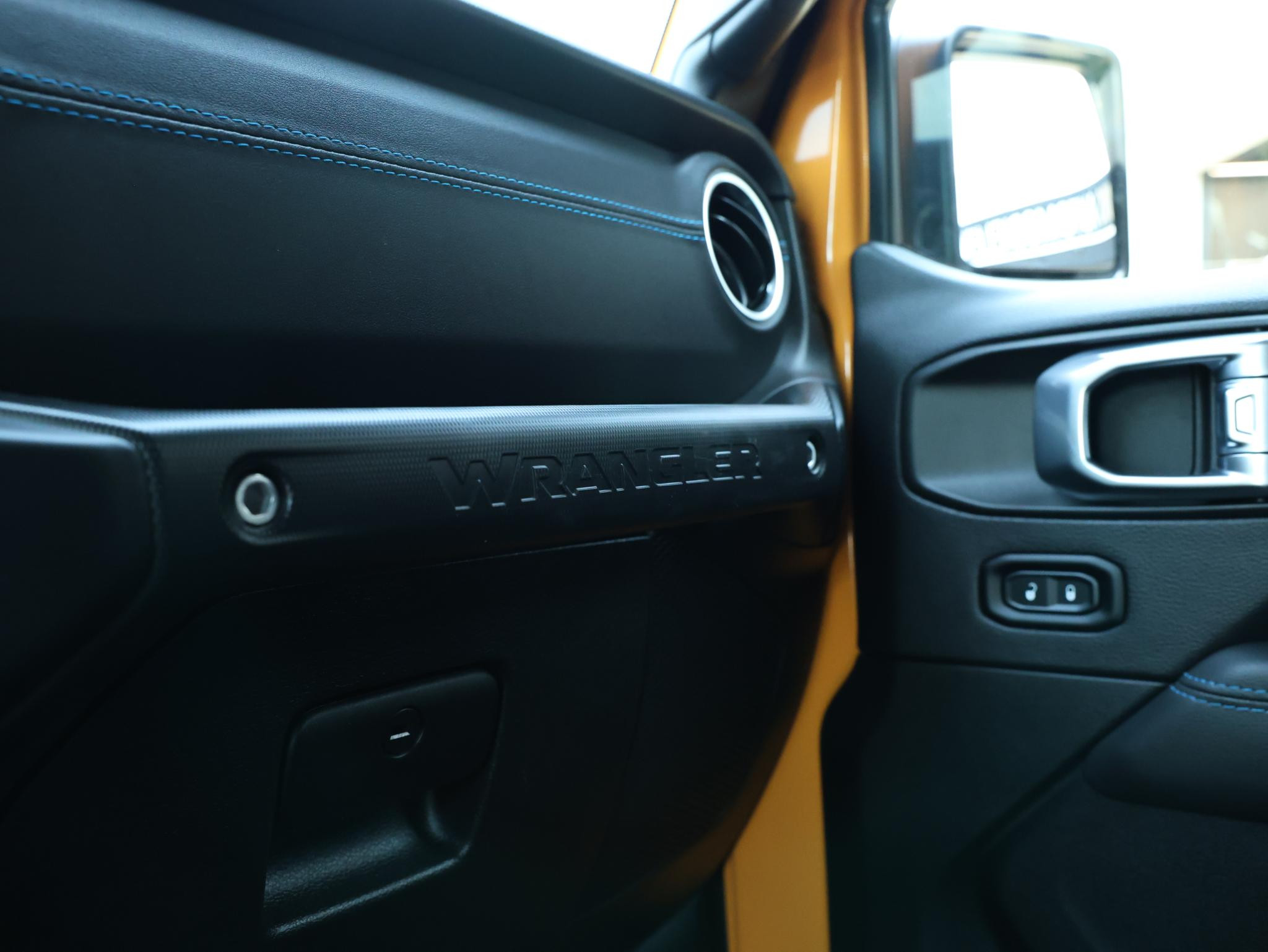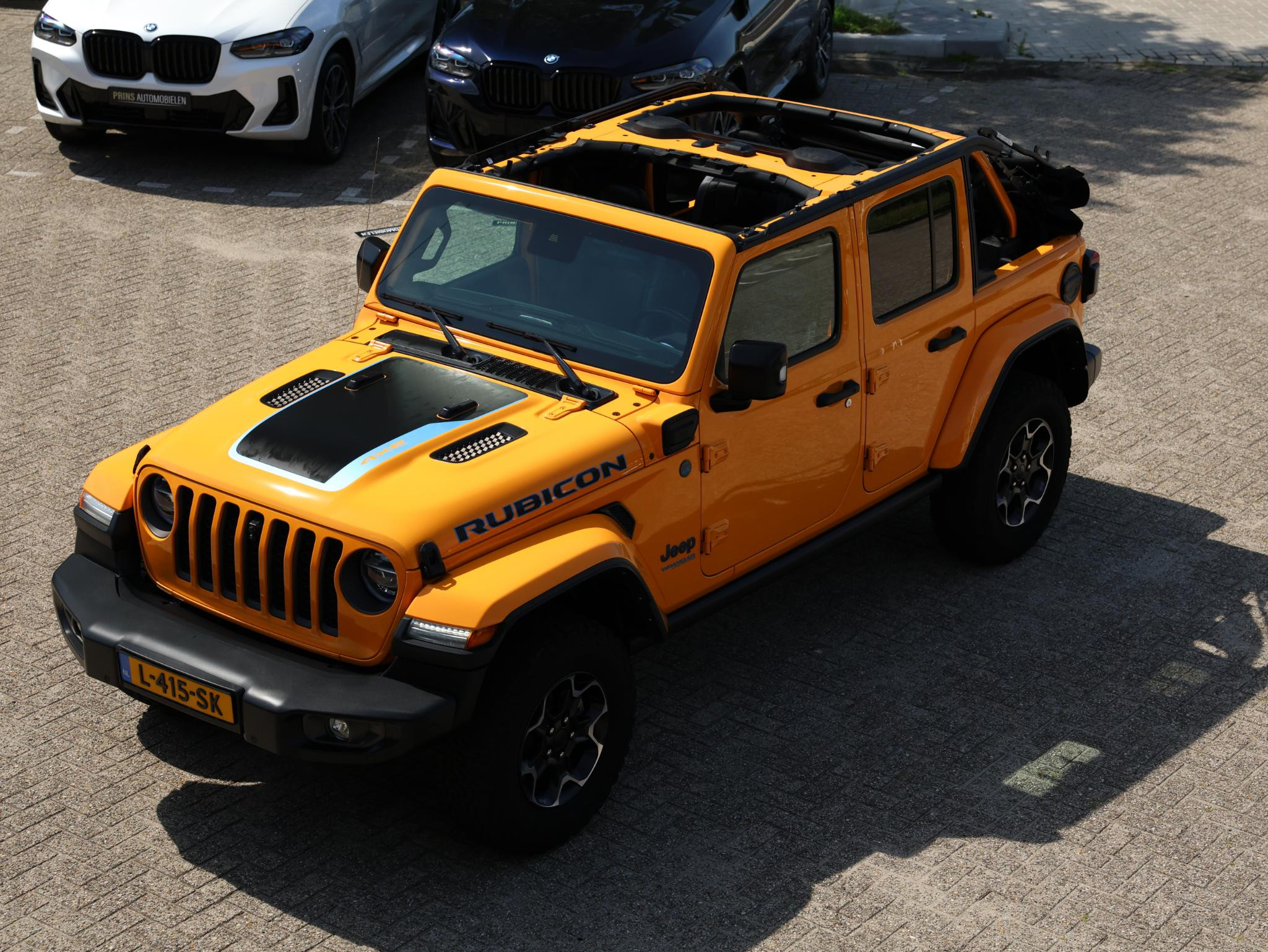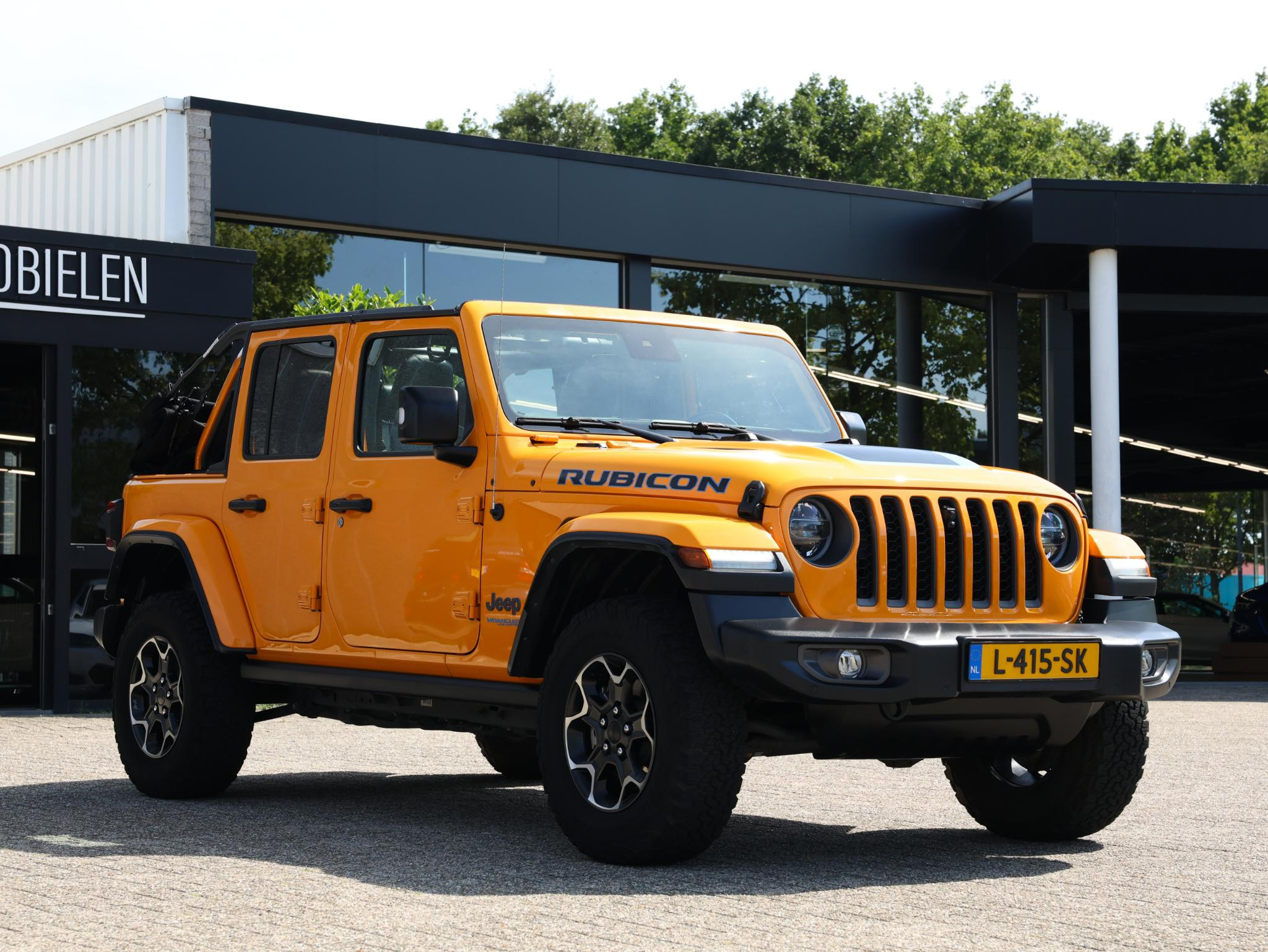 Nacho! Dat is de kleurbenaming van de lak welke deze ruige JEEP Wrangler Rubicon 4XE draagt en daarmee valt hij nog meer op!