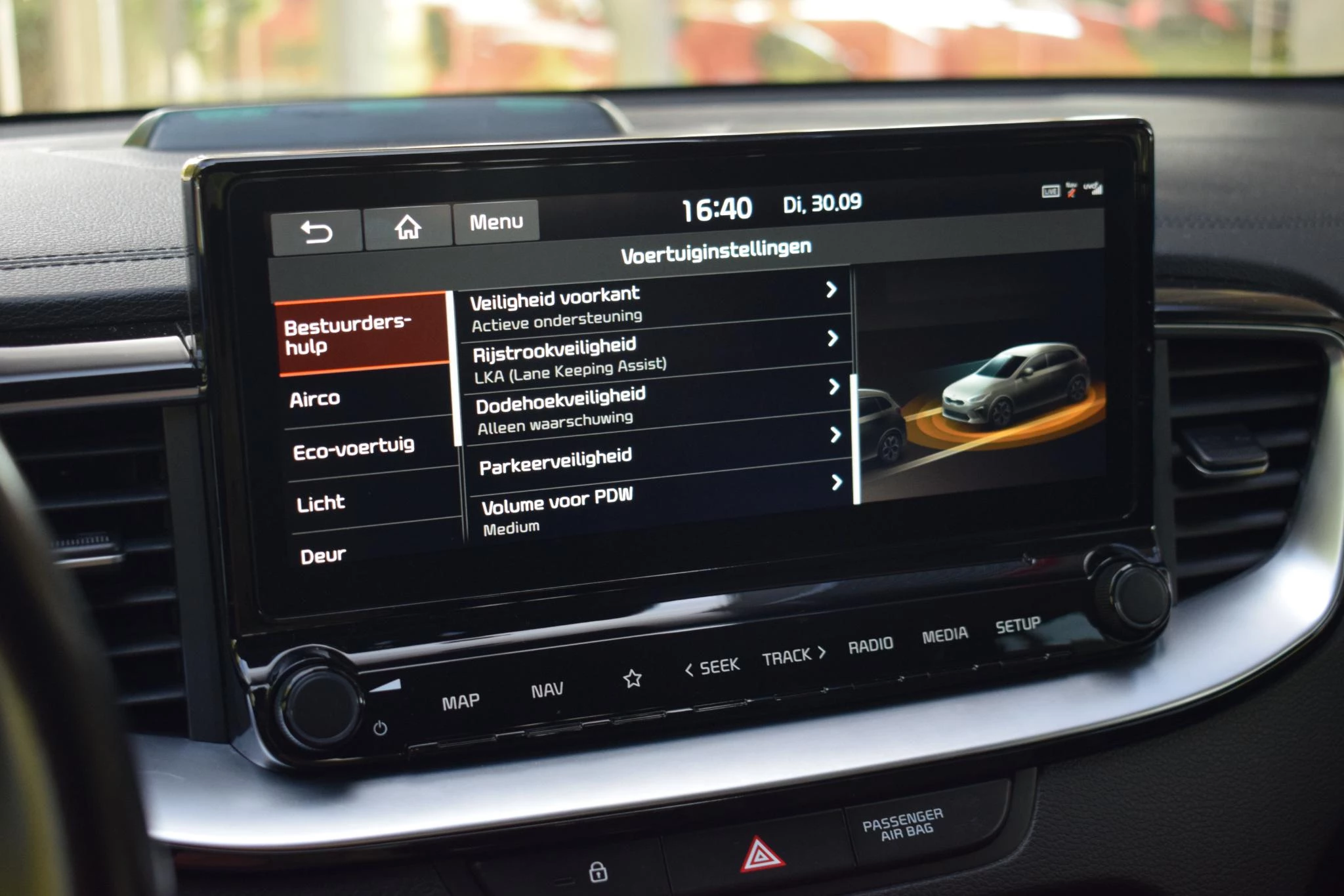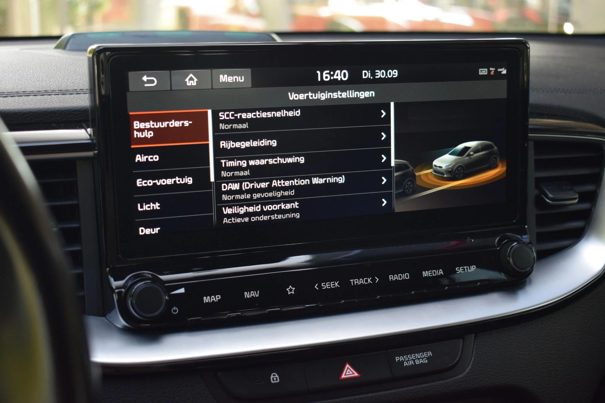 Zoals u mag verwachten van deze Kia Ceed Sportswagon is hij uitgerust met een reeks aan actieve veiligheidssystemen. Ongemerkt buiten de rijstrook raken? Nee hoor, het Lane-keeping systeem waarschuwt en corrigeert. Deze auto waarschuwt de bestuurder als die tekenen van vermoeidheid vertoont en kan zo ernstige ongelukken voorkomen. Met voorzieningen als hill hold functie, autonoom remsysteem en bandenspanningcontrolesysteem, bent u altijd veilig onderweg.