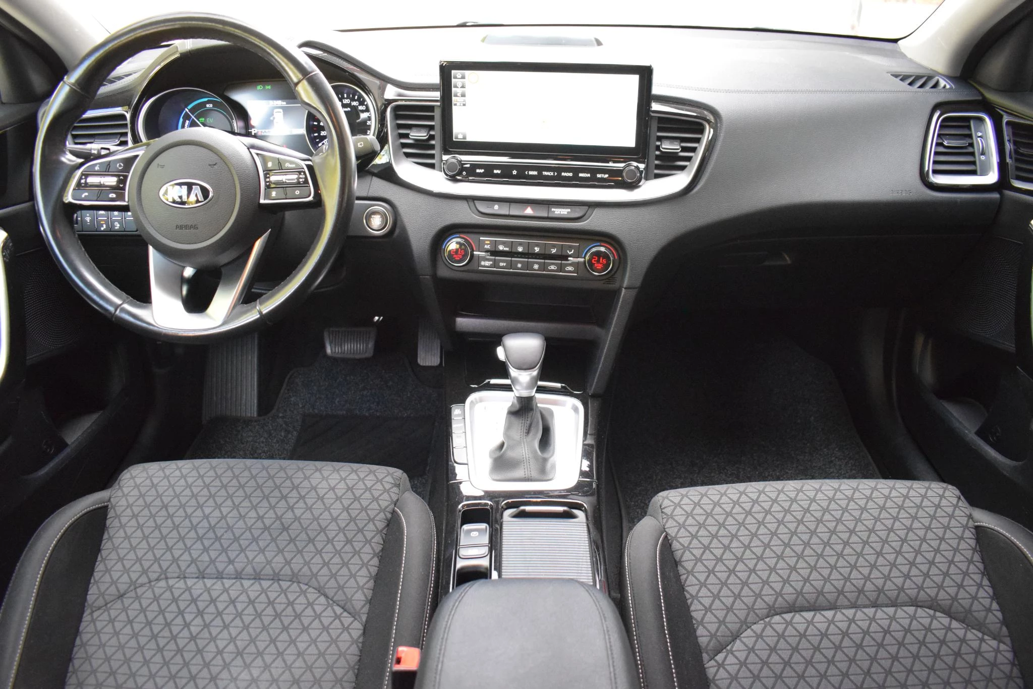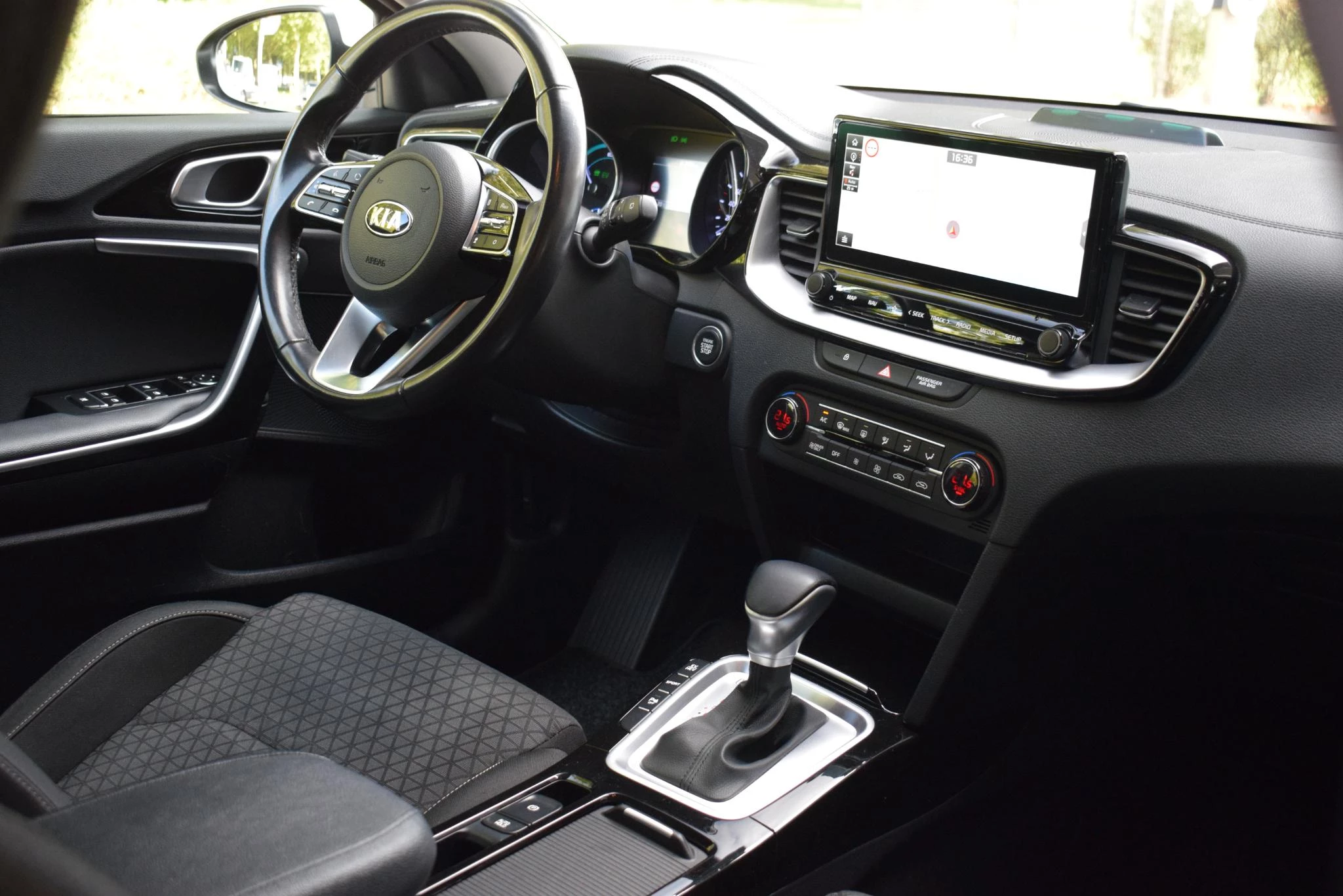 Met behulp van de achteruitrijcamera kunt u zo strak inparkeren als u maar wilt! In deze auto kunt u de belangrijkste functies bedienen met uw stem. Functies activeren en storingen opsporen? Bij deze auto gaat het eenvoudig via uw smartphone. Overal en altijd. De kortste weg, de zuinigste weg, de snelste weg... elke weg is te vinden met het navigatiesysteem. De electronic climate control zorgt voor een behaaglijk klimaat in de auto. U bent in deze Kia ook voorzien van DAB ontvangst, regensensor, cruise control, automatisch dimmende binnenspiegel, lederen stuur en lederen versnellingspook.