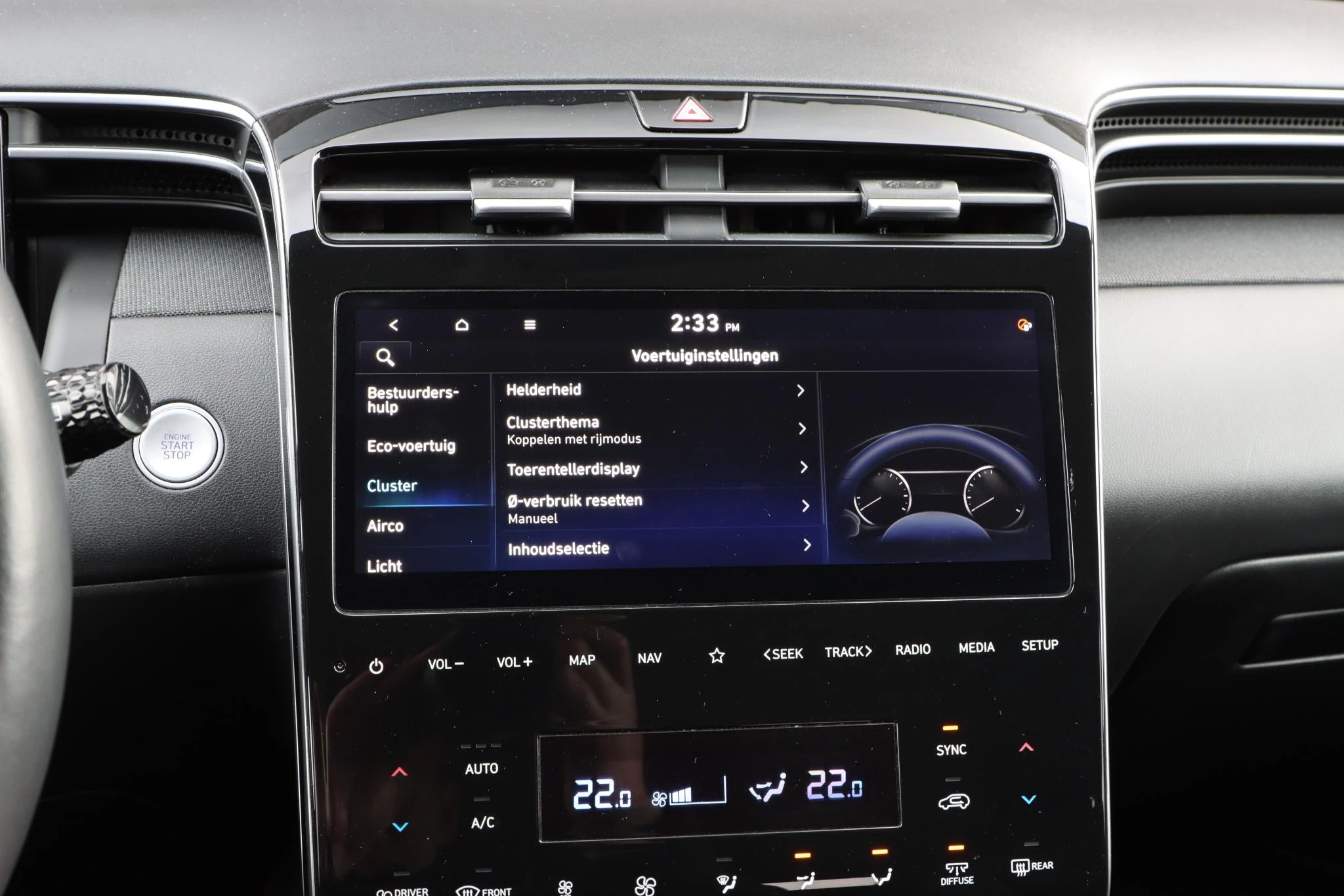 Over het digitale dashboard is goed nagedacht. Alle belangrijke functies binnen en buiten in één oogopslag. Hoeveel ruimte heeft u nog bij het inparkeren? De achteruitrijcamera brengt helder in beeld wat zich achter de auto bevindt en geeft een geluidssignaal. Adaptive cruise control is een comfortabele en veilige optie. Het systeem reguleert de snelheid en houdt automatisch afstand tot uw voorligger. Filerijden zal nooit een pretje worden. Maar met de file assistent wordt het wél relaxter. Deze geavanceerde optie zorgt dat u automatisch de juiste afstand tot de voorligger houdt en remt bovendien als de rij tot stilstand komt. Zo'n lekkere jonge auto heeft natuurlijk leuke extra's, zoals remote services. Met een speciale app maakt u overal verbinding met de auto. Zo kunt u functies activeren en controleren. Natuurlijk behoren dashboard met spraakbediening, premium audiosysteem, full map navigatiesysteem, kruisend verkeer detectie, automatische airconditioning en draadloos opladen ook tot de uitrusting van deze complete auto.