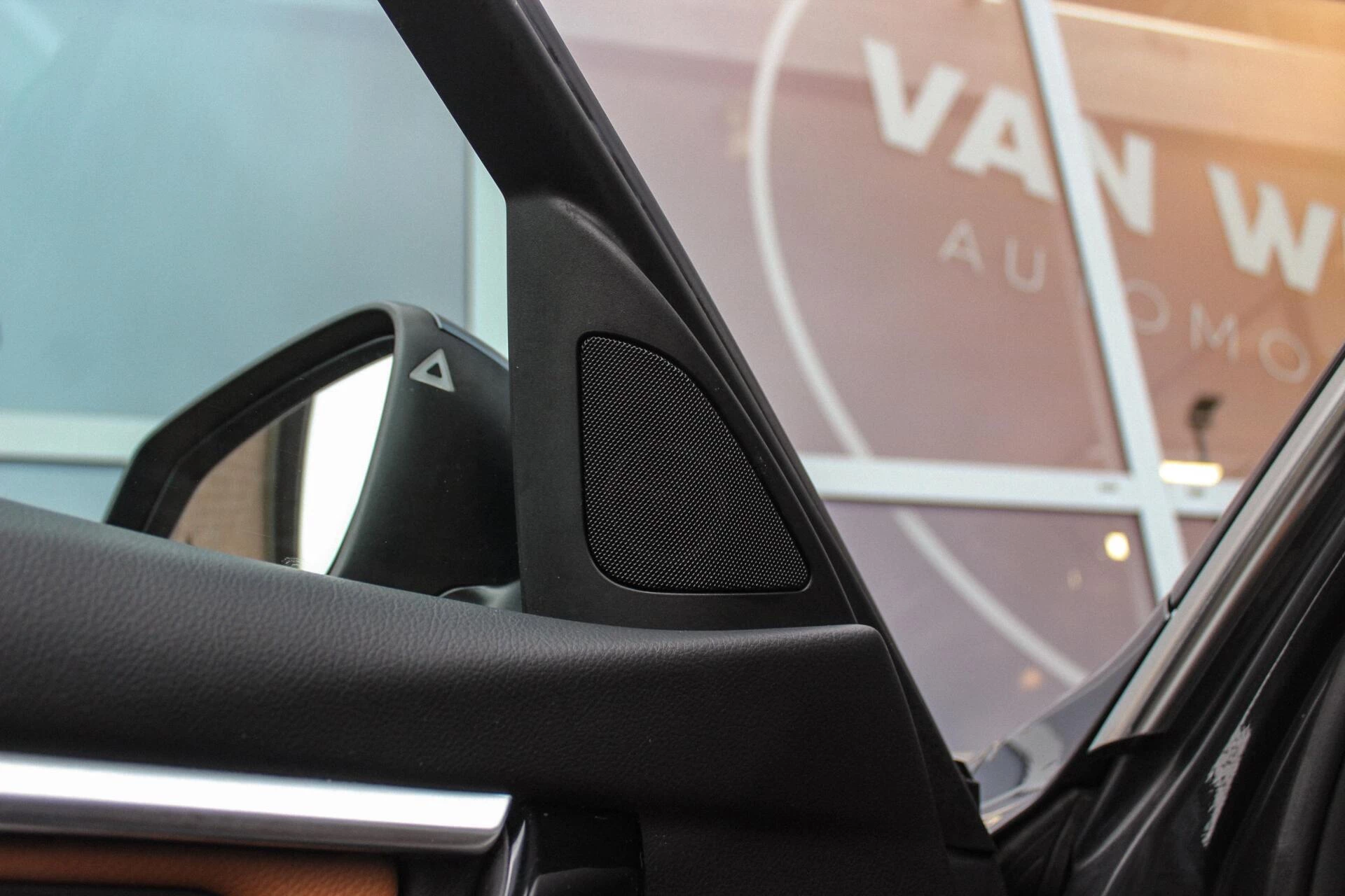 Van binnen een Dakota Leder Cognac interieur met een zwart kleurige hemelbekleding. Achterin een neerklapbare achterbank met ISO-fix aansluitingen.