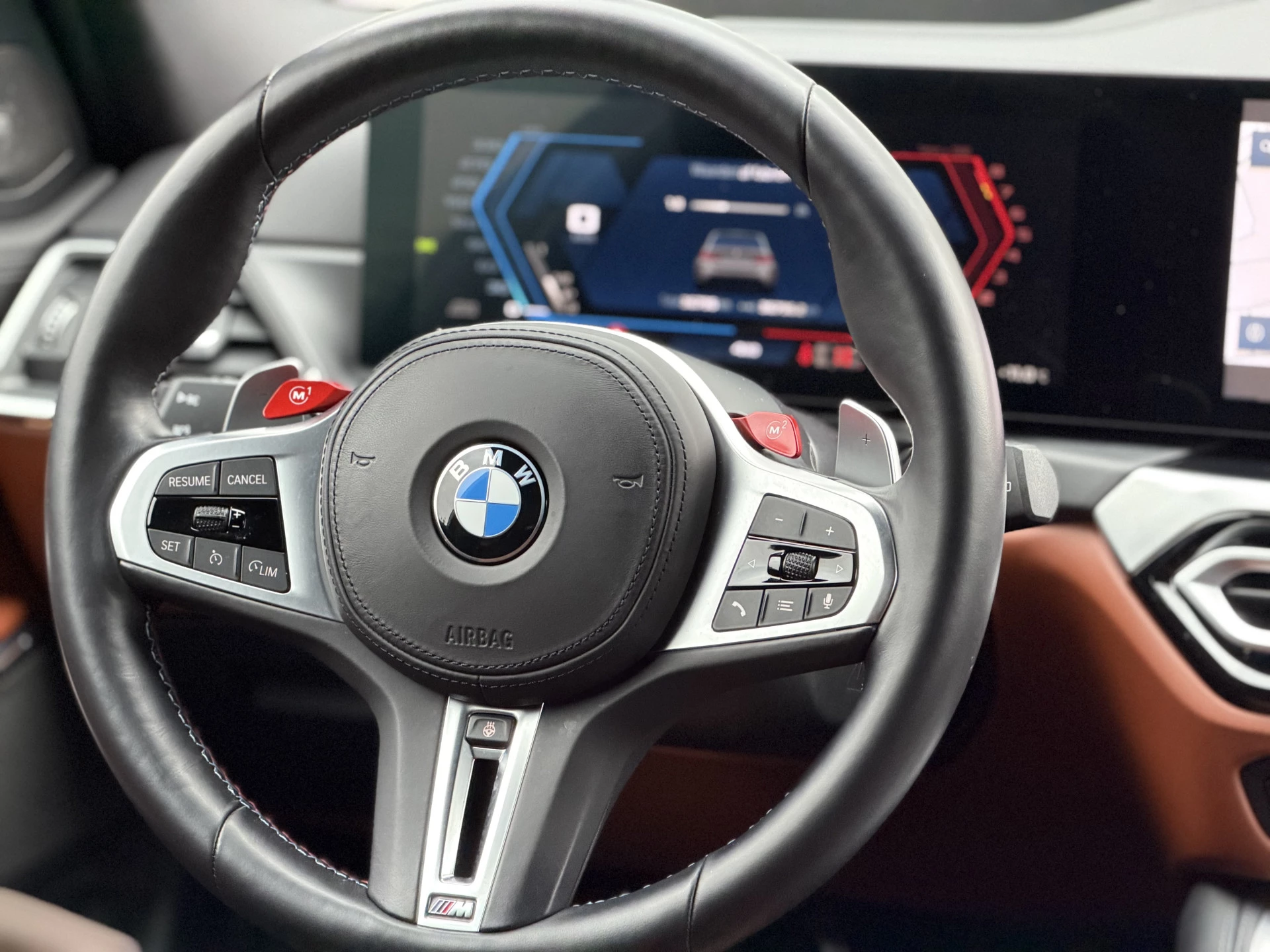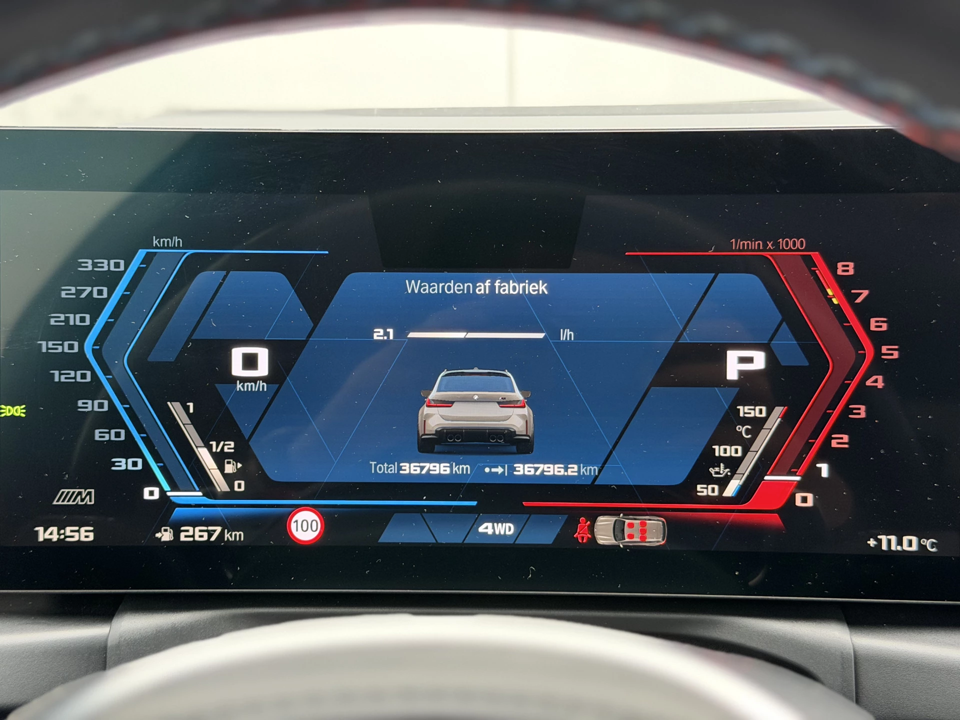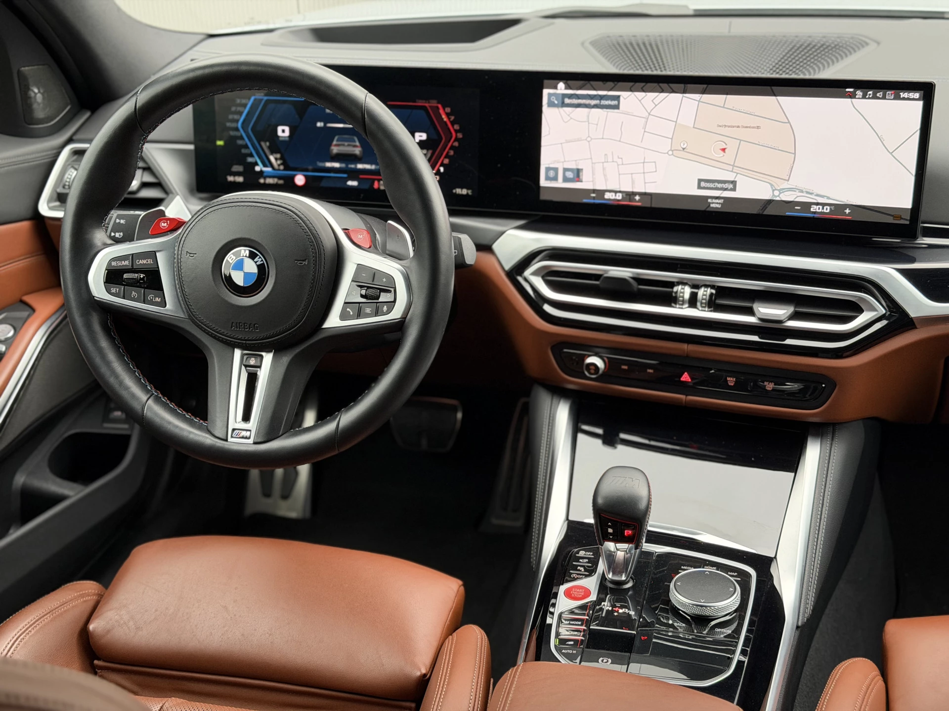 Bijzonder mooi samengestelde BMW M3 Touring die naast zijn riante optielijst is voorzien van de onmisbare (Origineel BMW) 1000M Performance wielen met 20 inch voor en 21 inch achter, volledig nieuw.