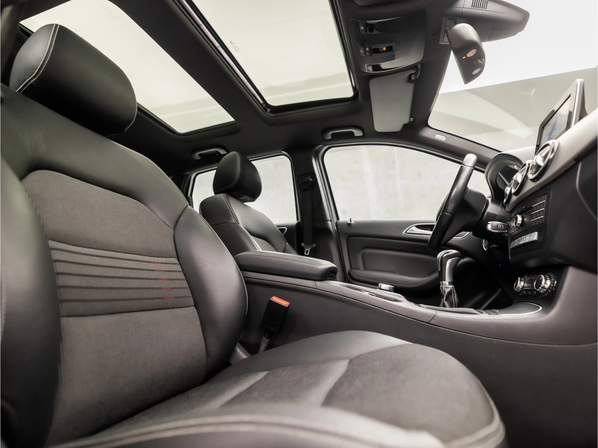 Elke weg is een bekende weg voor het aanwezige navigatiesysteem met harde schijf. Omdat u nu eenmaal niet overal ogen heeft, is deze Mercedes-Benz B-klasse voorzien van een achteropkomend verkeer waarschuwing die registreert wanneer de afstand tot uw achterligger te krap is. Nooit meer te warm of te koud. De automatische airconditioning zorgt altijd voor de temperatuur die u kiest. Even muten, een andere zender of track kiezen? Geen gerommel, het gaat moeiteloos met de audiobediening op het stuur. Parkeersensoren zijn een handig hulpmiddel om parkeerschades te voorkomen. Met lederen sportstuur, regensensor, cruise control, buitentemperatuurmeter, automatisch dimmende buitenspiegels en isofix-aansluiting is deze auto helemaal compleet.