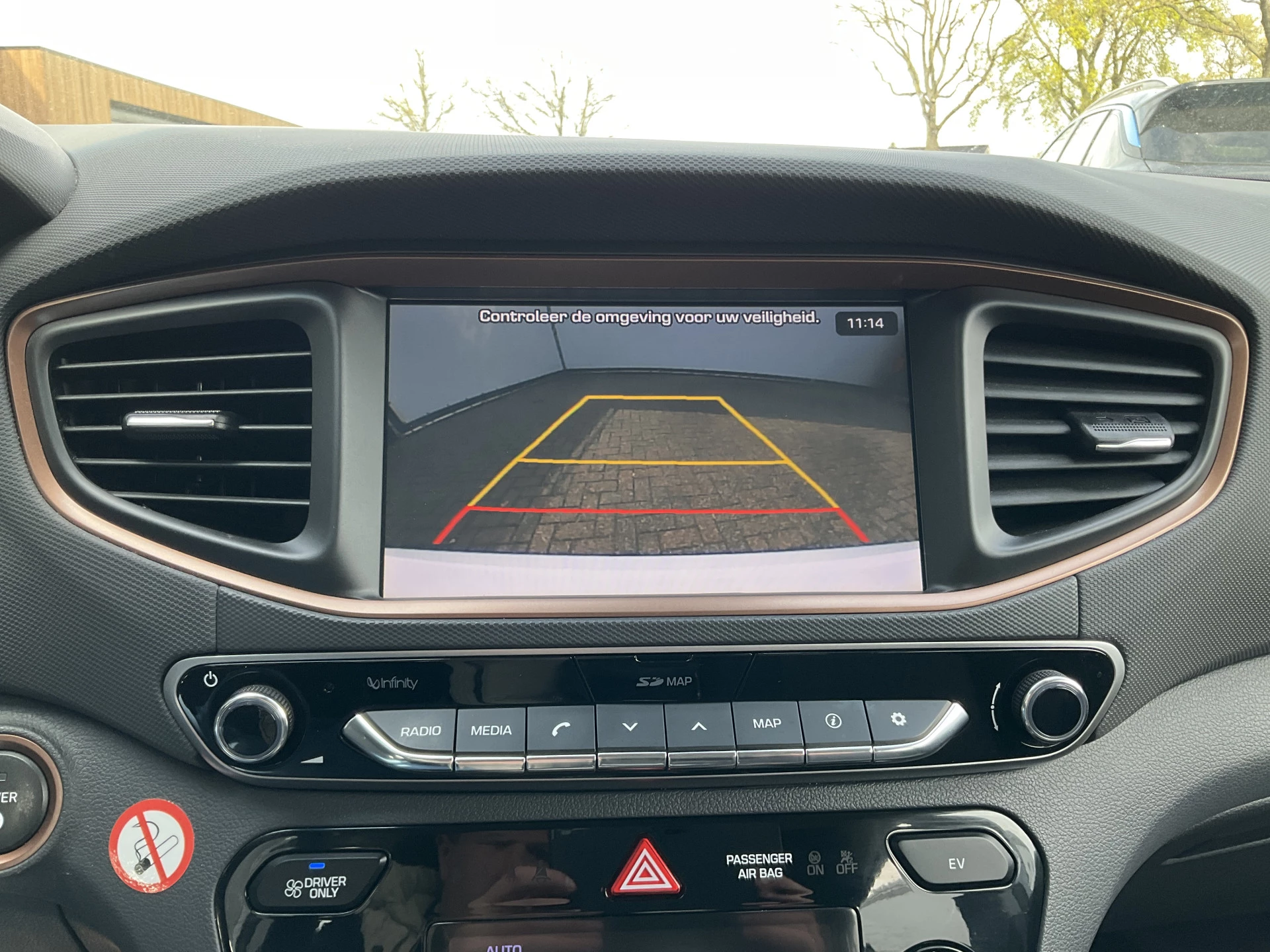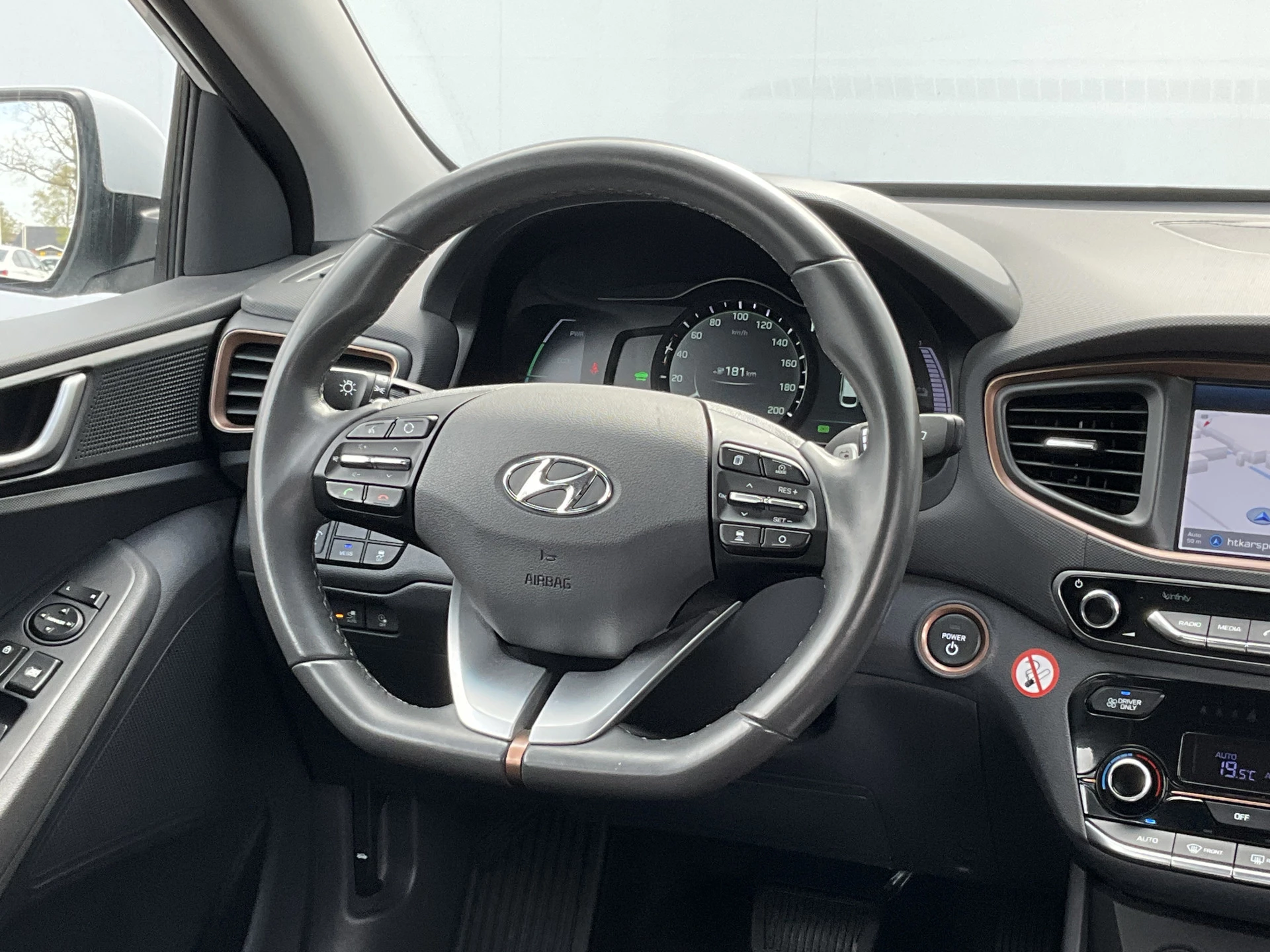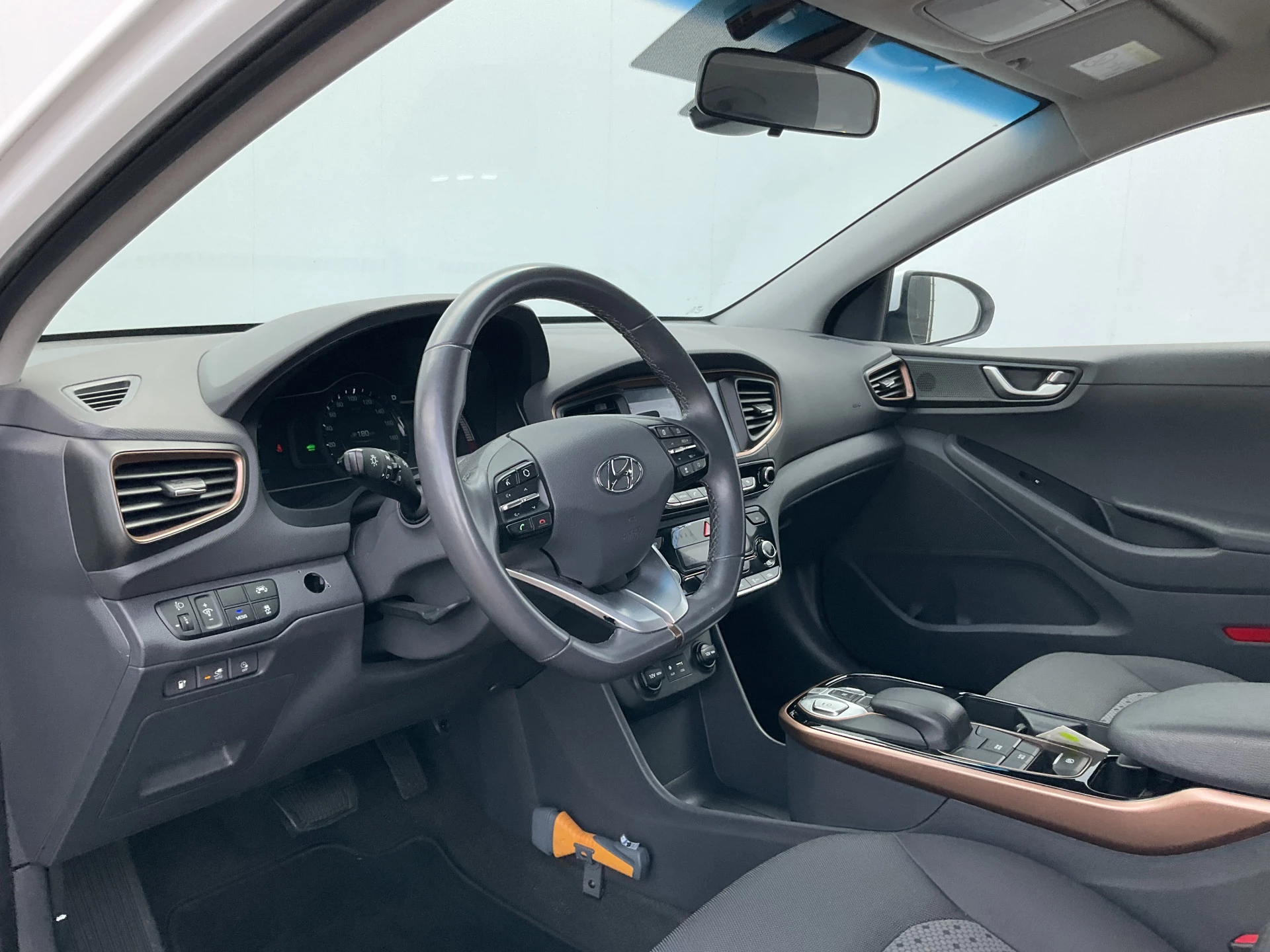 Zoals u mag verwachten van deze Hyundai IONIQ is hij uitgerust met een reeks aan actieve veiligheidssystemen. Het Lane-keeping systeem zorgt voor een automatisch constante positie binnen de rijstrook. Afdwalen is uitgesloten. Bovenop deze veiligheidsfeatures heeft deze Hyundai bovendien hill hold functie, autonoom remsysteem en bandenspanningcontrolesysteem.