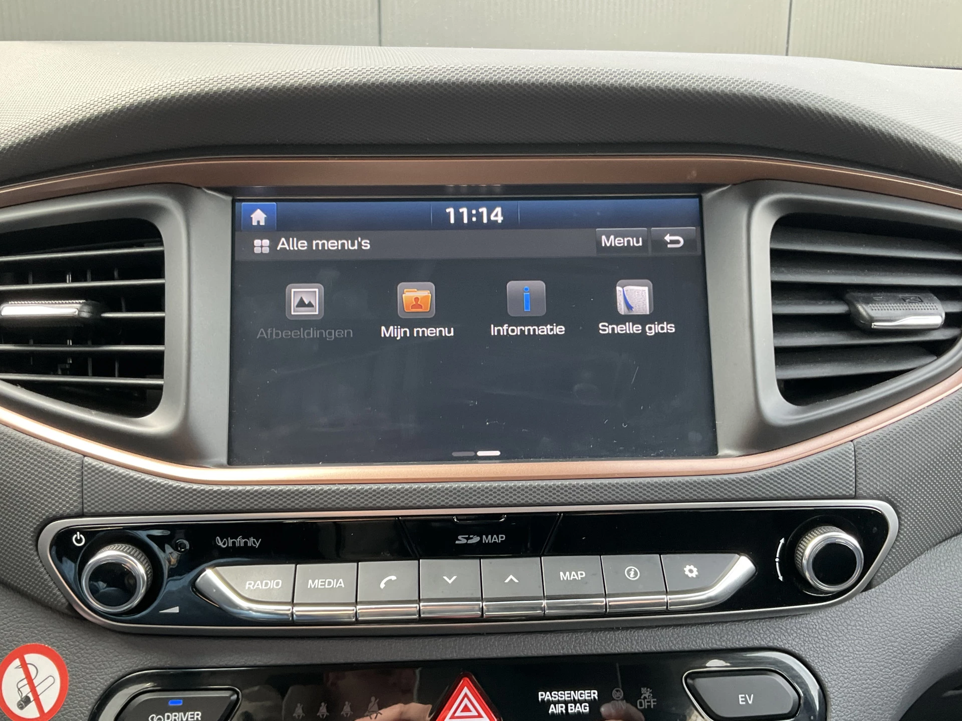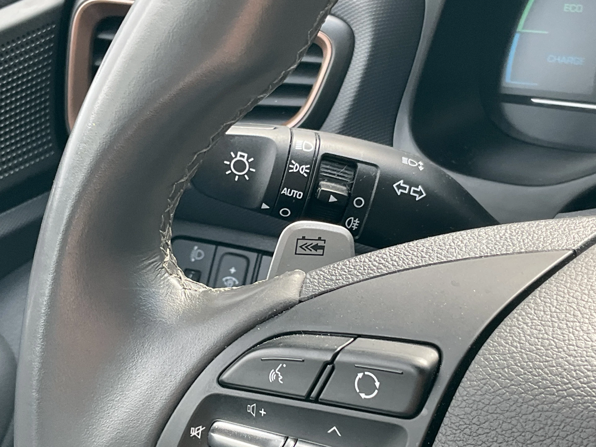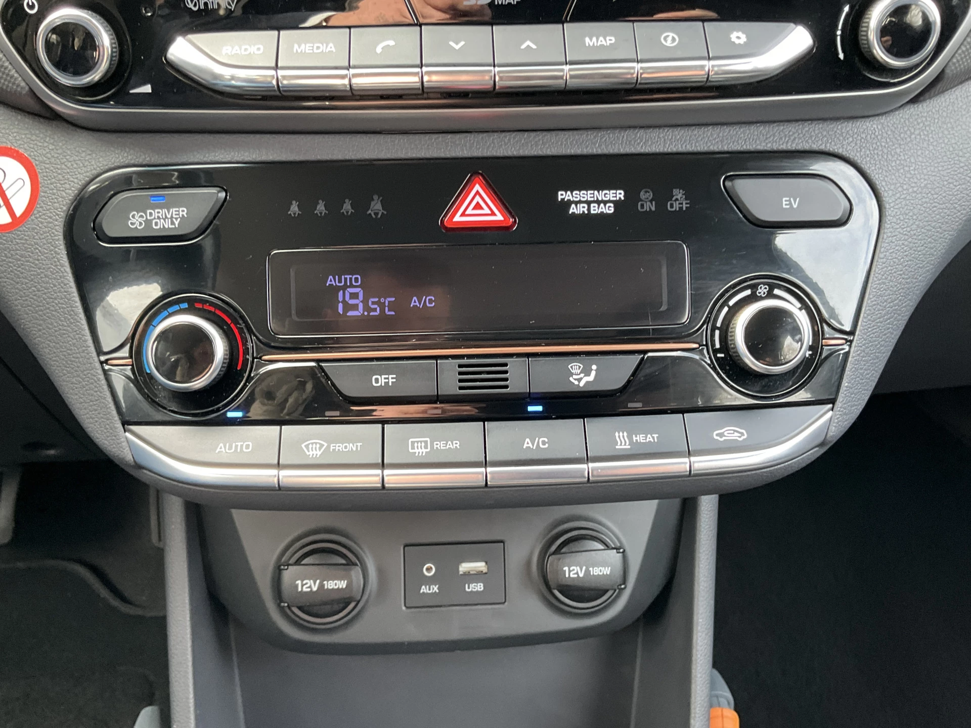 Zoals u mag verwachten van deze Hyundai IONIQ is hij uitgerust met een reeks aan actieve veiligheidssystemen. Het Lane-keeping systeem zorgt voor een automatisch constante positie binnen de rijstrook. Afdwalen is uitgesloten. Bovenop deze veiligheidsfeatures heeft deze Hyundai bovendien hill hold functie, autonoom remsysteem en bandenspanningcontrolesysteem.