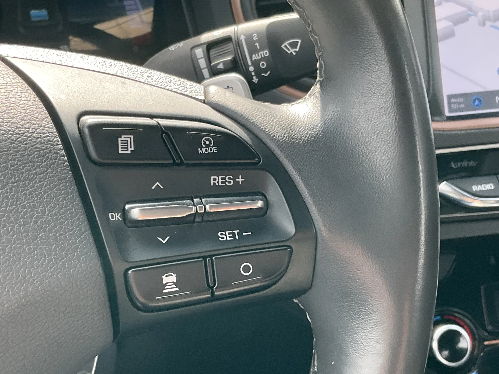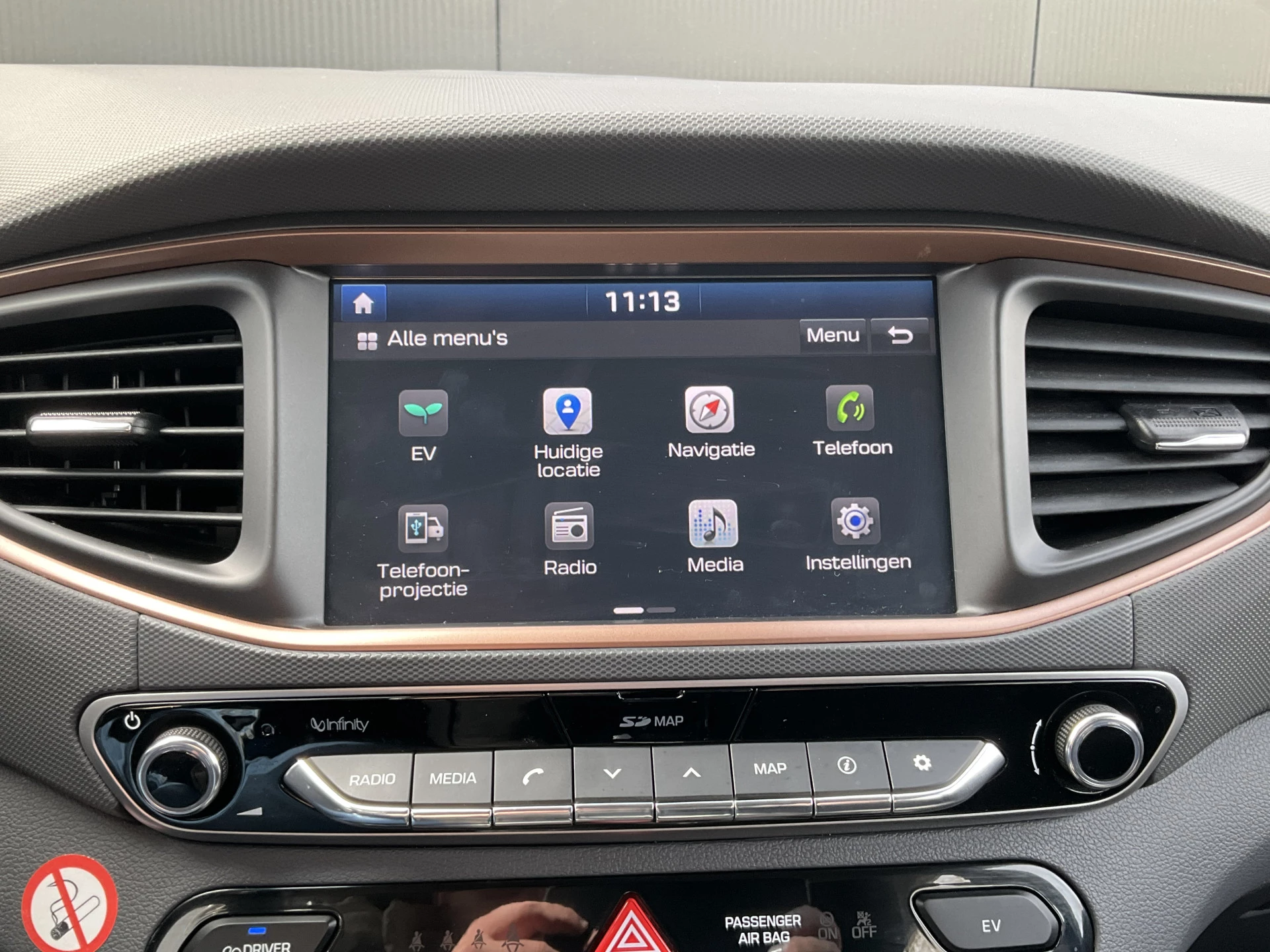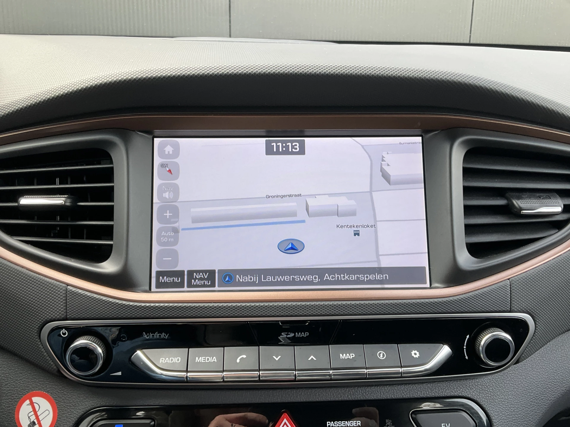 Kom maar, kom maar, kom maar... ho! Prettig hoor, zo'n achteruitrijcamera. Adaptive cruise control is veilig en comfortabel. De snelheidsregelaar houdt automatisch afstand tot het voertuig dat voor u rijdt. Nooit meer de weg zoeken en ontspannen arriveren bij uw reisdoel. Met het full map navigatiesysteem zit u veilig en ontspannen in de auto. De sensoren van de achteropkomend verkeer waarschuwing houden zicht op de dode hoeken achter u. Te weinig afstand tot de achterligger? Het systeem geeft direct een signaal. Of het buiten nu warm is of koud, dankzij automatische airconditioning is het binnen altijd behaaglijk. Met DAB ontvangst, keyless entry, boordcomputer en verstelbaar stuur is deze Hyundai helemaal compleet.