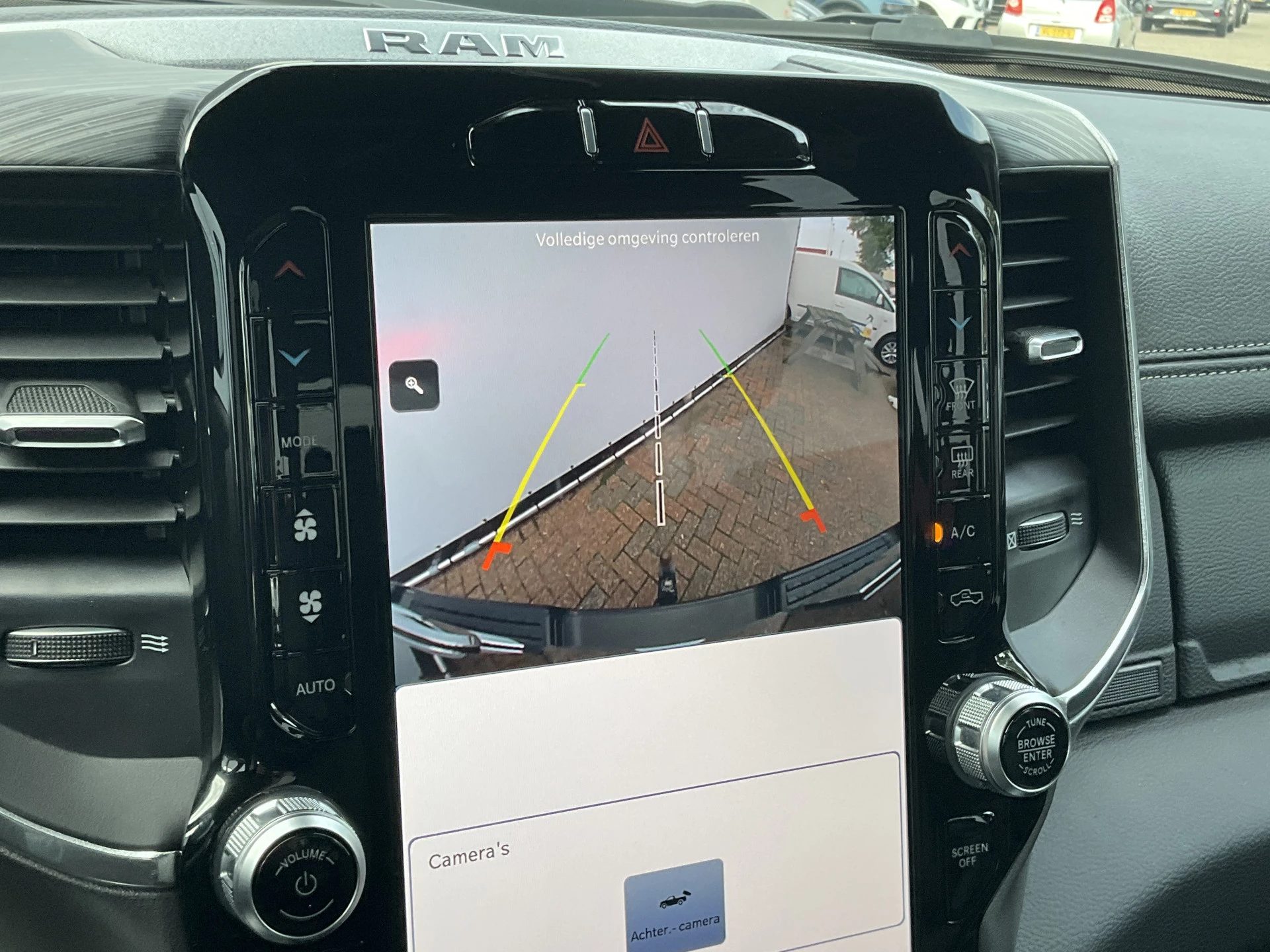 Een vergeten muurtje, een verborgen paaltje? Dat gebeurt niet meer, dankzij de achteruitrijcamera. Onderweg kunt u veilig genieten van het audio-installatiesysteem en het full map navigatiesysteem. Want in deze Dodge bedient u ze vanaf het stuurwiel of met uw stem. De automatische airconditioning zorgt voor een behaaglijk klimaat in de auto. Deze Dodge is bovendien voorzien van cruise control. Dus comfortabel en zuinig rijden verzekerd! Geen capriolen meer als u met armen vol de auto moet openen. De keyless entry heeft u al herkend en ontgrendelt de Dodge Ram 1500 automatisch.