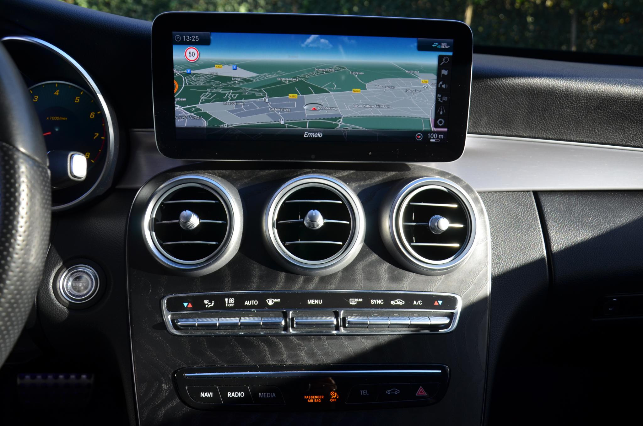 De nieuwste veiligheidssystemen komen in deze Mercedes-Benz C-klasse samen. In het instrumentarium ziet u tijdens de rit ook de belangrijkste verkeersborden aangegeven, die de auto automatisch voor u leest. Botsingen met een voorligger gebeuren relatief vaak. De forward collision warning slaat tijdig alarm als dat risico ontstaat, zodat u kunt ingrijpen. De veiligheidssystemen in deze auto nemen het zelfs waar als de bestuurder tekenen van vermoeidheid vertoont, en waarschuwen dan met een duidelijk signaal. De veiligheid van deze auto wordt verder verhoogd door hill hold functie, autonoom remsysteem en bandenspanningcontrolesysteem.