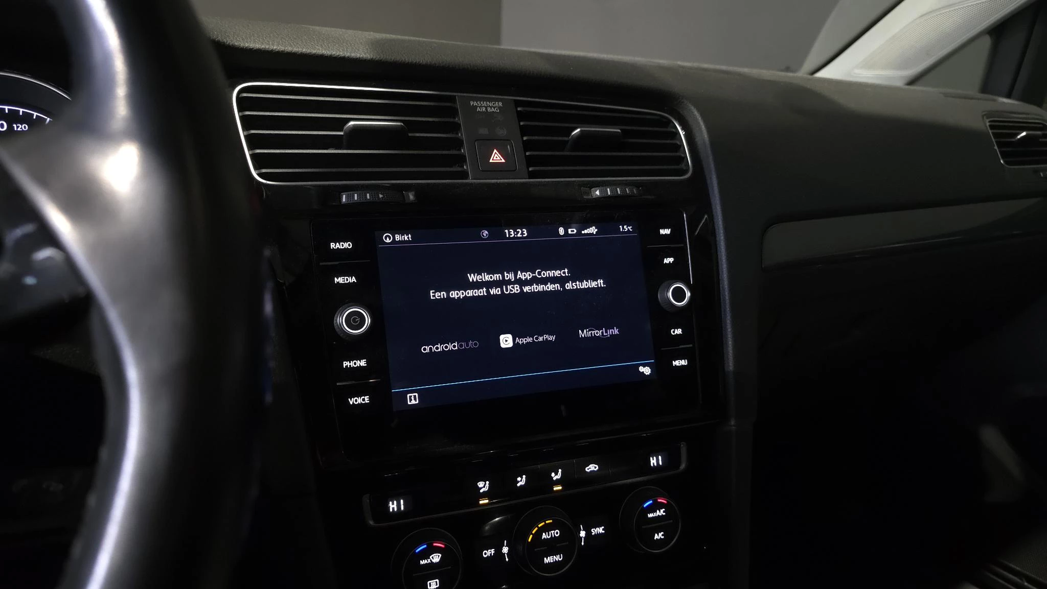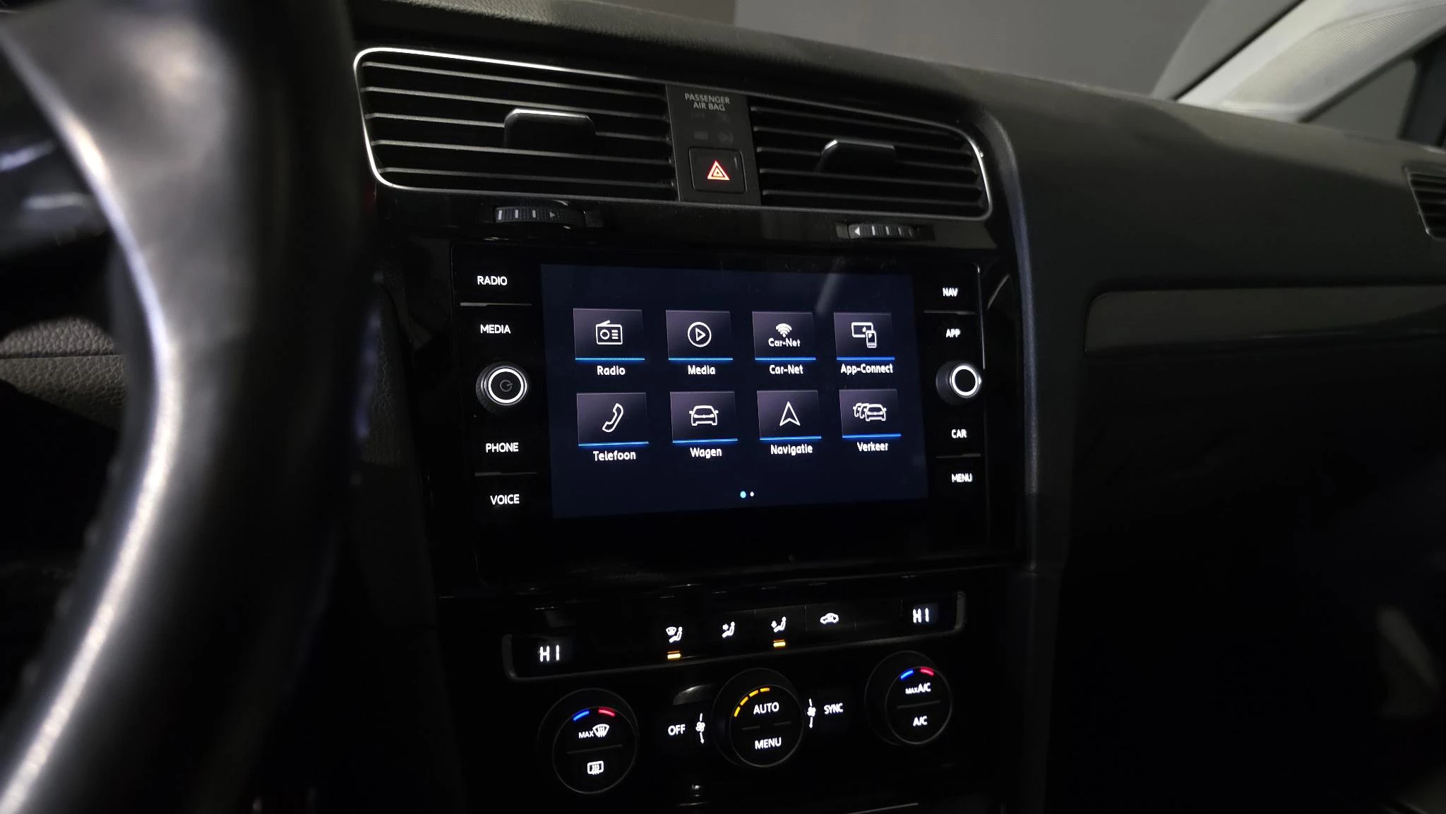 Adaptive cruise control is veilig en comfortabel. De snelheidsregelaar houdt automatisch afstand tot het voertuig dat voor u rijdt. Gemakkelijk en veilig is bediening voor het audio-installatiesysteem met knoppen op het stuur. De achteropkomend verkeer waarschuwing geeft een signaal als degene achter u te dicht op u zit. Ook handig en veilig bij het wisselen van rijbaan. Bij de luxe van deze auto hoort ook automatische airconditioning. Parkeerplekken worden er niet ruimer op. Maar met de aanwezige parkeersensoren krijgt u deze Volkswagen Golf zonder problemen op z'n plaats. Extra opties op deze auto zijn: regensensor, automatisch dimmende binnenspiegel, lederen stuur, centrale deurvergrendeling met afstandsbediening, boordcomputer en lederen versnellingspook.