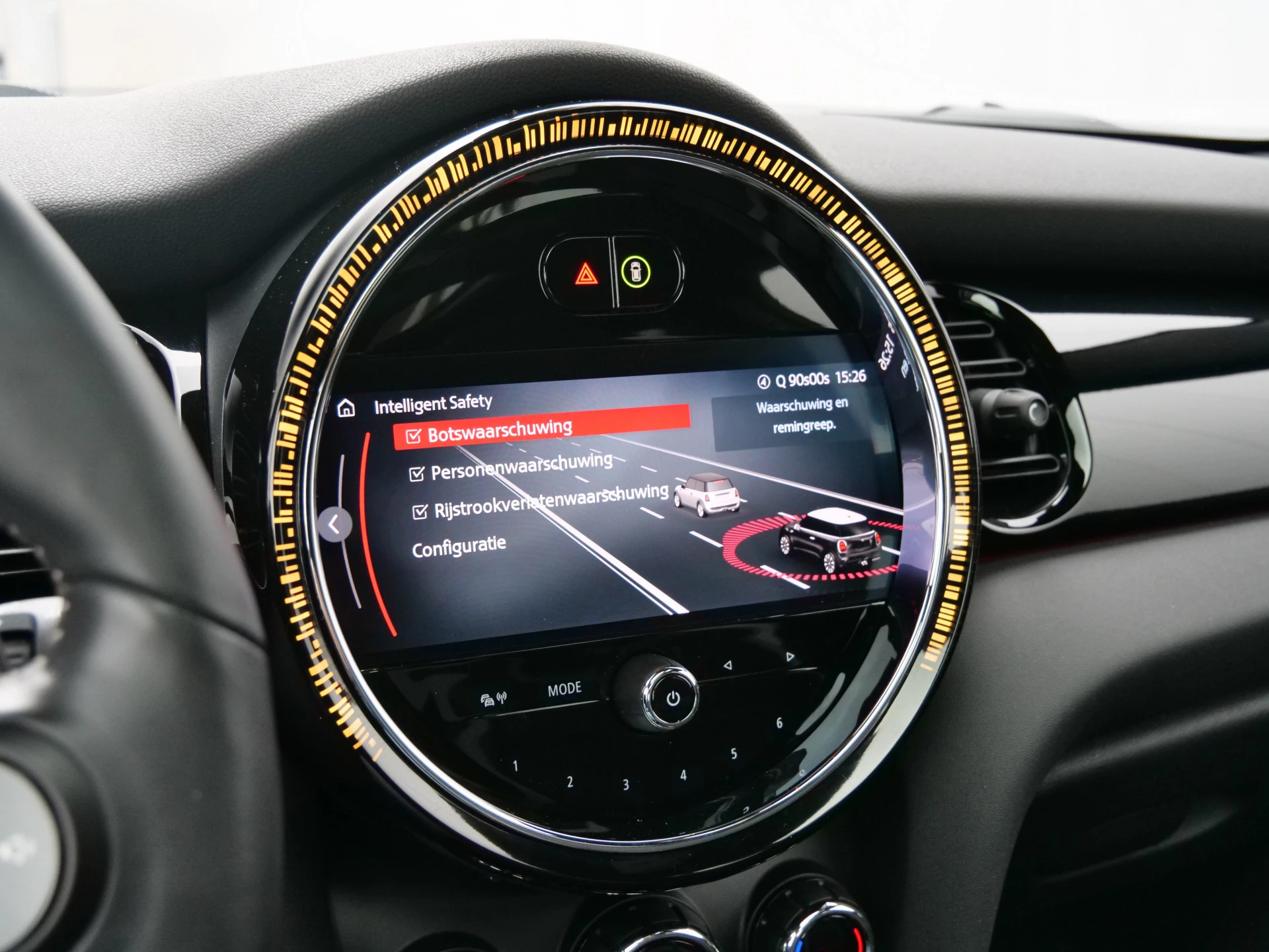 Deze MINI biedt u niet alleen comfort en rijplezier, maar ook veiligheid. Actieve veiligheidssystemen houden voor u de weg in de gaten en reageren op onvoorziene situaties voordat u dat kunt. Bij de veiligheidssystemen van deze auto hoort ook de verkeersbord-detectie. Die leest tijdens het rijden als het ware met u mee en attendeert u op de significante verkeersborden langs en boven de weg. De auto is ook uitgerust met hill hold functie en bandenspanningcontrolesysteem.