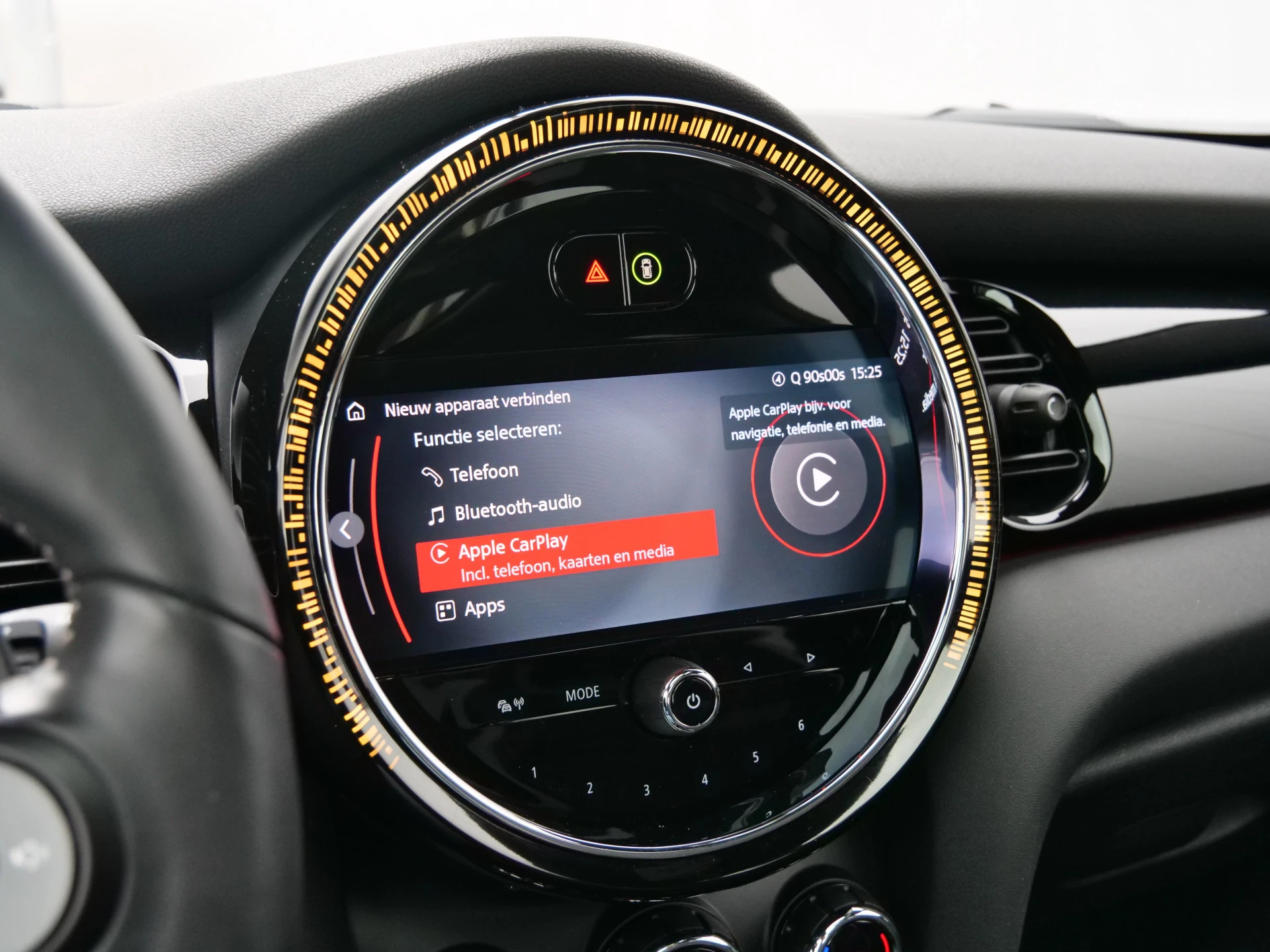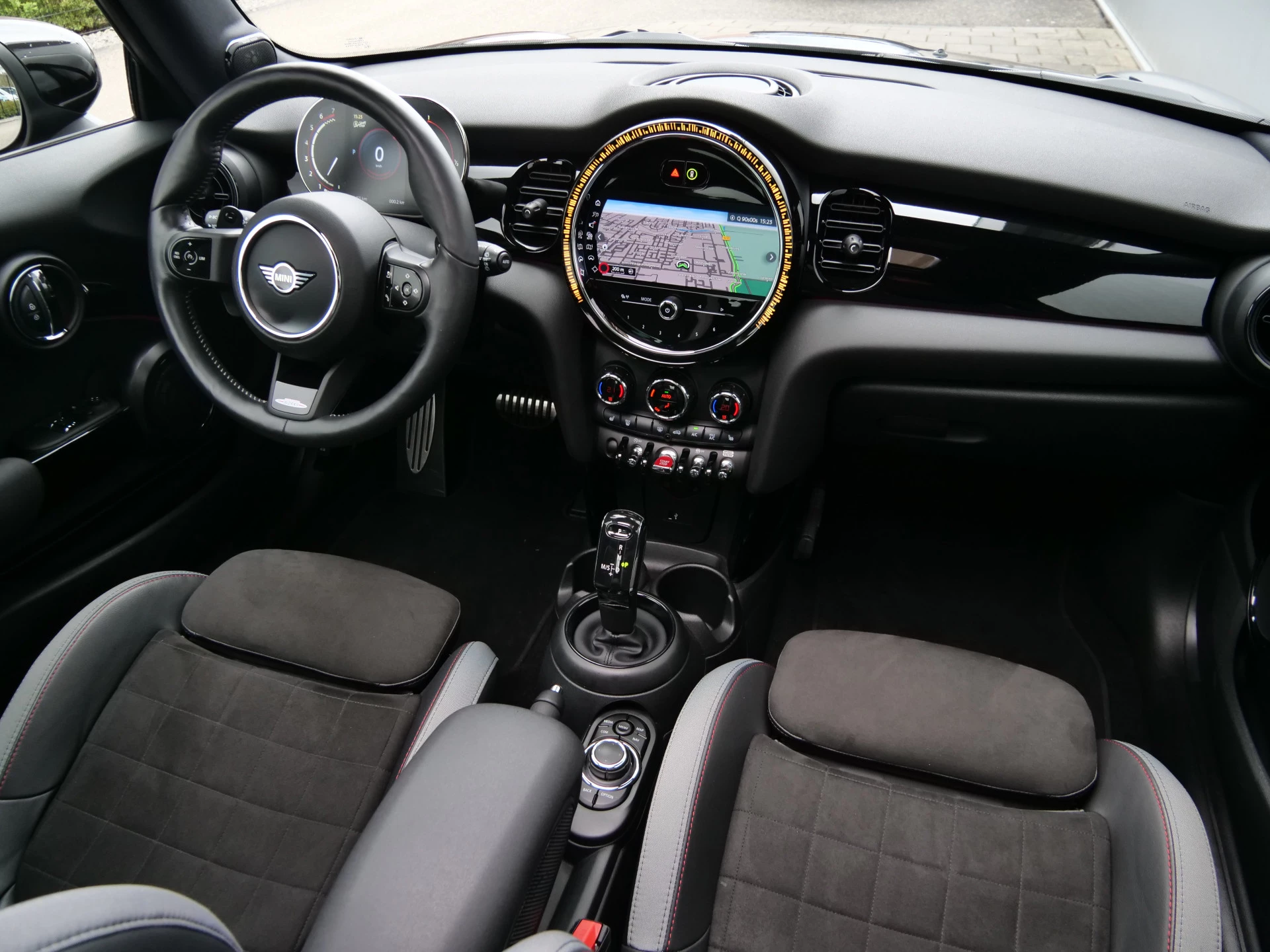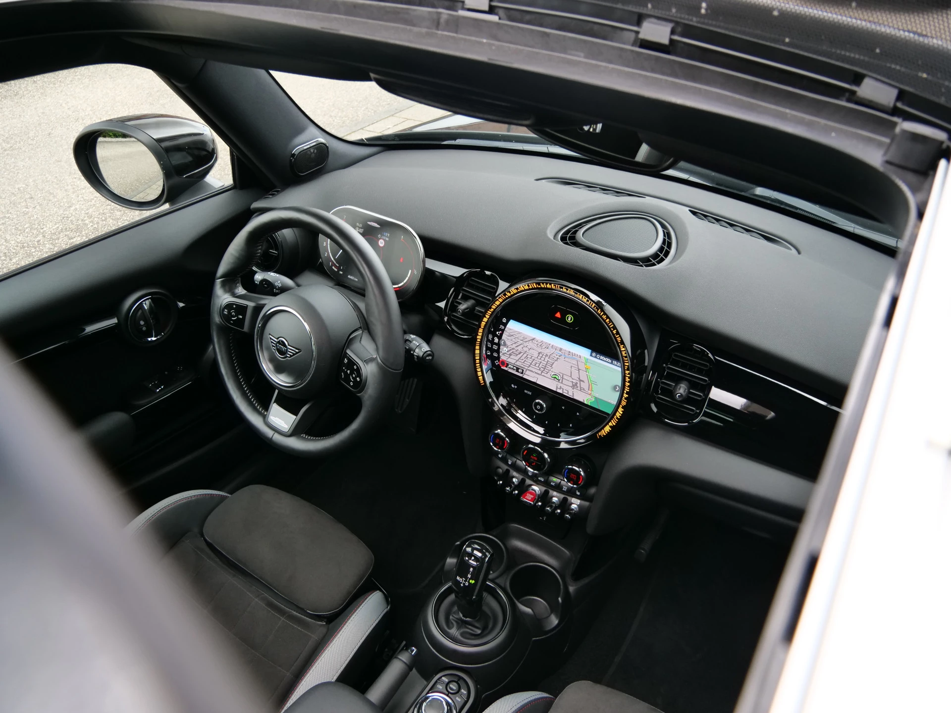 Met de achteruitrijcamera ziet u precies wat er achter de auto gebeurt. Connected Services zorgen ervoor dat de belangrijkste functies en data van de auto altijd en overal te checken zijn. Gewoon via de app op de smartphone. Geluid van premium kwaliteit is gegarandeerd dankzij het Harman/Kardon audiosysteem. Met de automatische airconditioning selecteert u de gewenste temperatuur. Het systeem doet de rest. Het hoort bij een intelligente auto als deze dat hij zelf in staat is om zijn omgeving in de gaten te houden. Dat doet deze MINI met een automatisch inschakelbare verlichting en een regensensor. U bent in deze MINI ook voorzien van Harman Kardon-audiosysteem, full map navigatiesysteem, WIFI-hotspot, DAB ontvangst, cruise control en sportstuurwiel.