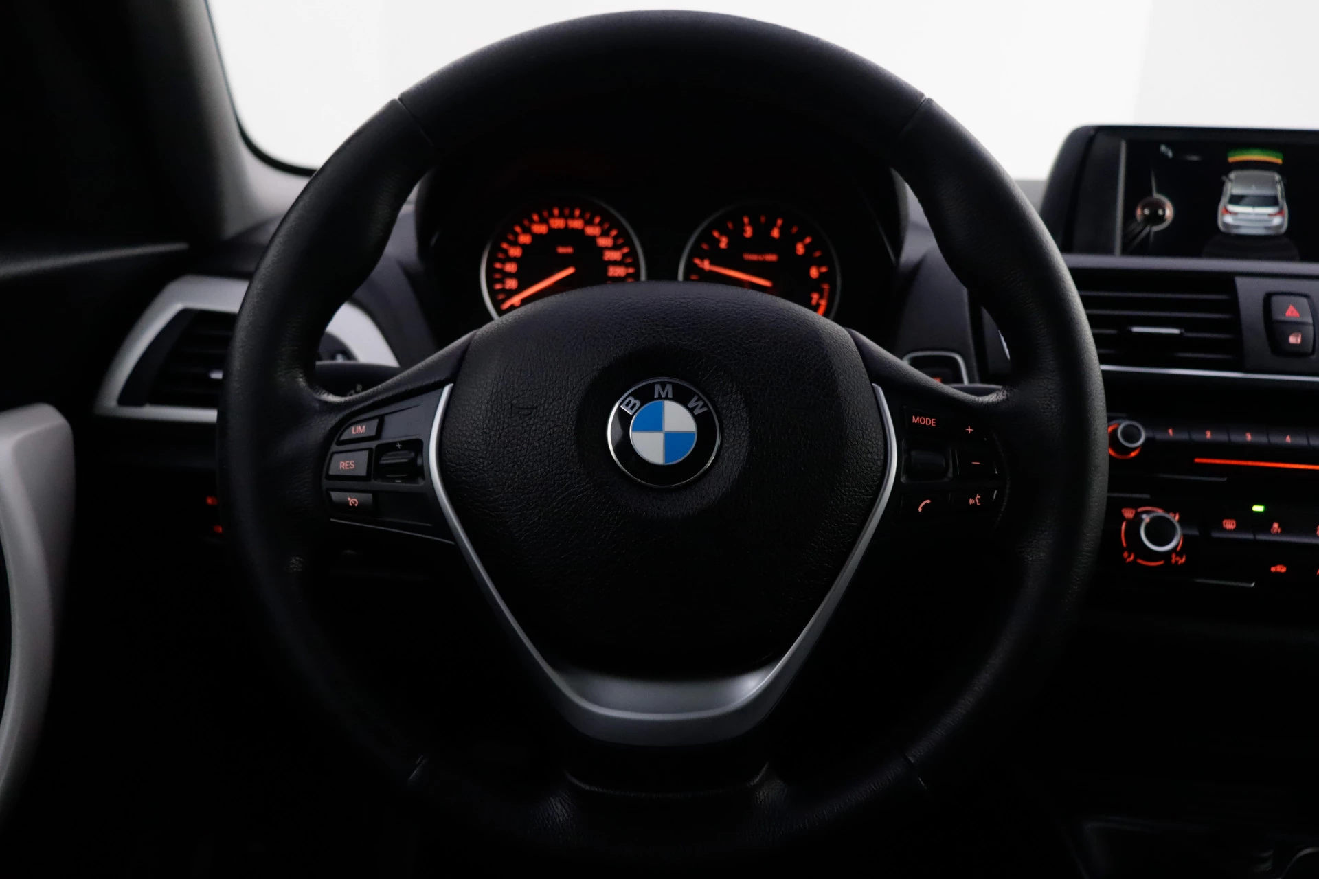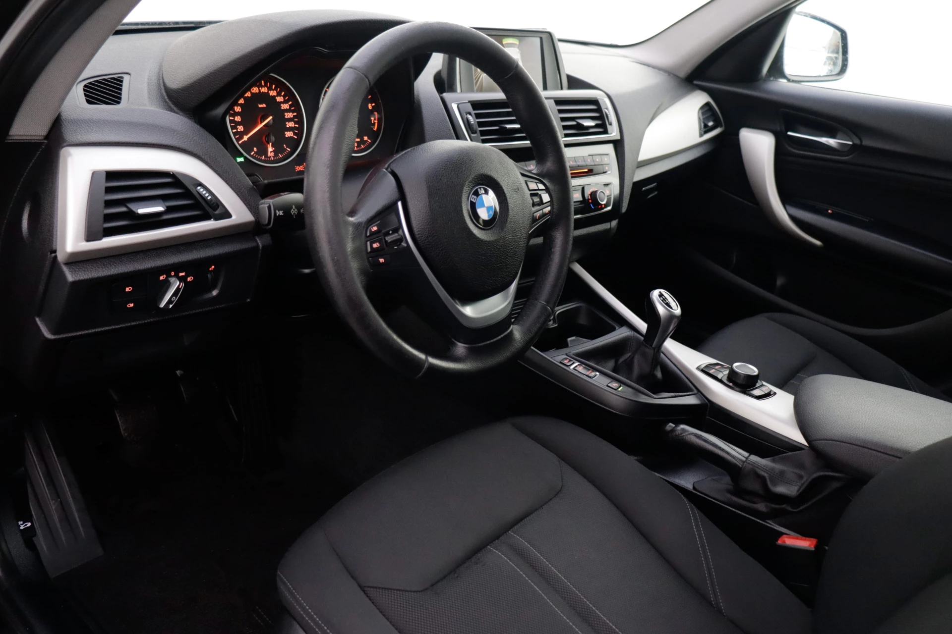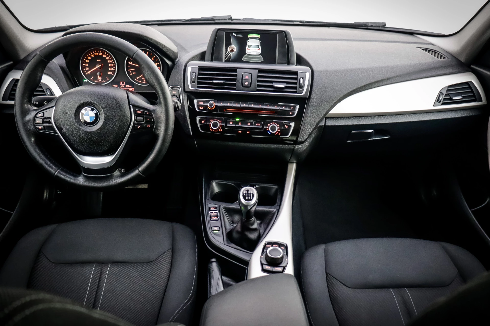 Dankzij Connected Services weet u precies waar uw auto geparkeerd staat. Ook andere functies, zoals bandenspanning en brandstofniveau, zijn via de app altijd onder handbereik. Omdat u nu eenmaal niet overal ogen heeft, is deze BMW 1-serie voorzien van een achteropkomend verkeer waarschuwing die registreert wanneer de afstand tot uw achterligger te krap is. Met de automatische airconditioning selecteert u de gewenste temperatuur. Het systeem doet de rest. Schakel simpel en veilig naar uw favoriete artiest met de audiobediening op het stuur. Parkeersensoren zijn een handig hulpmiddel om parkeerschades te voorkomen. Ook lederen sportstuur, regensensor, cruise control, centrale deurvergrendeling met afstandsbediening en boordcomputer zijn aan boord.