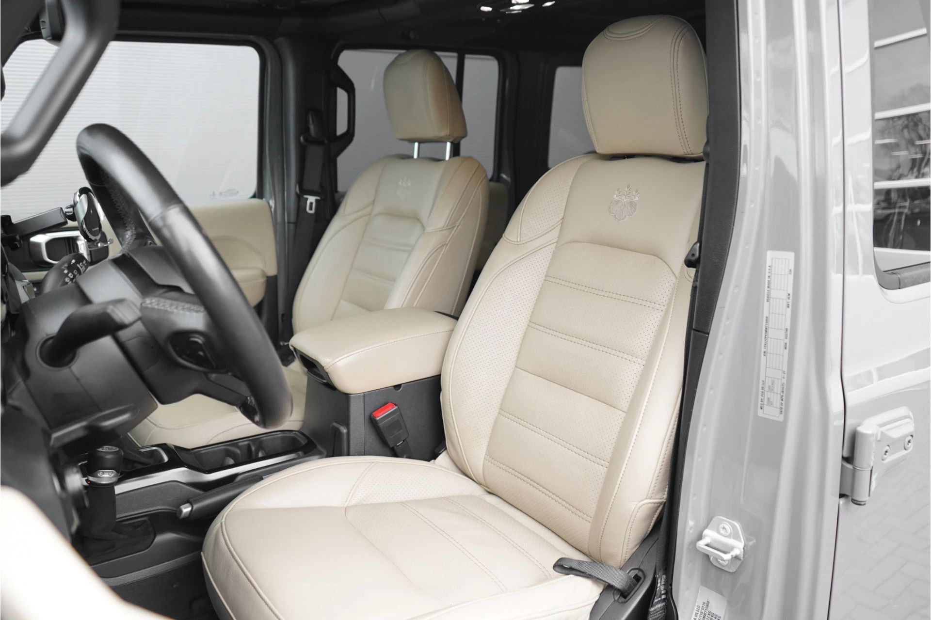 Autobedrijf Schouten biedt u deze Jeep Wrangler Unlimited BRUTE 4xe 380 Sahara aan, origineel Nederlands en afkomstig van de eerste eigenaar. Het exterieur van de BRUTE Jeep is uitgevoerd in de prachtige kleur: 'BRUTE Cool Brownstone', met alle exterieur delen meegespoten. Dit is gecombineerd met een licht beige lederen interieur. Verder beschikt de BRUTE Jeep Wrangler Unlimited 4xe 380 Sahara over een mooie lijst met opties. Denk hierbij aan opties zoals: