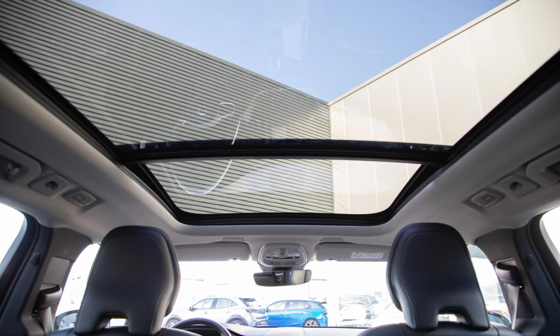 - Elektrisch bedienbaar glazen panoramisch schuif-/kanteldak met elektrisch bedienbaar zonnescherm