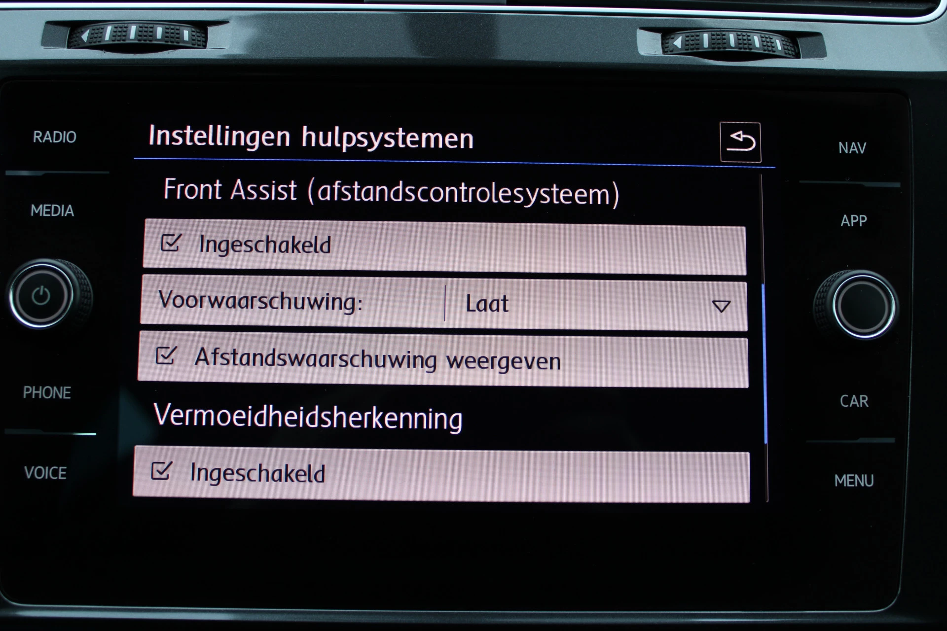 De nieuwste veiligheidssystemen komen in deze Volkswagen Golf samen. Kop-staartbotsingen vormen een belangrijk deel van de meest voorkomende aanrijdingen. De forward collision warning van deze auto voorkomt zulke botsingen geheel of reduceert de ernst van de schade aanzienlijk. Met de vermoeidheidsassistent bent u ook op lange ritten veilig op pad. Het systeem geeft een waarschuwing zodra het tijd is voor een pauze. In deze Volkswagen vinden we verder een hill hold functie, brake assist en bandenspanningcontrolesysteem.
