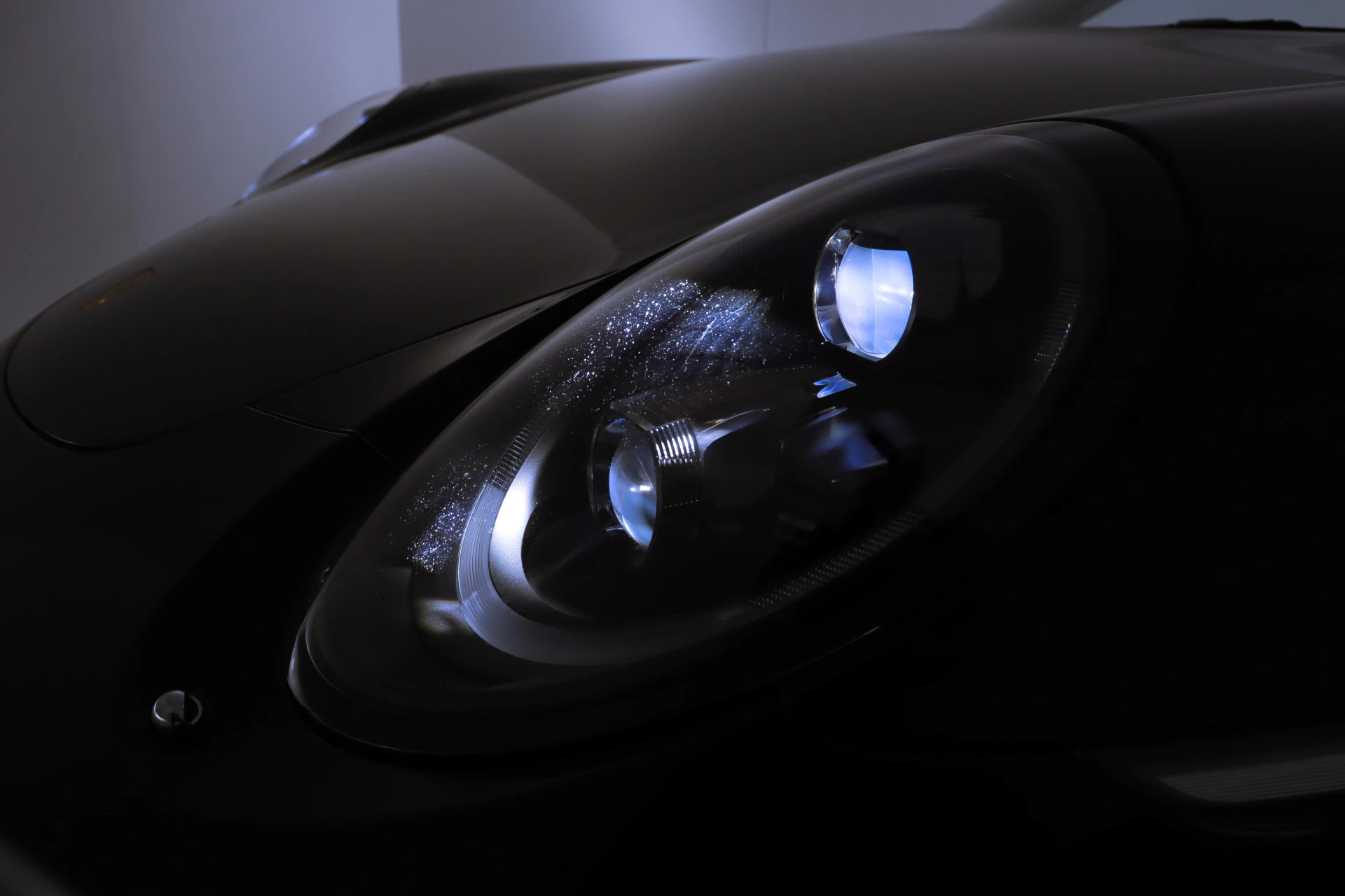 Wanneer je voor hem staat, zie je meteen dat dit een auto met karakter is. De originele lak glanst diepzwart, precies zoals Porsche het ooit bedoeld heeft. Geen compromissen, geen kunstgrepen – puur en authentiek. Je voelt het al voordat je instapt: deze 911 ademt kwaliteit.