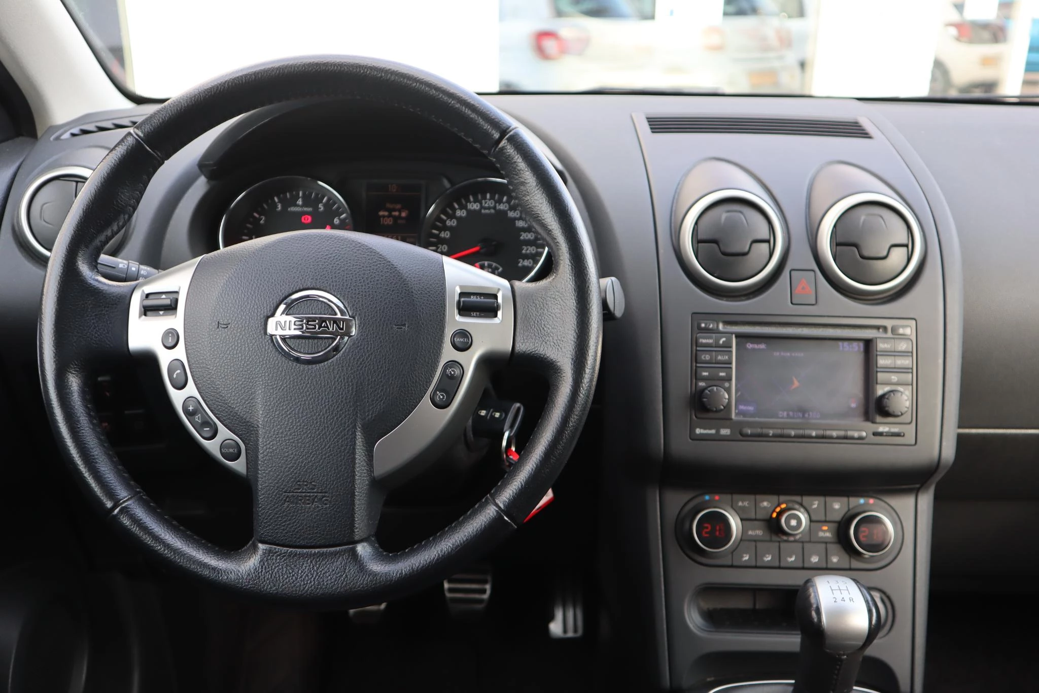 Twijfelen hoeveel ruimte u achter de auto heeft? Met de achteruitrijcamera weet u altijd hoeveel centimeter! Deze auto kent elke bestemming als z'n broekzak, dankzij het full map navigatiesysteem. Dankzij automatische airconditioning is het interieur behaaglijk warm of verfrissend koel. Om de veiligheid onderweg te verhogen, heeft deze Nissan zowel een automatisch inschakelbare verlichting als een regensensor aan boord, zodat hij zelf de verlichting en de ruitenwissers kan inschakelen. Een stabiele en comfortabele snelheid houdt u feilloos aan met de cruise control. Ook automatisch dimmende binnenspiegel, lederen stuur en lederen versnellingspook horen tot de voorzieningen op deze auto.