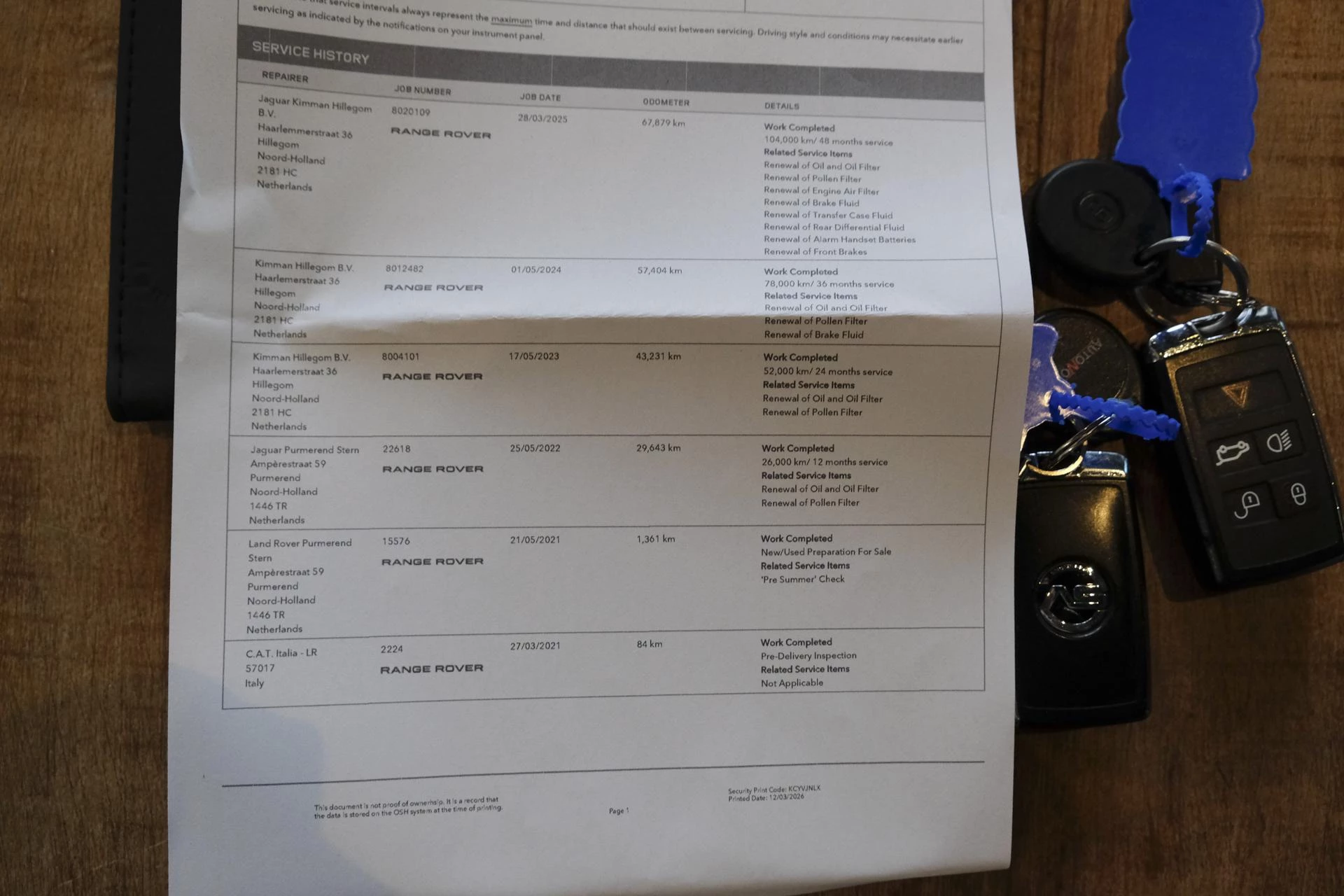 Dealer onderhouden auto. Digitale service uitdraai en twee sleutels aanwezig.