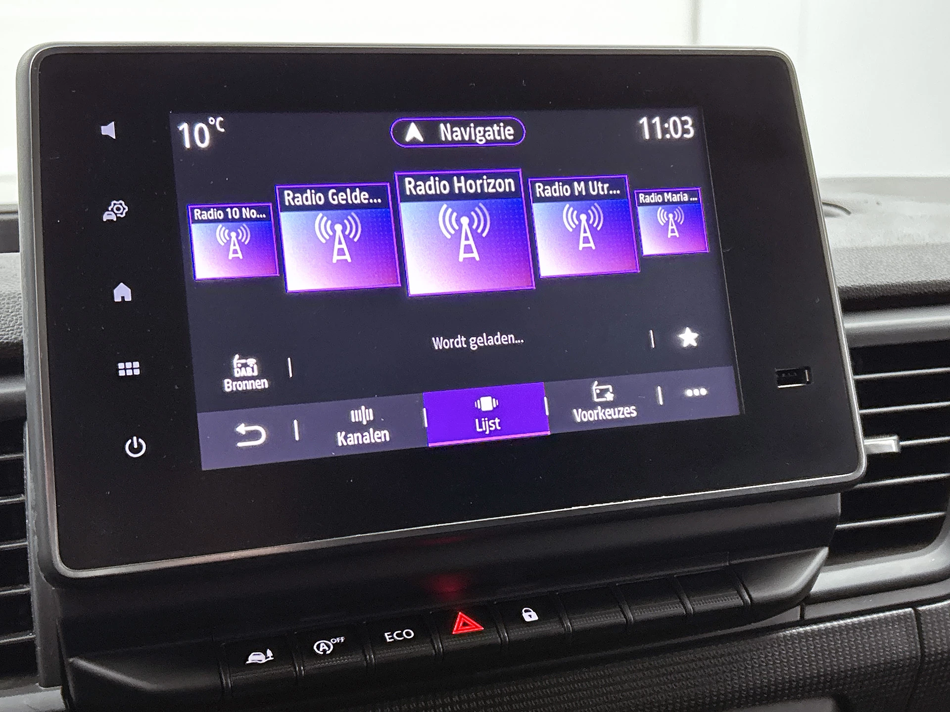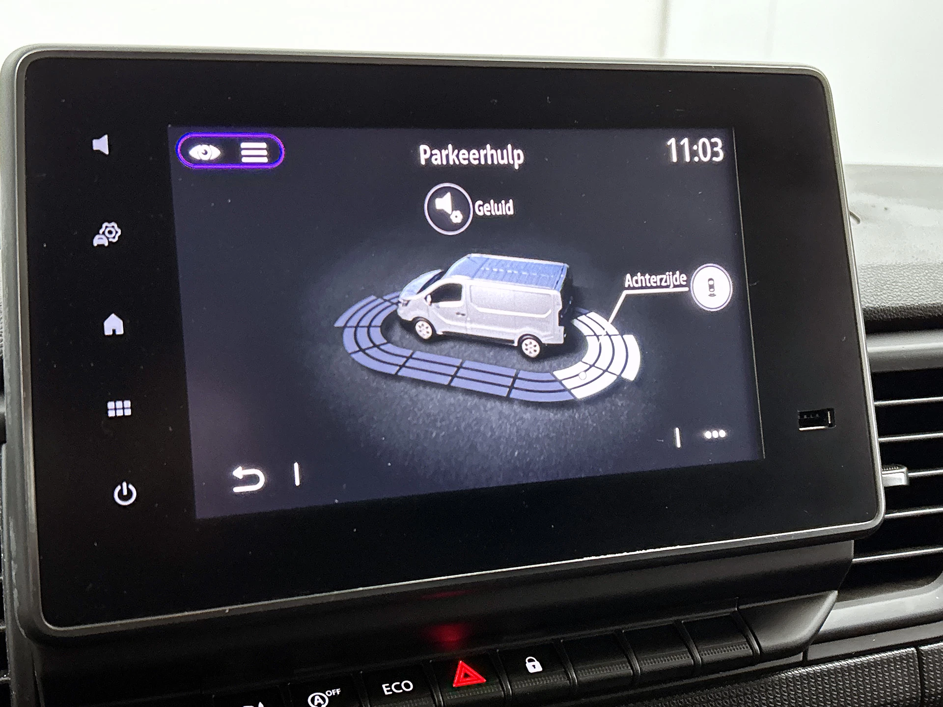 Kies de muziek waarvan u houdt, dankzij de DAB-radio klinkt het altijd geweldig. Intussen bedient u het audio-installatiesysteem en het full map navigatiesysteem met de knoppen op het stuur. Parkeersensoren ondersteunen u tijdens het in- en uitparkeren. In deze Renault kunt u zich concentreren op het verkeer, terwijl de auto de omgeving voor u in de gaten houdt. Een automatisch inschakelbare verlichting zorgt dat de verlichting aangaat als het donkerder wordt - in tunnels bijvoorbeeld - en de regensensor schakelt de ruitenwissers in als het nodig is. U hoeft er niets aan te doen. Natuurlijk is deze Renault Trafic voorzien van cruise control. Met één druk op de knop blaast de airconditioning een koele bries door het interieur. Deze auto is voorzien van buitentemperatuurmeter, lederen stuur, usb-aansluiting, centrale deurvergrendeling met afstandsbediening en boordcomputer.