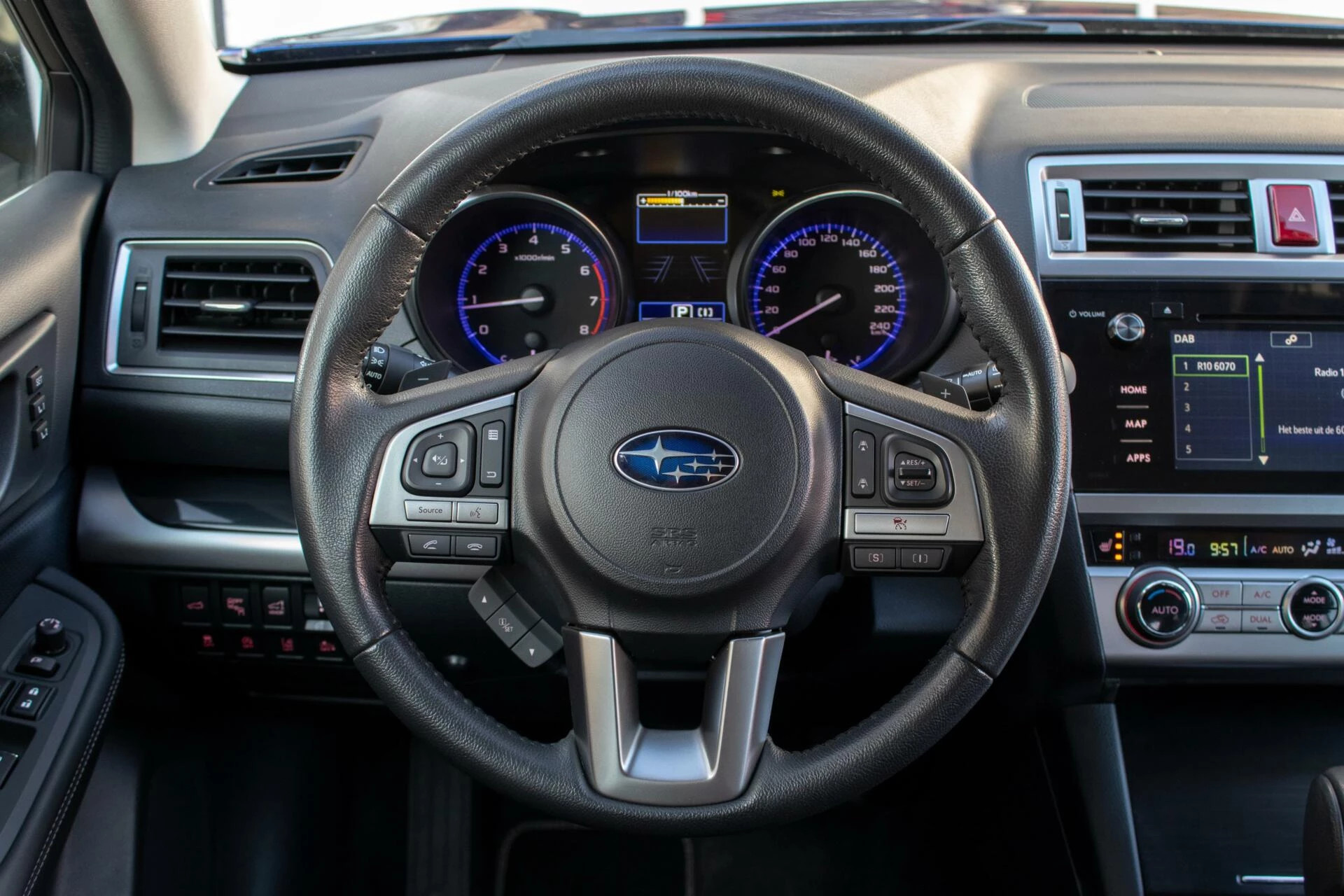 Zeer complete Subaru Outback 2.5 CVT Premium voorzien van Eyesight (veiligheidssysteem & adaptieve cruise control), detectie achteropkomend verkeer d.m.v. radars, parkeersensoren voor en achter, Harman Kardon Premium geluidsinstallatie, 18 inch lichtmetalen velgen, lederen bekleding met stoelverwarming voor, elektrisch bedienbare bestuurder en passagiersstoel, elektrisch bedienbaar schuif/-kantel dak, climate control, cruise control, metallic lak etc. Ideale trekauto in combinatie met continu vierwielaandrijving en een maximaal trekgewicht van 2000kg!