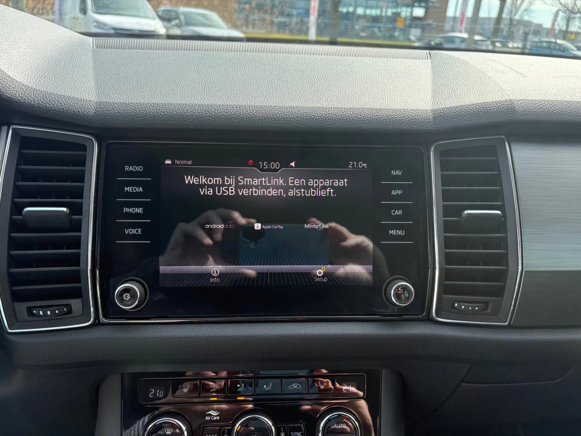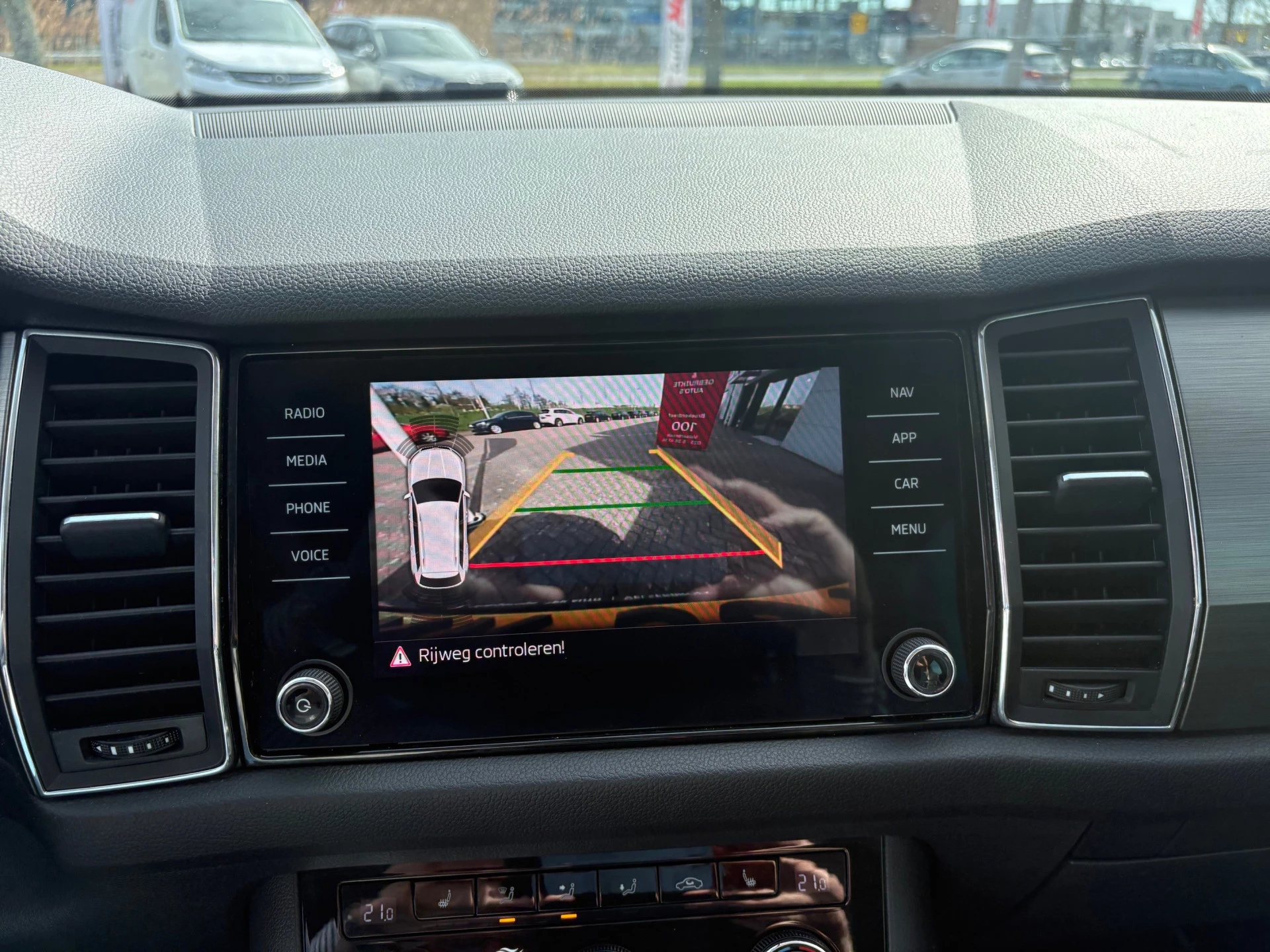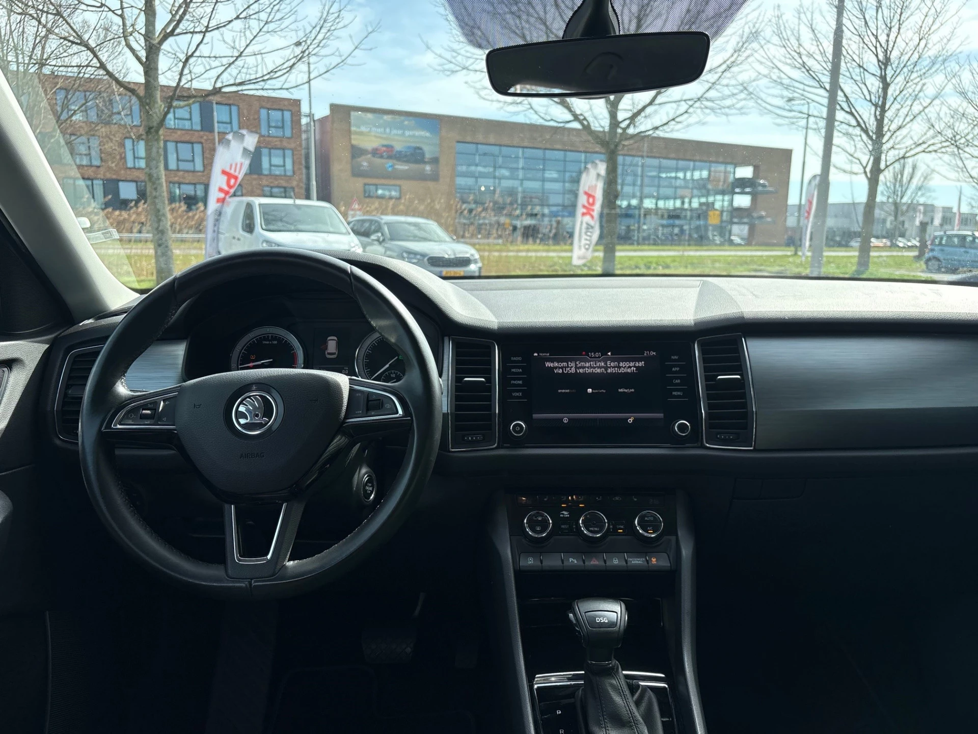 Met de 360 graden camera op deze auto wordt het rijden een heel stuk veiliger, dankzij het optimale zicht dat het biedt. De auto is voorzien van een trekhaak en is een uitstekende caravantrekker. Handig en veilig: Connected Services. Alle vitale functies en data van de auto checkt u via de app op uw smartphone. In deze auto klinkt uw favoriete muziek nog beter dankzij het high performance audiosysteem. Zoals van een eigentijdse auto verwacht mag worden, is deze ŠKODA Kodiaq voorzien van een draadloze oplaadmogelijkheid voor telefoons. Deze ŠKODA is voorzien van dashboard met spraakbediening, navigatiesysteem met harde schijf, WIFI-hotspot, achteropkomend verkeer waarschuwing, electronic climate control en schakelpaddles aan het stuur.
