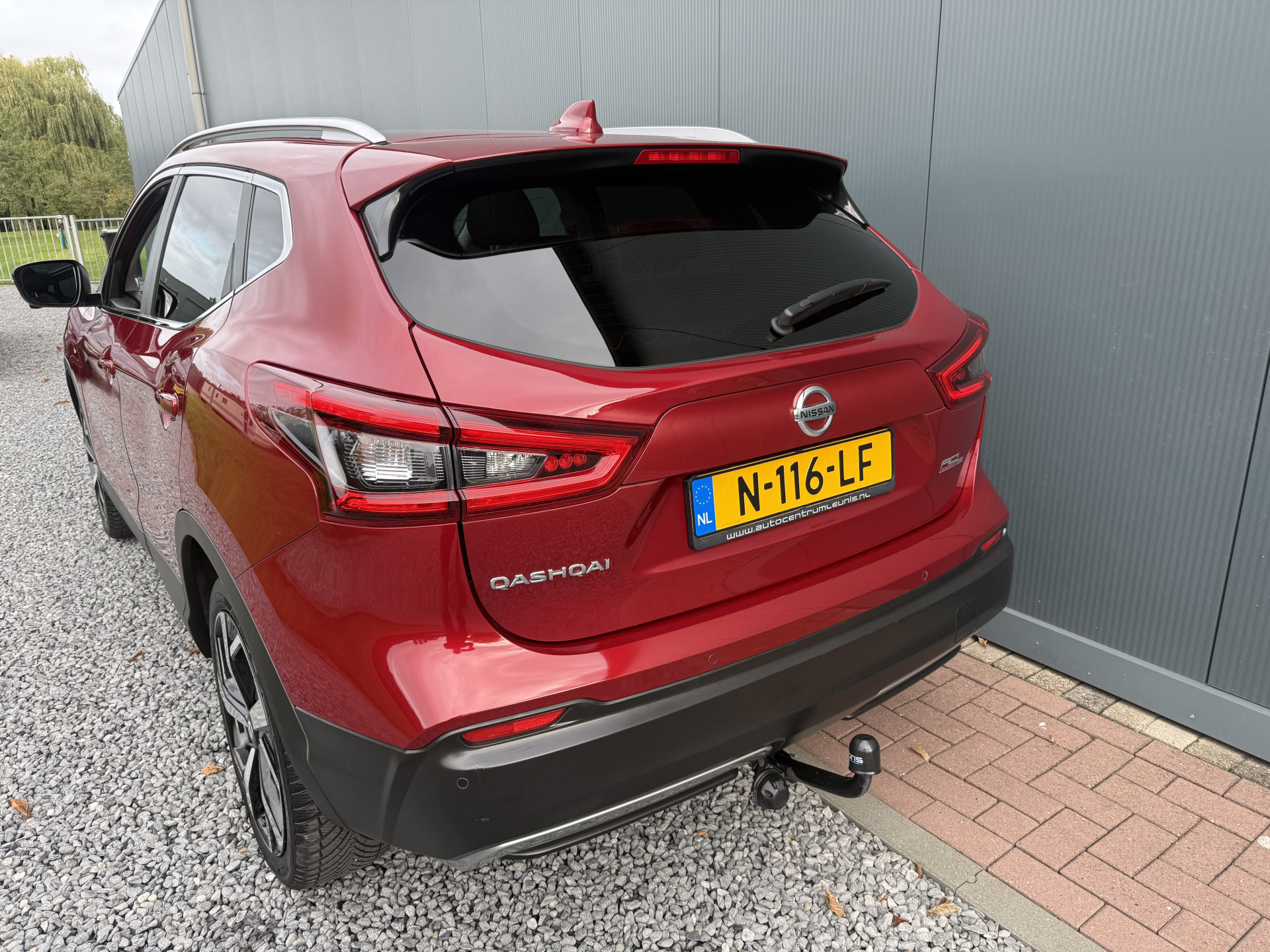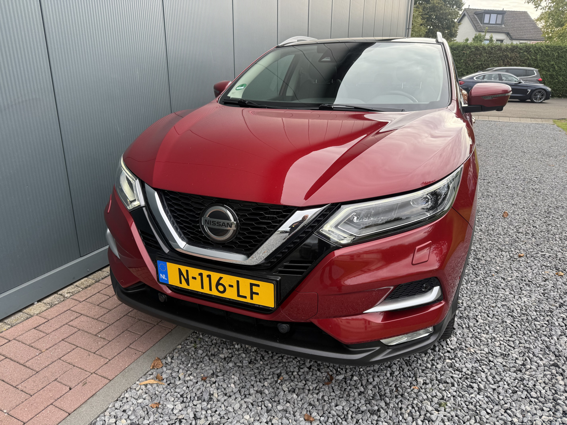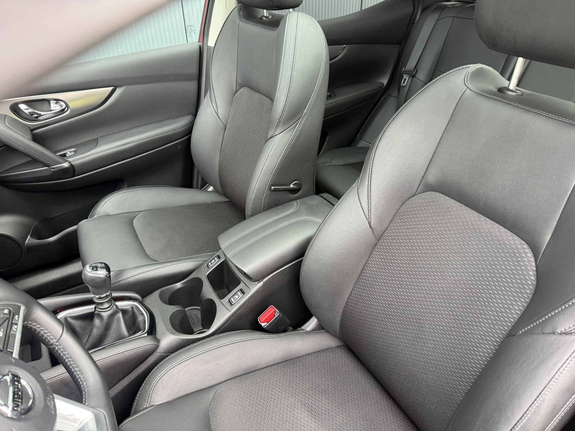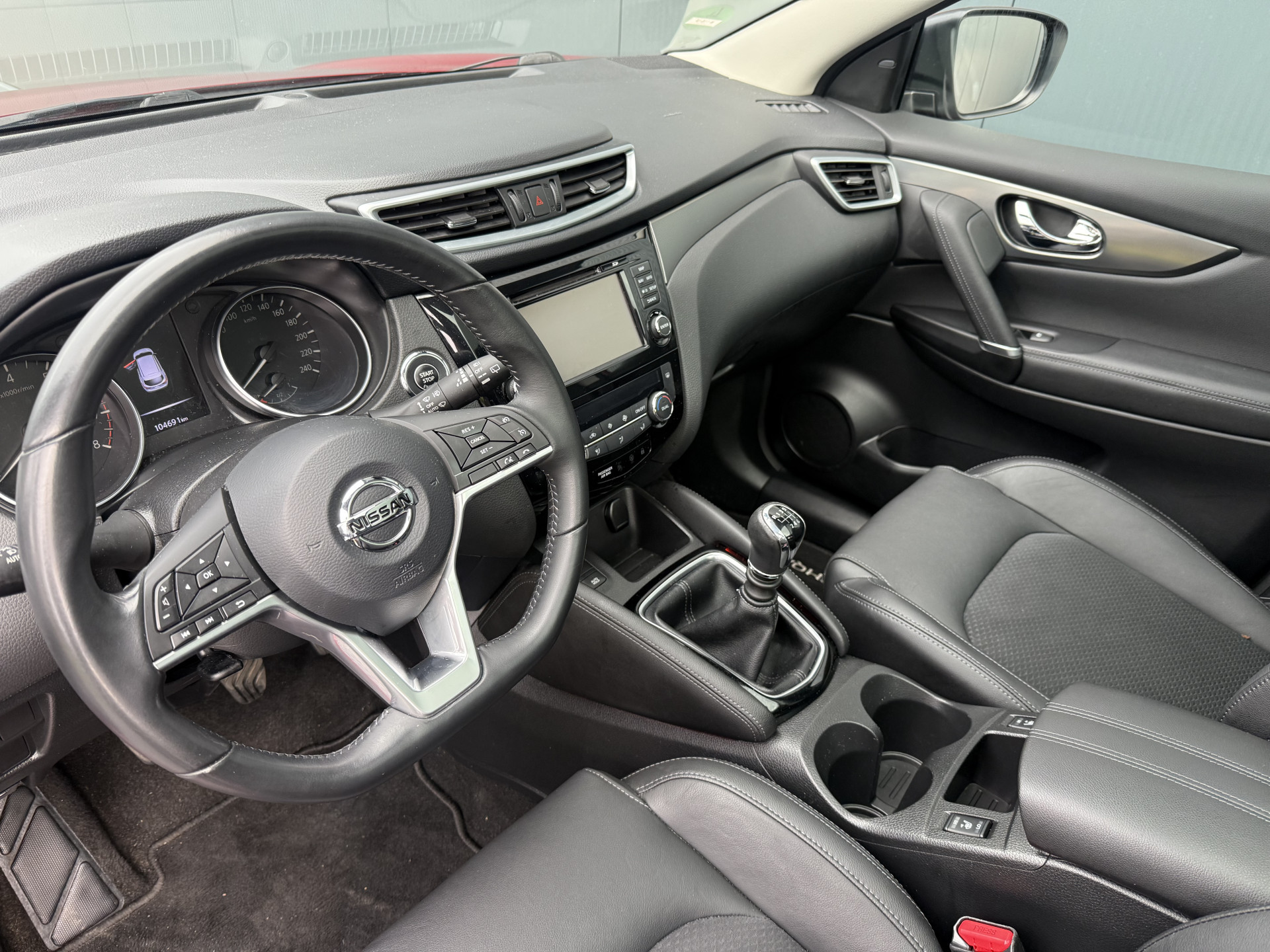 Zeer mooie, ruime, praktische, zuinige en complete Nissan Qashqai 1.2i met Tekna pakket 5-drs met o.a: Wijnrode metallic lak, climate control airco, bekleding stof/leder zwart/anthrazit, glazen panoramadak met elektrische binnen hemel, aluminium dak rails, sportstoelen voor, stoelverwarming voor, elektrisch verstelbare bestuurders stoel, breedbeeld kaart navigatie, achteruit rij camera, bluetooth telefoon aansluiting, bekerhouders voor, Led koplampen, Led dag rijverlichting en Led achterlichten, mistlampen voor, multifunctioneel lederen sportstuurwiel, 4-elektrische ramen, centrale deurvergrendeling op afstand, elektrisch inklapbare buitenspiegels, in delen neerklapbare achterbank, getint glas, privacy glas achter en originele Bi-color 19-inch. lm-velgen. In absolute nieuwstaat van tweede eigenaar met slechts 104.691km !
