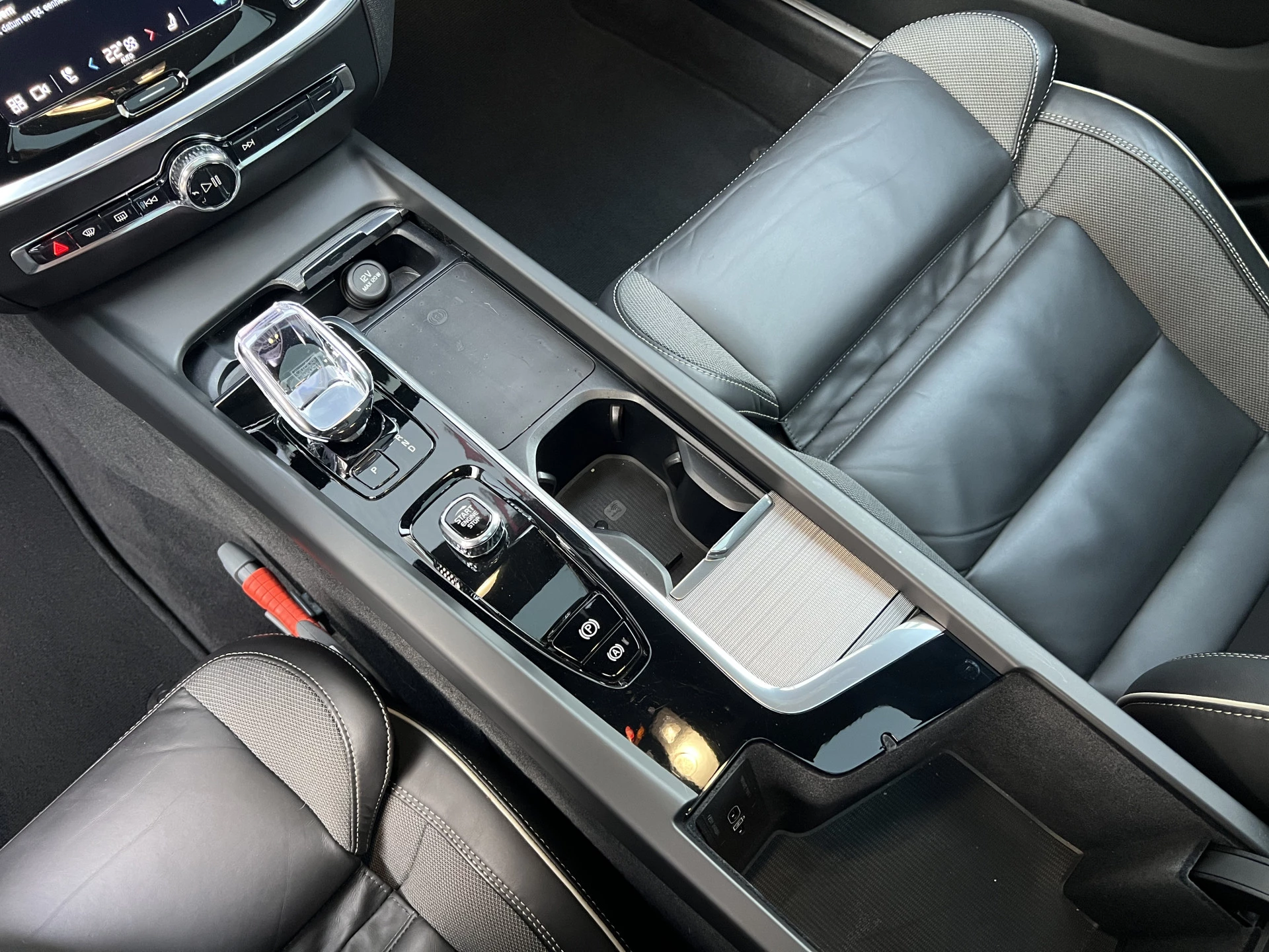 Het interieur is uitgevoerd in volledig zwart met aluminium accenten, lederen sportstoelen en voorzien van alle denkbare opties, comfort- en rijhulp- en veiligheidssystemen. Onder meer Apple Carplay/Android Auto, premium Harman Kardon audiosysteem, Google infotainmentsysteem, adaptieve verlichting, electrisch glazen panoramadak, extra getint glas achter, electrisch wegklapbare trekhaak, etc.