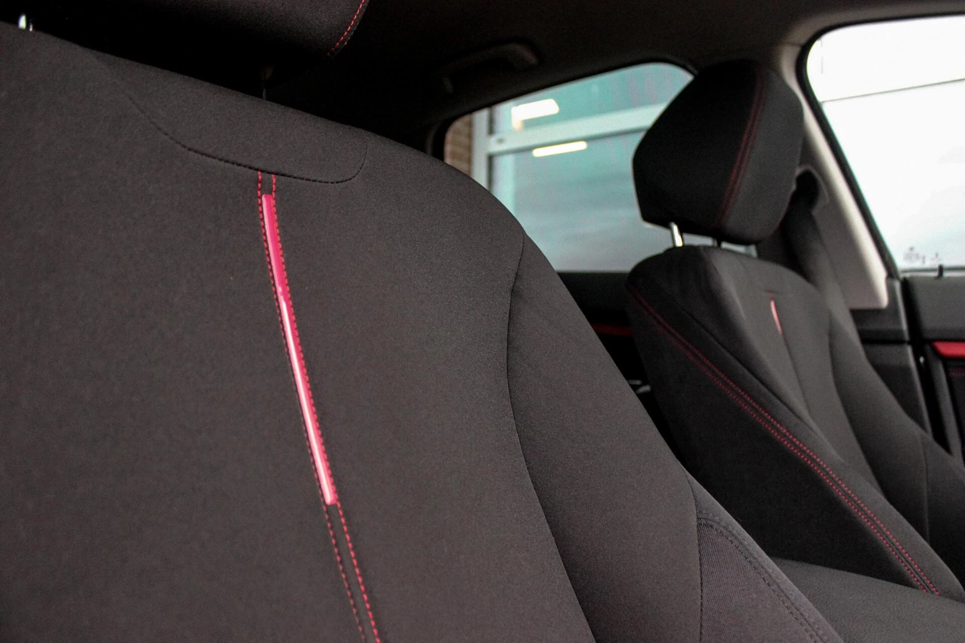 Van binnen een Sport interieur met een Hoogglans zwart dashboard inleg. Achterin een deelbare achterbank met ISO-fix aansluitingen.