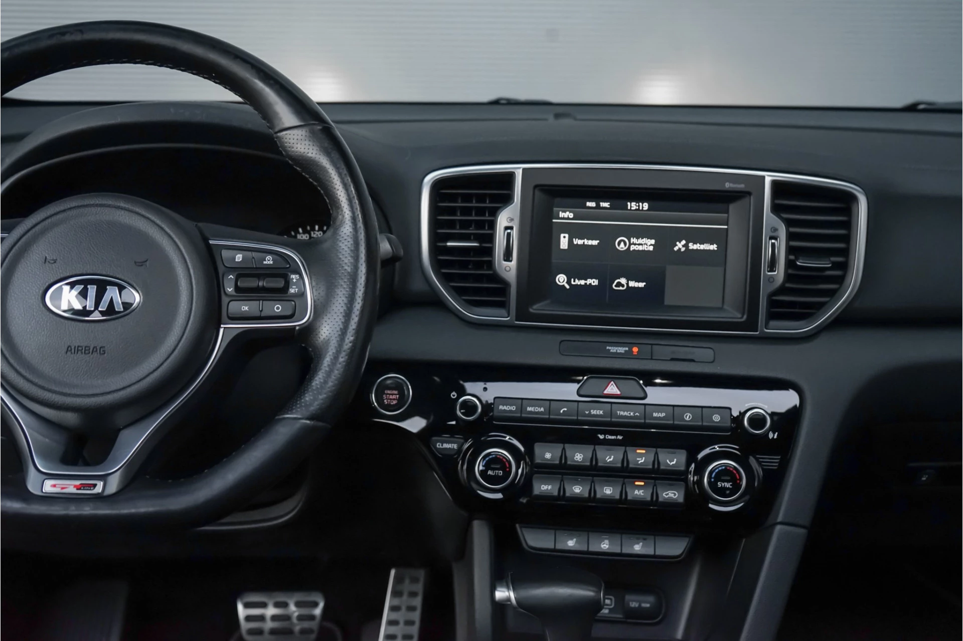 Autobedrijf Schouten biedt u deze Kia Sportage 1.6 T-GDI 4WD GT-Line aan, een origineel in Nederland geleverde auto met 132.990 KM NAP. Het exterieur van de Kia Sportage is uitgevoerd in de metallic kleur: 'Sirius Silver', gecombineerd met een zwart lederen interieur. Verder beschikt de Kia Sportage 1.6 T-GDI 4WD GT-Line over een mooie lijst met fabrieksopties. Denk hierbij aan opties zoals:
