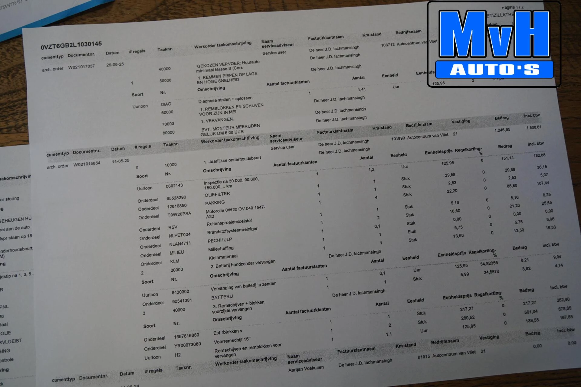 Laatste onderhoudsbeurt gehad in mei 2025 bij 101.990km. Hierbij zijn ook de remschijven en blokken voor vervangen. €1.500,-