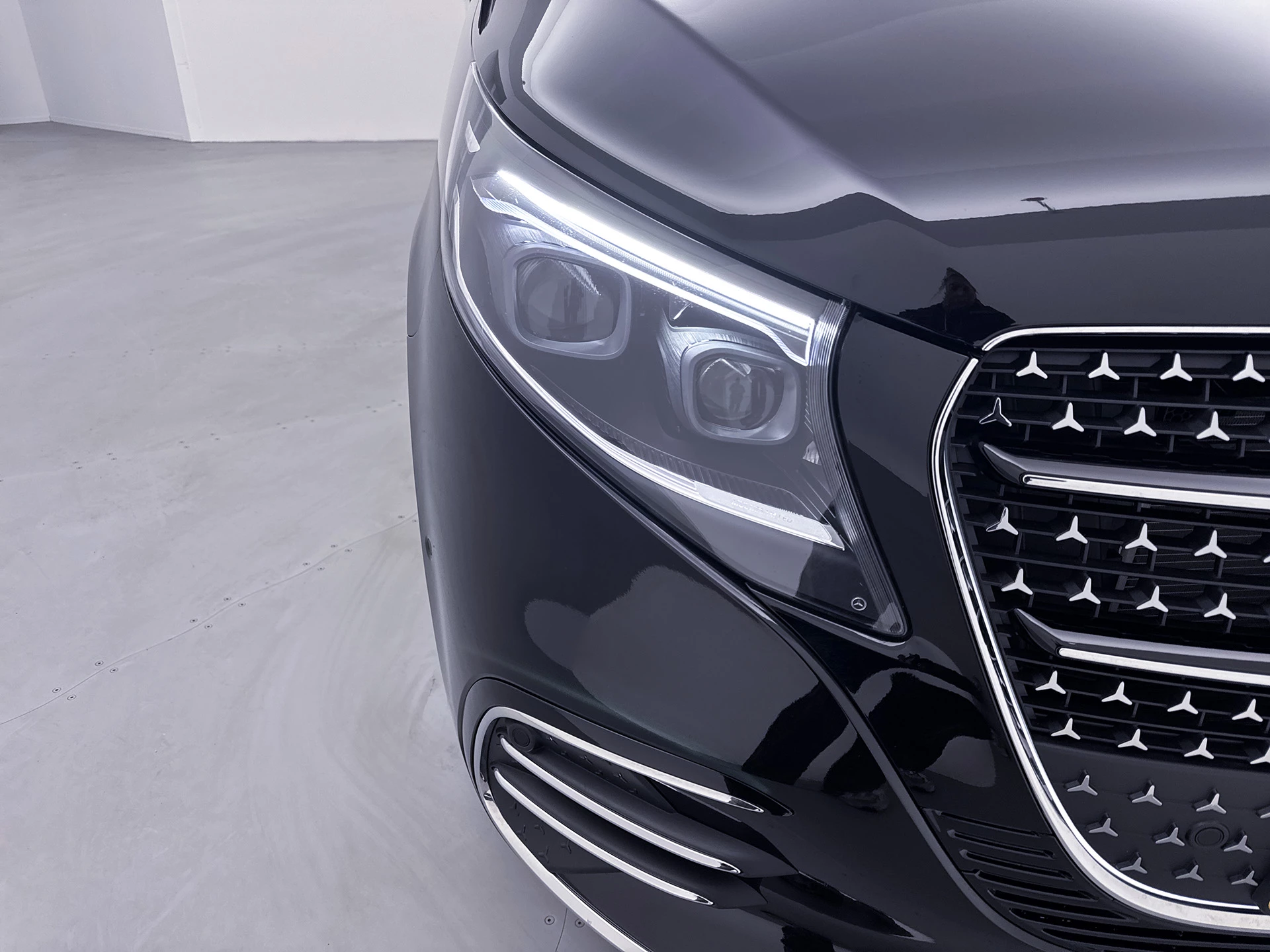 Uitgevoerd in de stijlvolle kleur donker zwart metallic en voorzien van de AMG Avantgarde Line, straalt deze V-Klasse sportiviteit en klasse uit.
