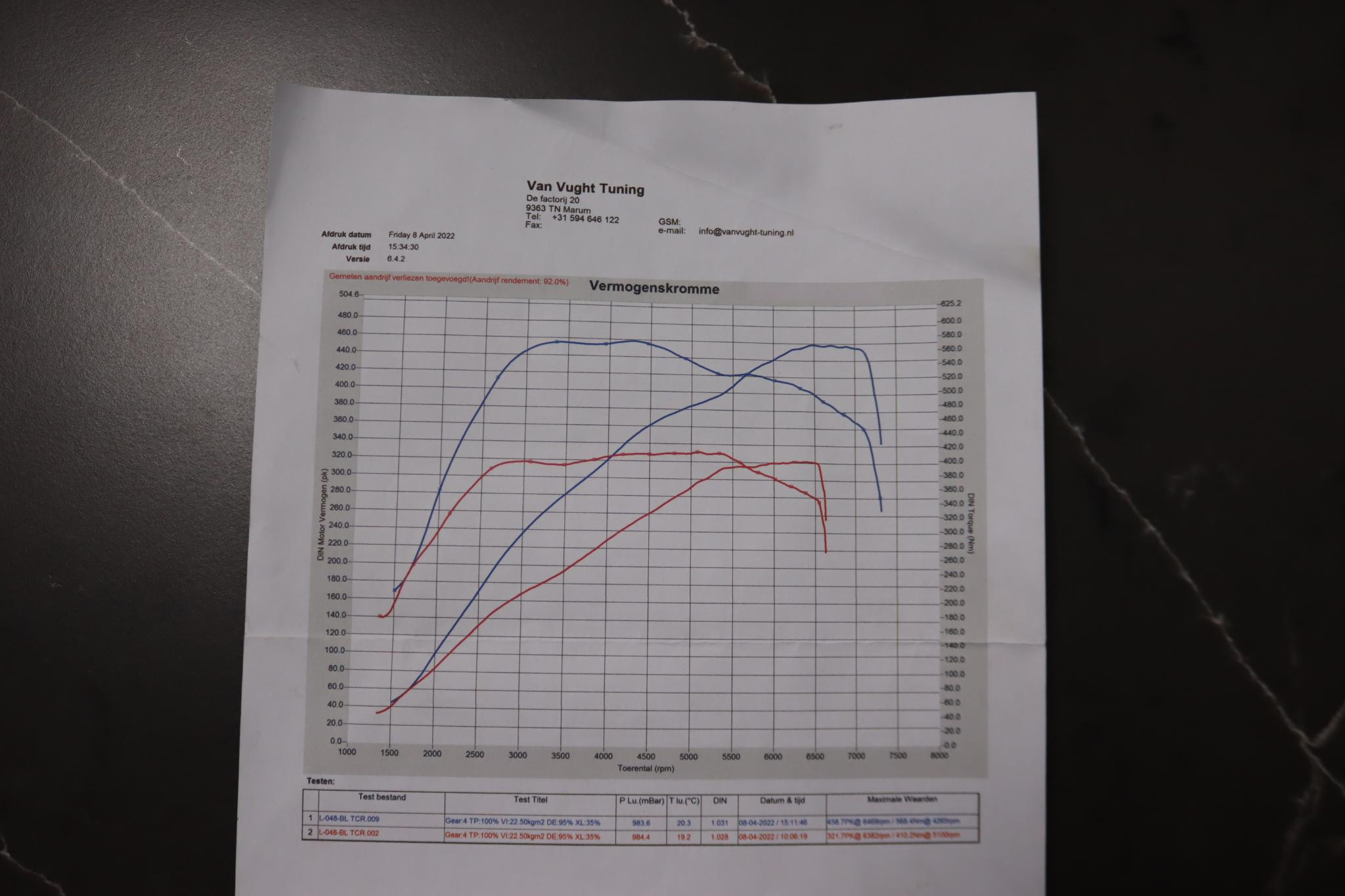 De auto is nu veilig afgesteld op 460Pk, die vrijkomt vanaf de 3de versnelling.