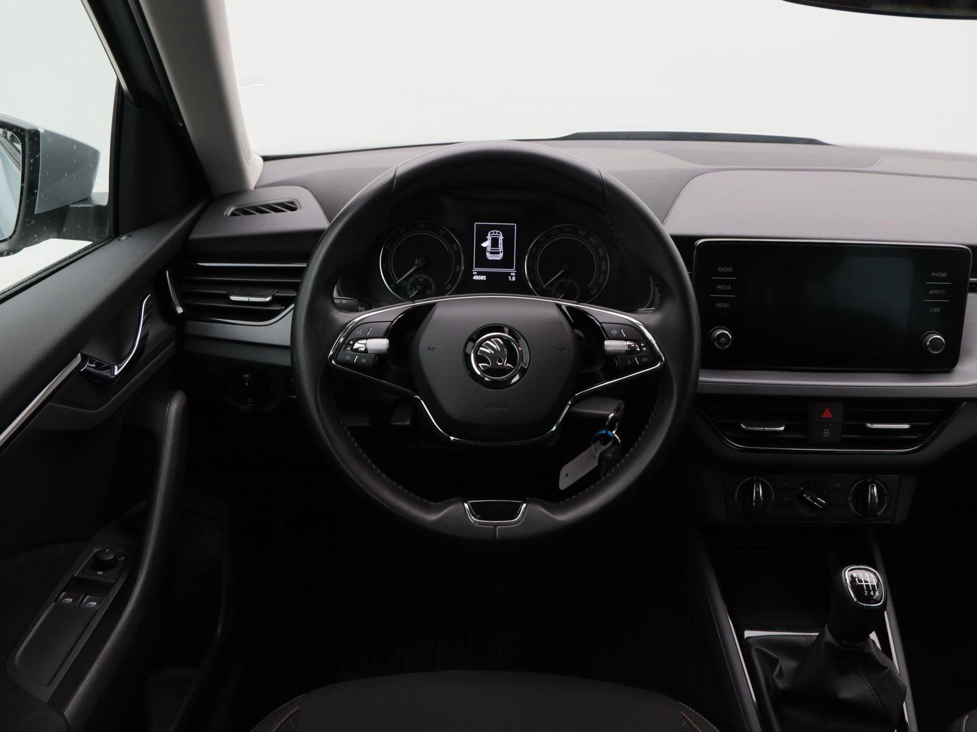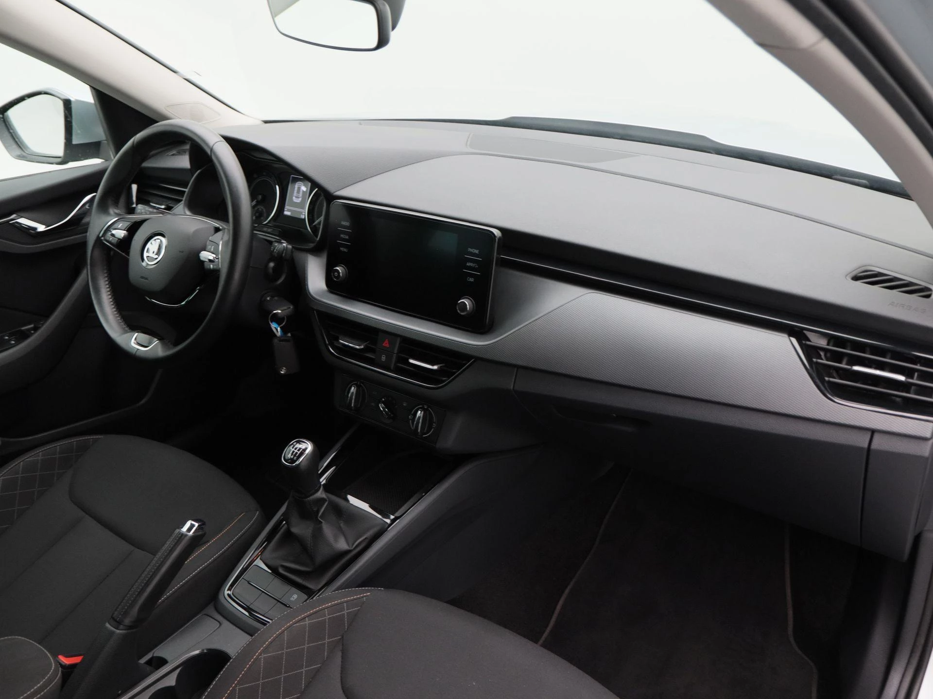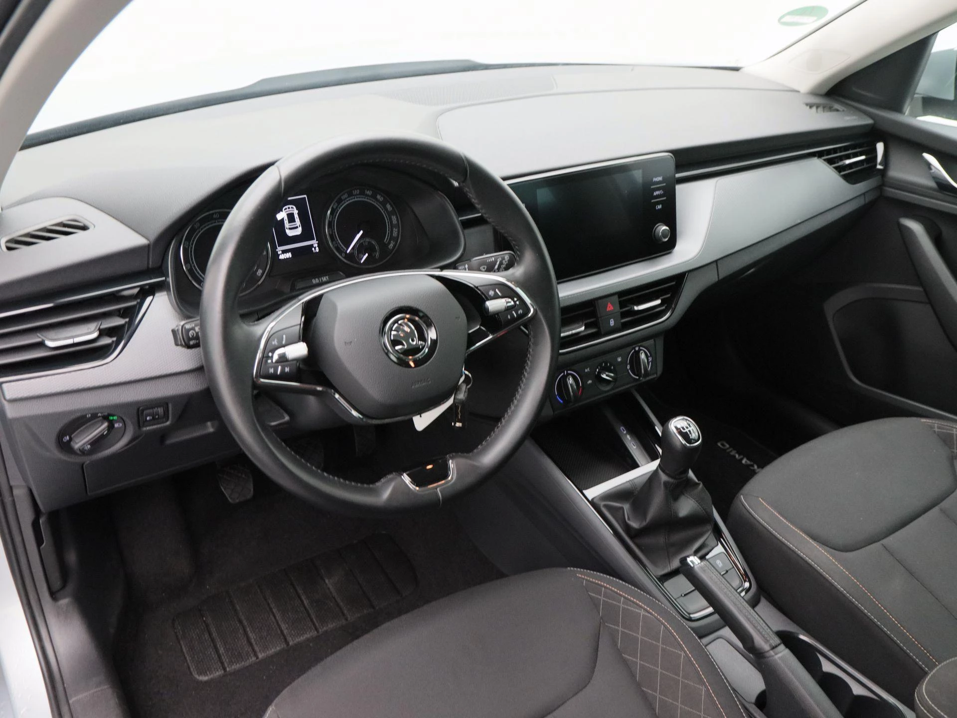 Binnenin geniet u van praktisch comfort en slimme technologie. Met cruise control rijdt u ontspannen langere afstanden. De airconditioning zorgt voor een aangename temperatuur in het interieur. Via Apple CarPlay koppelt u eenvoudig uw smartphone voor navigatie, muziek en communicatie. Met de aanwezige trekhaak is deze Kamiq bovendien extra praktisch voor bijvoorbeeld een fietsendrager of aanhanger.