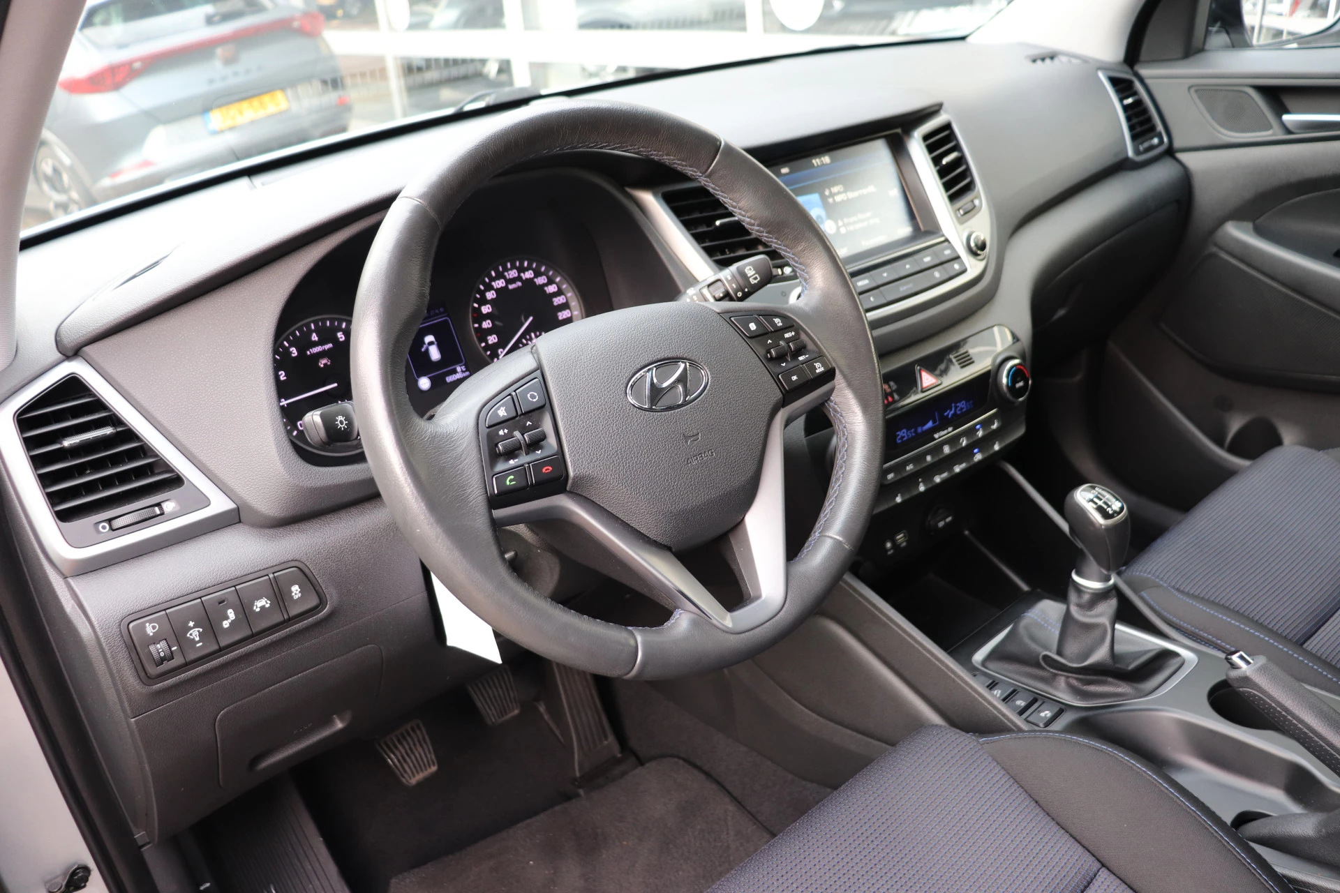 Een onopvallend paaltje of een overstekend kind achter de auto brengt risico's met zich mee. Gelukkig laat de achteruitrijcamera feilloos zien of alles veilig is. Spraaksturing betekent dat u verschillende functies met uw stem kunt bedienen. Nooit meer de weg kwijt: daarvoor zorgt het onboard full map navigatiesysteem. Deze Hyundai Tucson is voorzien van sensoren aan de achterzijde om een achteropkomend verkeer waarschuwing te geven als de afstand tussen u en een achterligger te klein is. Voor een storingvrije radio-ontvangst zorgt de ingebouwde DAB-ontvanger. Deze Hyundai is voorzien van regensensor, cruise control, airconditioning, automatisch dimmende binnenspiegel en centrale deurvergrendeling met afstandsbediening.