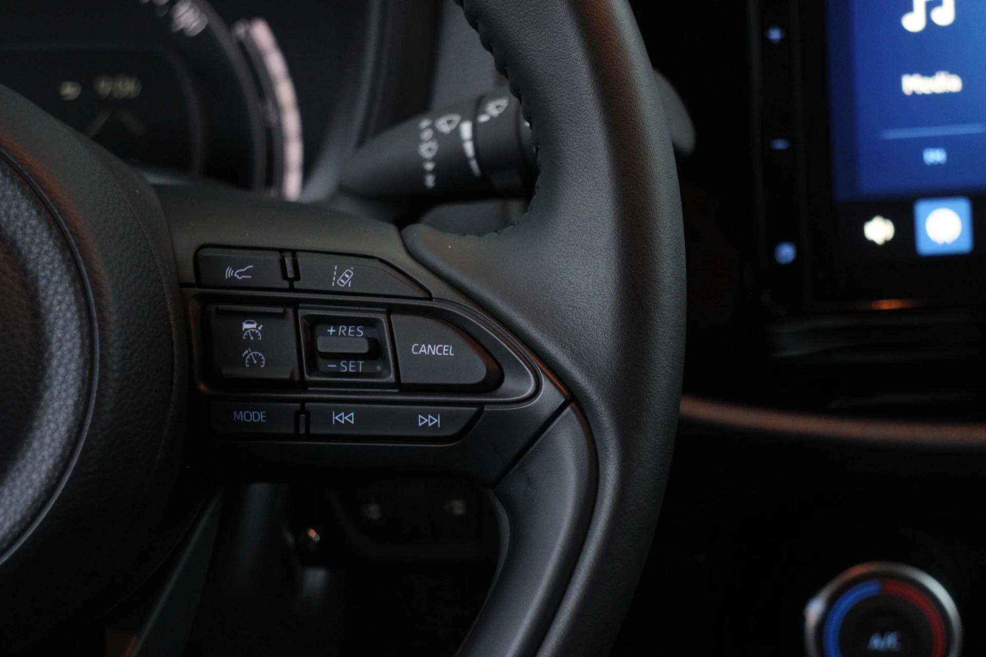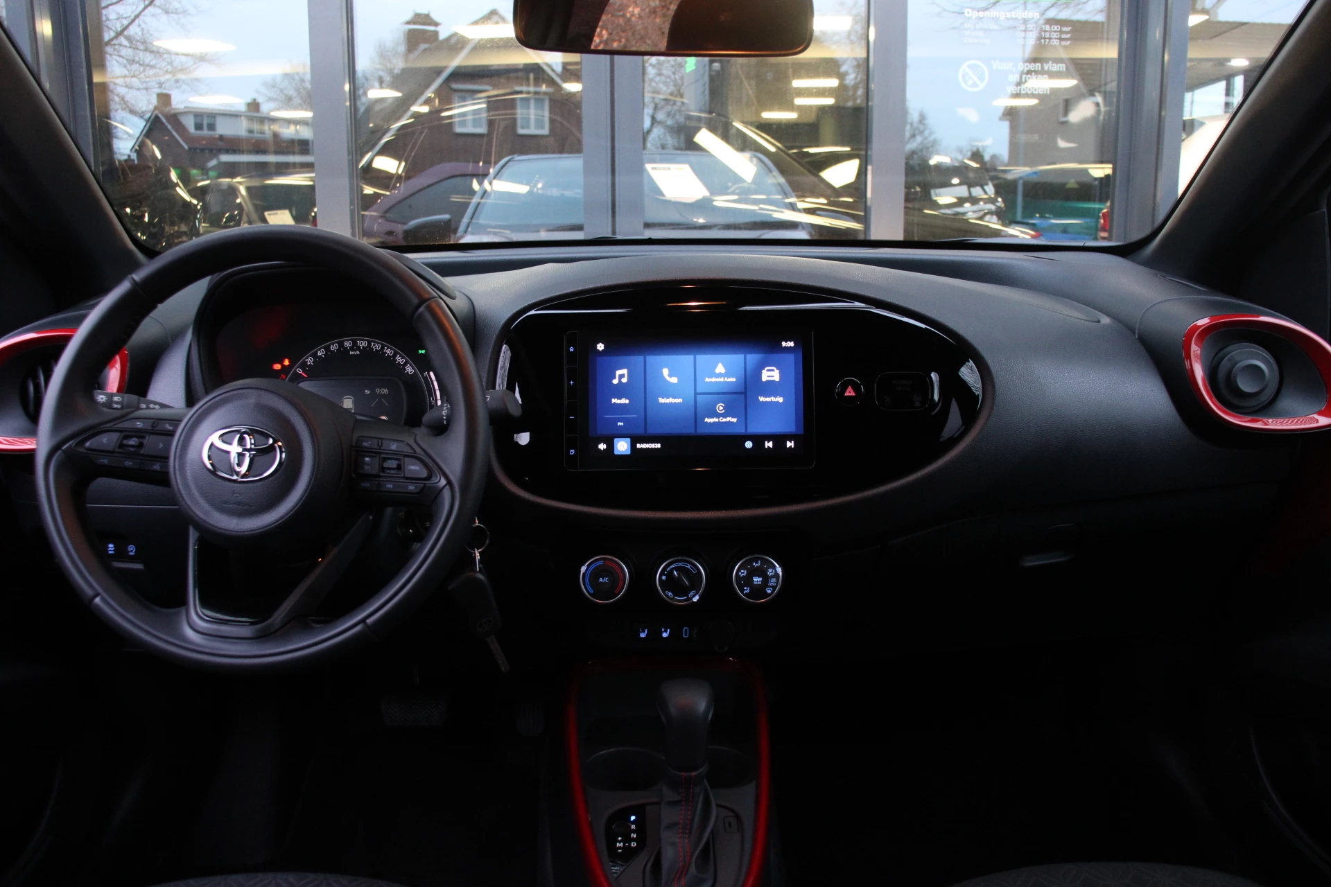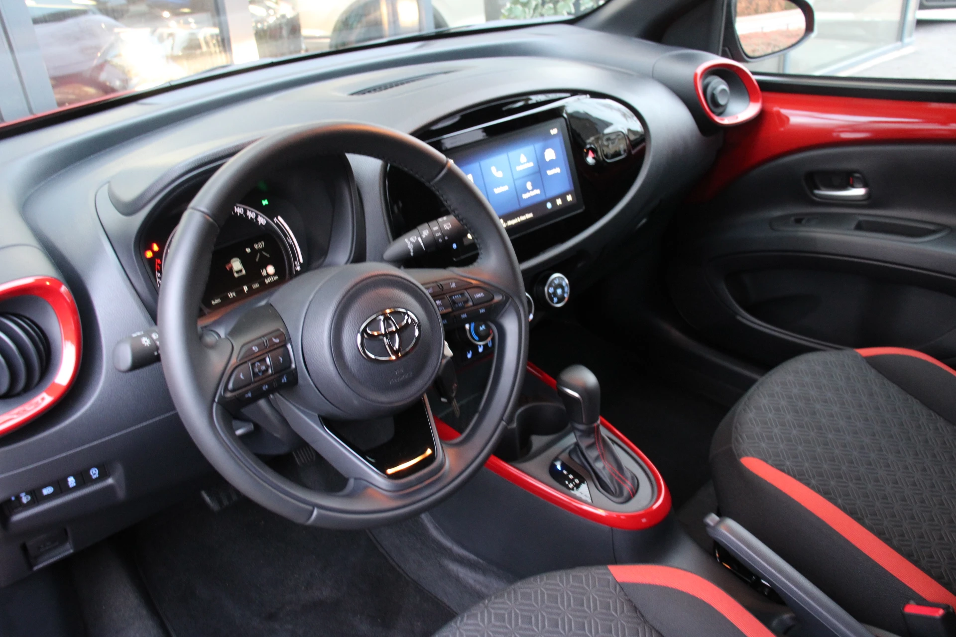 Ook achter de auto geen verrassingen bij het inparkeren. Daarvoor zorgt de achteruitrijcamera. Adaptive cruise control is veilig en comfortabel. De snelheidsregelaar houdt automatisch afstand tot het voertuig dat voor u rijdt. Aan boord van deze Toyota Aygo X is een achteropkomend verkeer waarschuwing voor extra veiligheid. Of het buiten nu warm is of koud, dankzij automatische airconditioning is het binnen altijd behaaglijk. Voor storingvrije digitale radio-ontvangst zorgt de DAB-ontvanger. Met regensensor, lederen stuur en centrale deurvergrendeling met afstandsbediening is deze auto helemaal compleet.