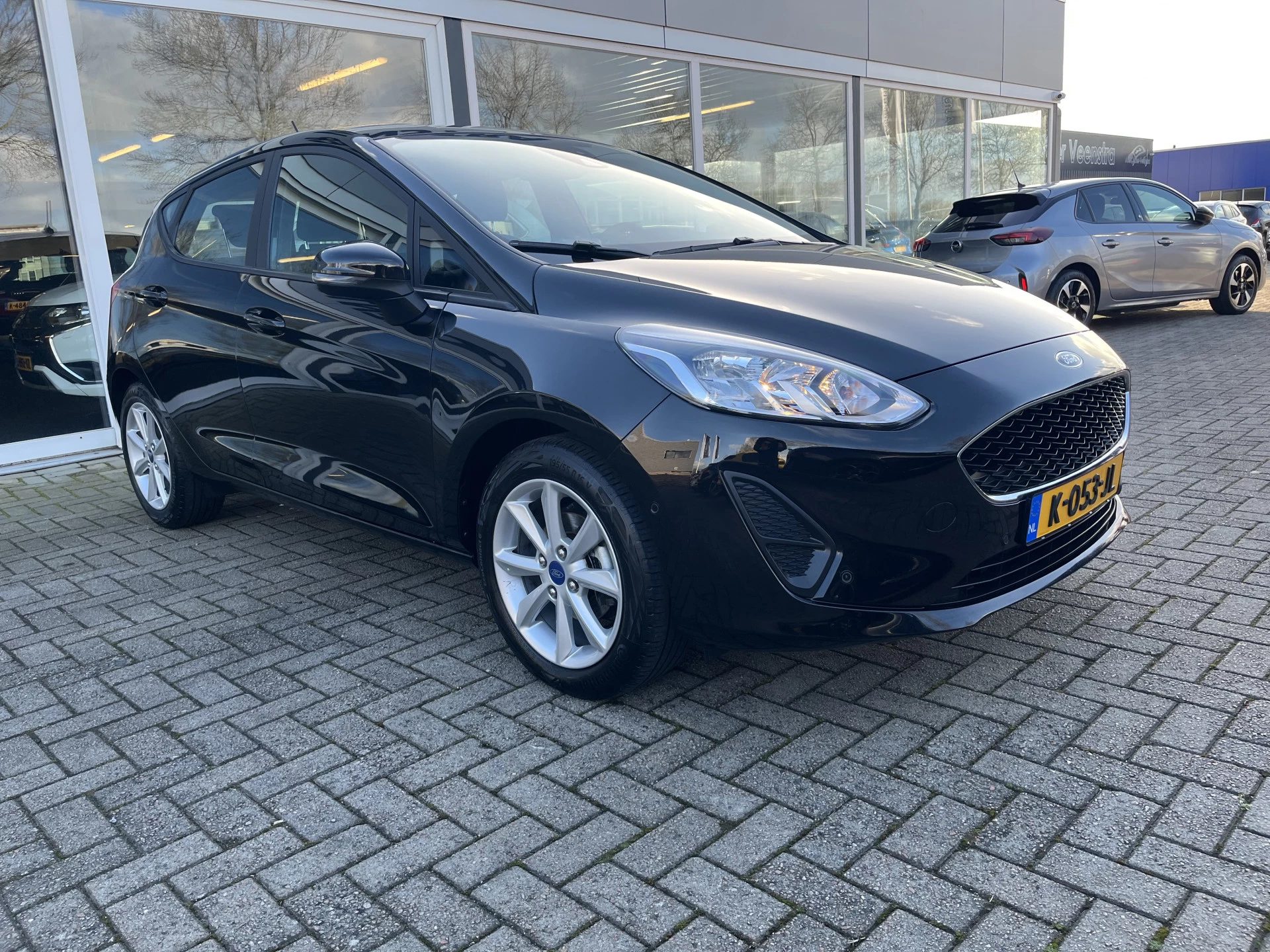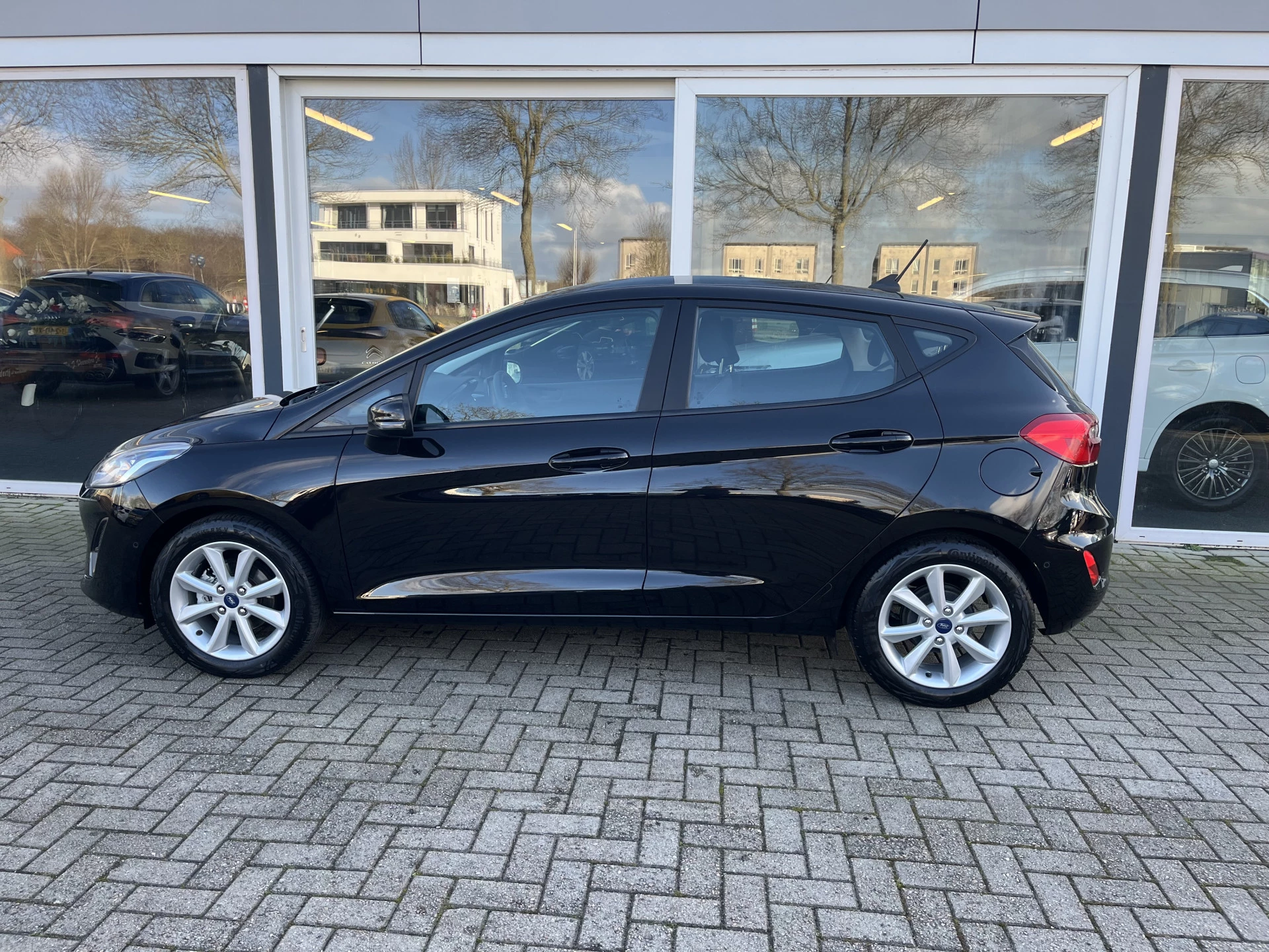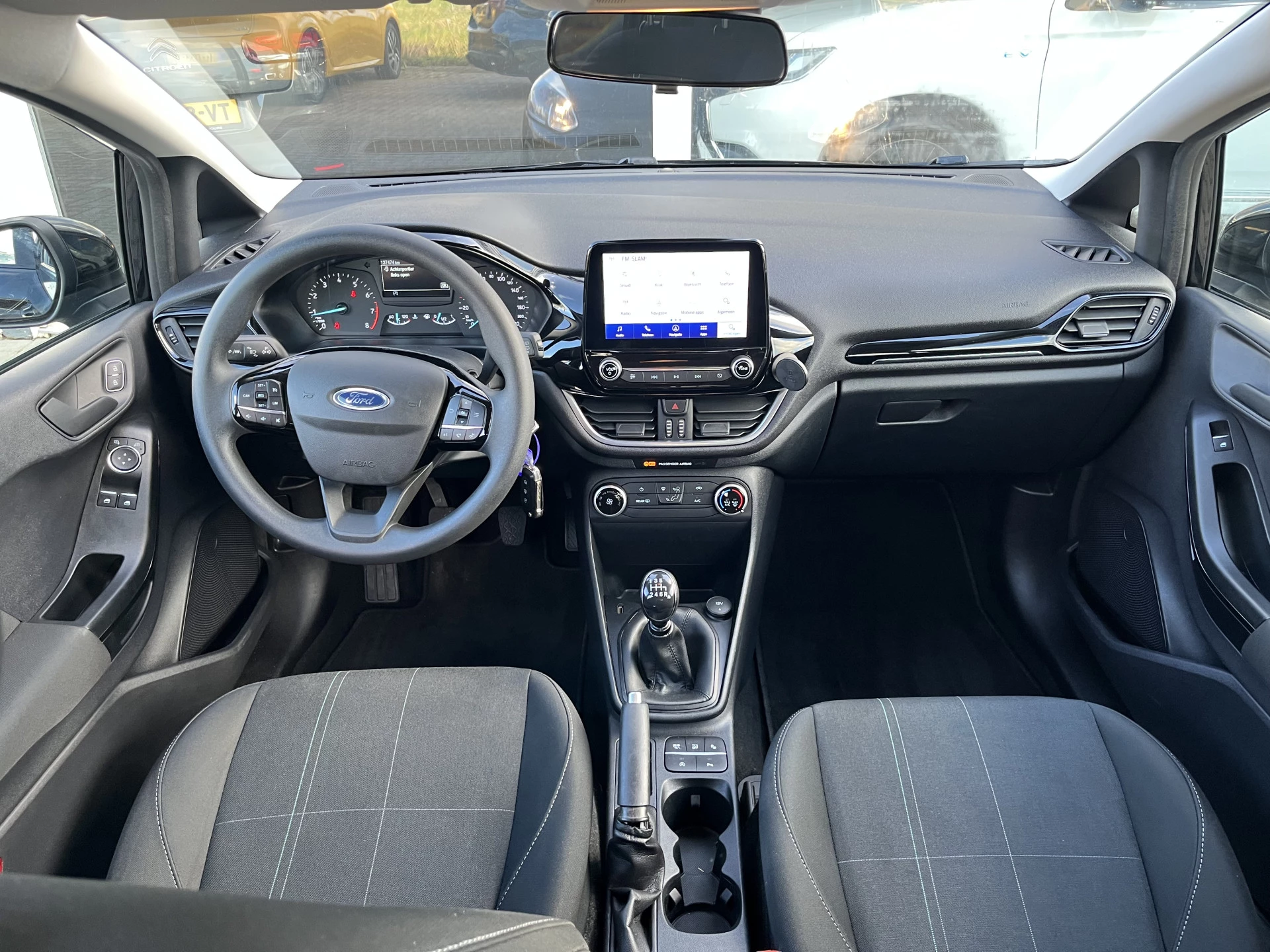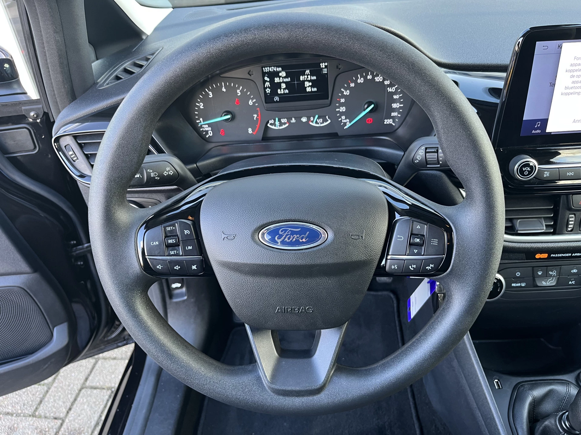 Connected Services zorgen ervoor dat de belangrijkste functies en data van de auto altijd en overal te checken zijn. Gewoon via de app op de smartphone. Met spraakbediening of de knoppen op het stuur regelt u het audiosysteem en het audio-navigatiesysteem met 8 inch display, terwijl u uw blik op de weg gericht houdt. De audio-installatie biedt daarbij glasheldere ontvangst dankzij DAB-ontvangst. Omdat u nu eenmaal niet overal ogen heeft, is deze Ford Fiesta voorzien van een achteropkomend verkeer waarschuwing die registreert wanneer de afstand tot uw achterligger te krap is. Ook fijn als u op de voorgeschreven snelheid wilt blijven: de cruise control. Het hele jaar door zorgt airconditioning voor een prettige temperatuur. Met WIFI-hotspot, centrale deurvergrendeling met afstandsbediening, boordcomputer en verstelbaar stuur is deze Ford helemaal compleet.