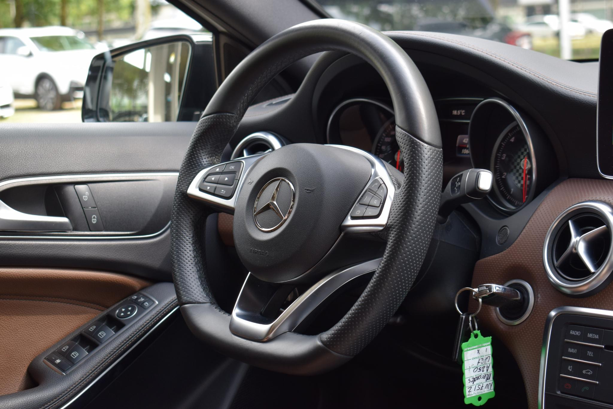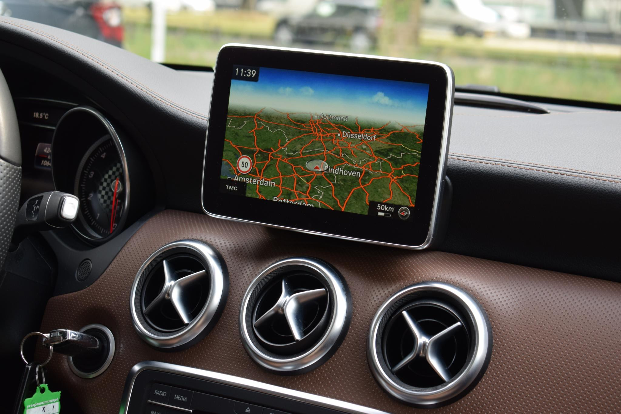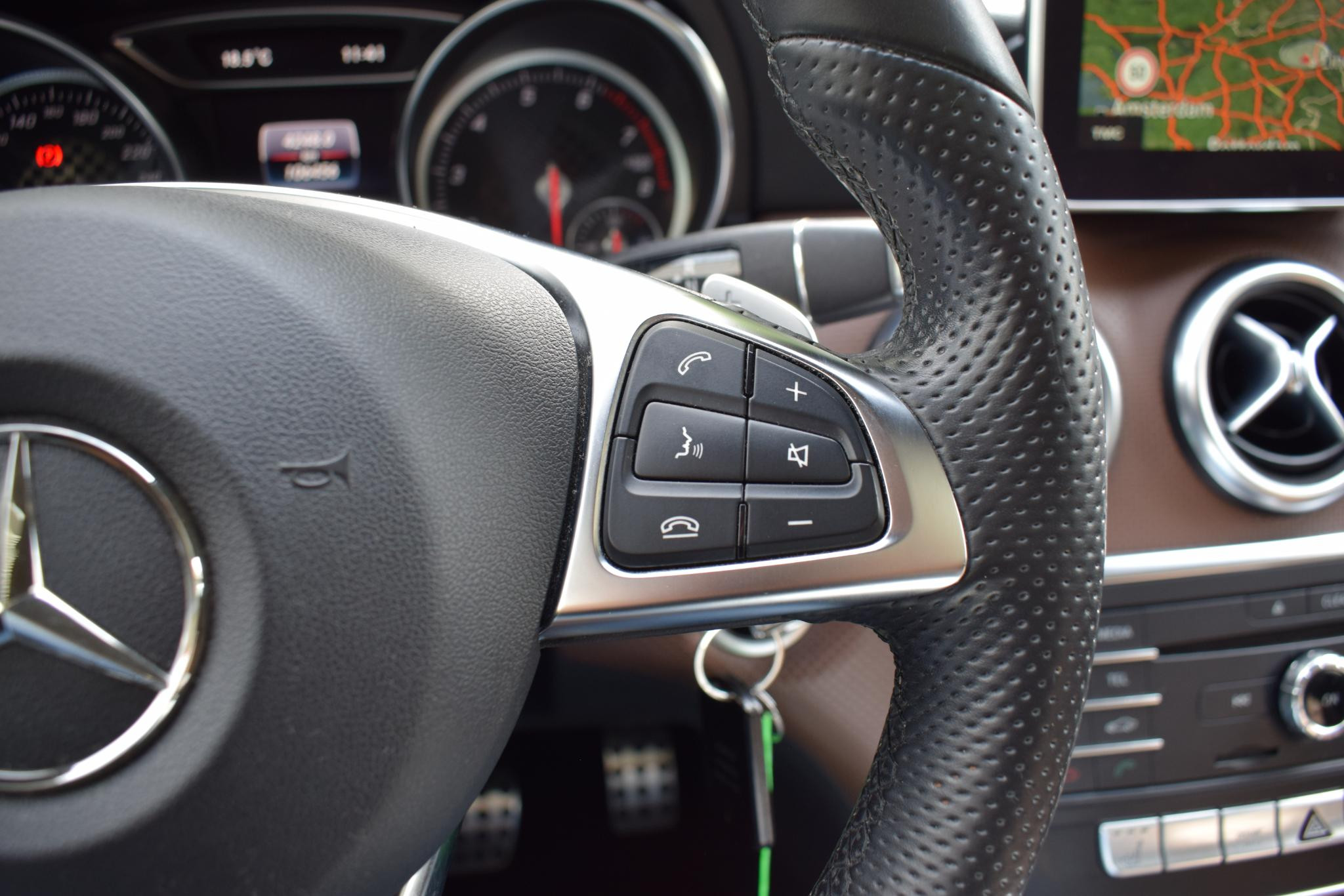 Altijd een deskundige gids aan boord, dankzij het full map navigatiesysteem. Onbedoeld snijden na het inhalen gebeurt niet meer, dankzij de achteropkomend verkeer waarschuwing. Natuurlijk is er ook automatische airconditioning aanwezig. U hoeft het stuur geen moment los te laten om de audio aan te passen. De audiobediening op het stuur is een veilige en praktische oplossing. Soms heeft u meer parkeerruimte dan u denkt. Maar soms ook niet. De parkeersensoren vertellen precies hoeveel. Met lederen sportstuur, regensensor, cruise control, automatisch dimmende binnen- en buitenspiegels, centrale deurvergrendeling met afstandsbediening en lederen versnellingspook is deze Mercedes-Benz helemaal compleet.
