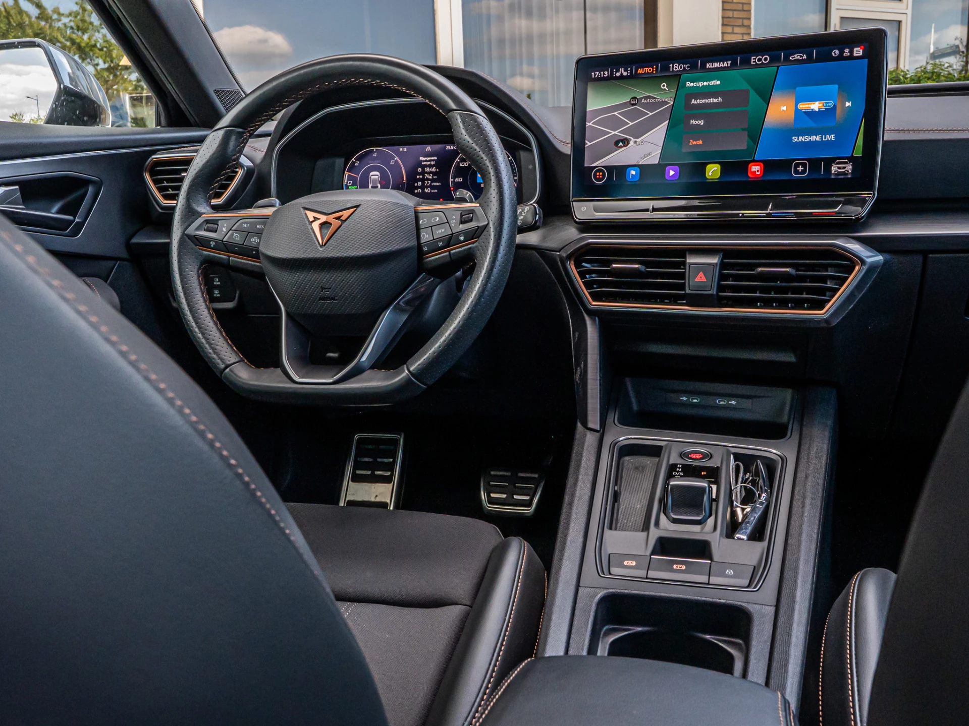 Zeer complete uitvoering met o.a: ELEK UITKLAPBARE TREKHAAK, 360 CAMERA, ELEK ACHTERKLEP, SCHAALSTOELEN, BLACK OPTIC PAKKET, STOELVERWARMING, VIRTUAL DASBOARD, CAMERA ACHTER, PREMIUM AUDIO, 19 INCH ZWART LICHT METALEN VELGEN, AUTOMATISCHE AIRCO, HALF LEDEREN BEKLEDING, LED VERLICHTING, ADAPTIEVE CRUISE CONTROL, LANE ASSIST, FRONT ASSIST, AMBIENTE VERLICHTING, NAVIGATIE, DOORLOCK, ADAPTIEF SPORTONDERSTEL, DAB, PARKEERSENSOREN ACHTER, APPLE CARPLAY, , ZWARTE HEMEL, SPORTSTOELEN, ELEK. RAMEN, ELEK. SPIEGELS + INKLAPBAAR, ISOFIX, ETC. CUPRA-DEALER-ONDERHOUDEN!! En nog veel meer.