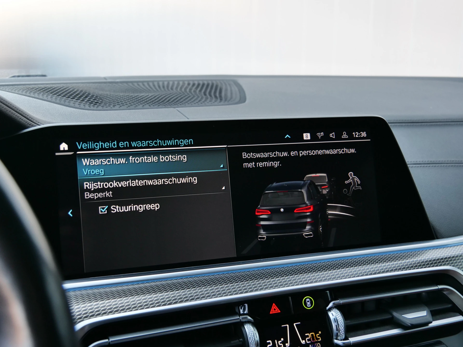 De nieuwste veiligheidssystemen komen in deze BMW X5 samen. U rijdt ook veiliger omdat deze auto voor u de verkeersborden langs de weg kan lezen. De belangrijkste borden worden op uw instrumentarium geprojecteerd, zodat u ze niet kunt missen. Ongemerkt buiten de rijstrook raken? Nee hoor, het Lane-keeping systeem waarschuwt en corrigeert. De sensor van het forward collision warning-systeem registreert permanent de afstand tot voorliggers en grijpt in als een botsing dreigt. De auto is ook uitgerust met hill hold functie, vermoeidheidsherkenning, autonoom remsysteem en bandenspanningcontrolesysteem.