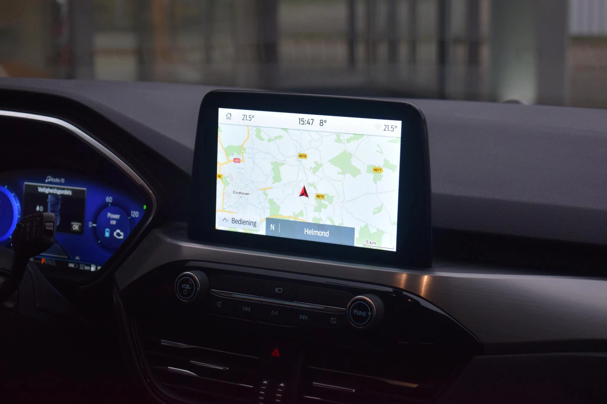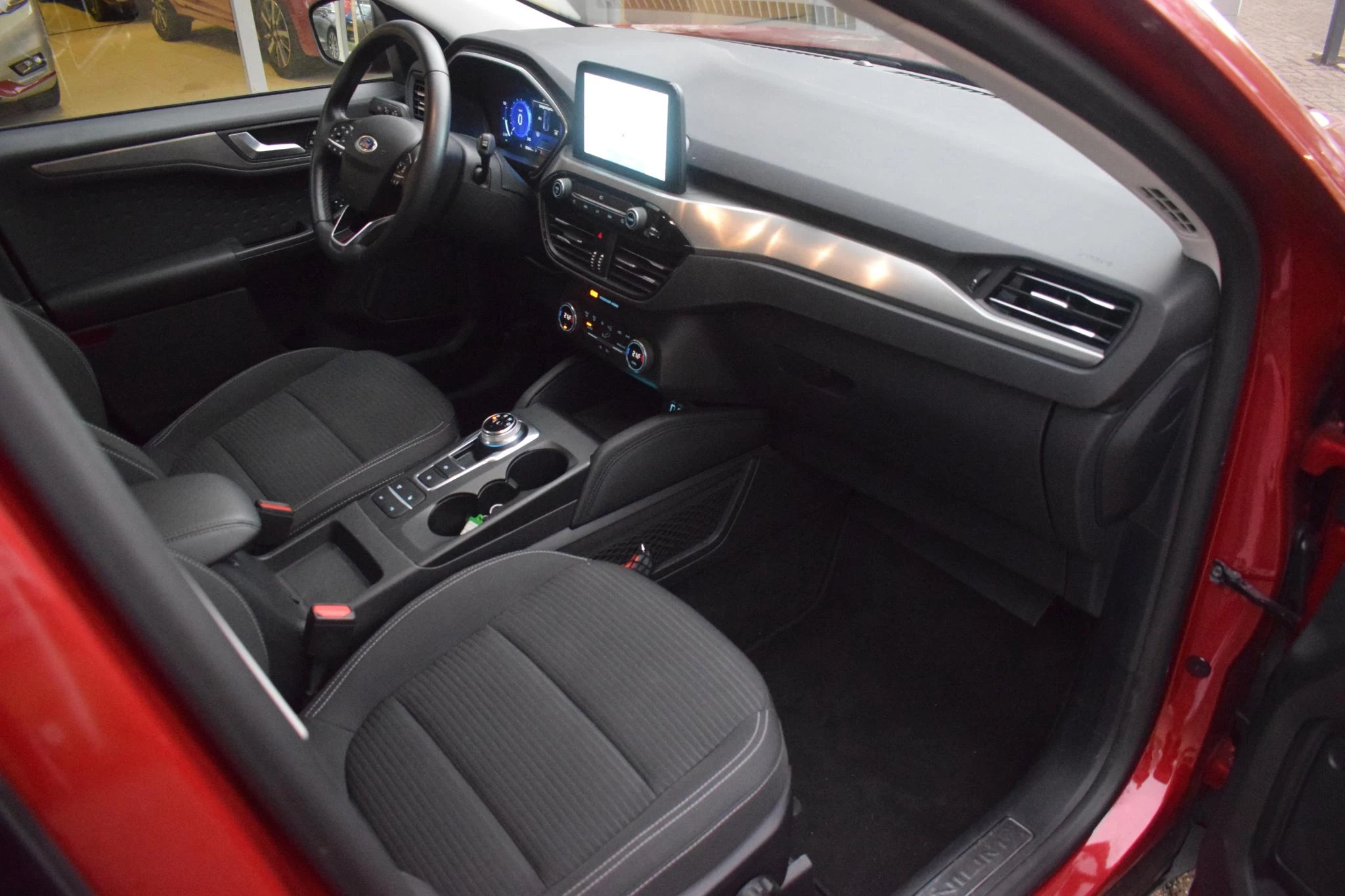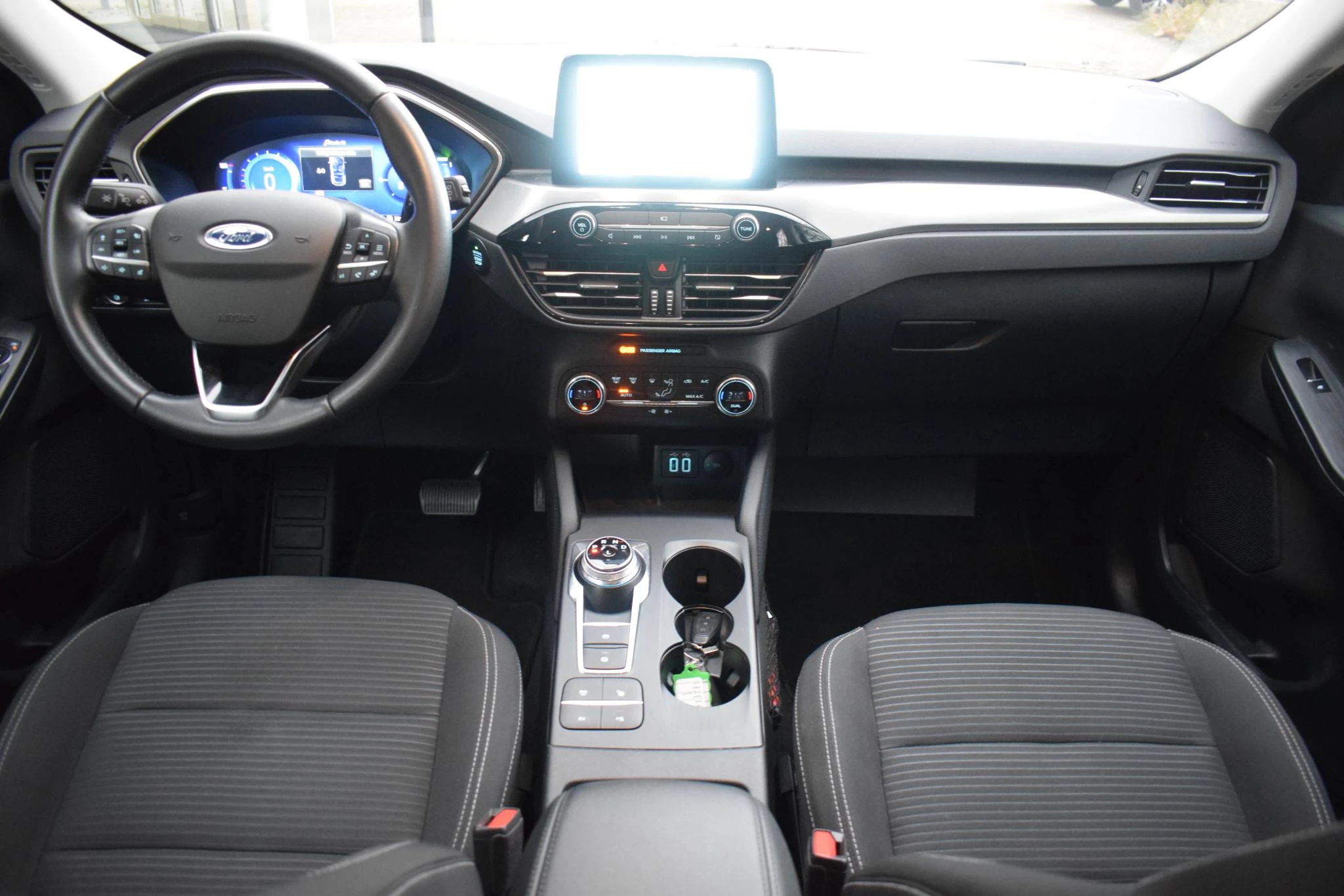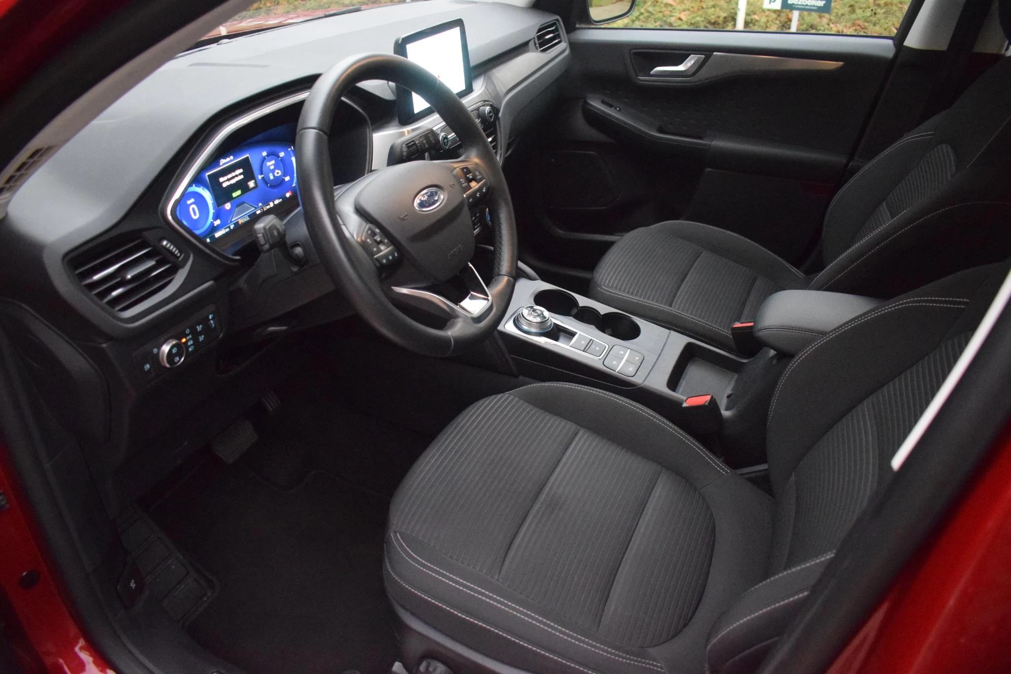 Het digitale dashboard is een perfecte bijrijder. Alles benodigde informatie is permanent zichtbaar of opvraagbaar. Zodra u naar de 'R' schakelt, gaat de achteruitrijcamera in werking en heeft u een perfect zicht op alles wat zich achter de auto afspeelt. Met adaptive cruise control houdt de auto zelfstandig afstand tot uw voorligger. Een veiligheidsverhogende optie waarmee u comfortabel onderweg bent. Gemak dient de mens. Dankzij de spraaksturing bedient u de belangrijkste functie met uw stem. Veilig en comfortabel rijden wordt nog eens versterkt door Connected Services, zodat u diverse vitale functies van de auto altijd kunt checken in de app. Met full map navigatiesysteem, automatische airconditioning, draadloos opladen, DAB ontvangst, regensensor en keyless entry is deze Ford helemaal compleet.