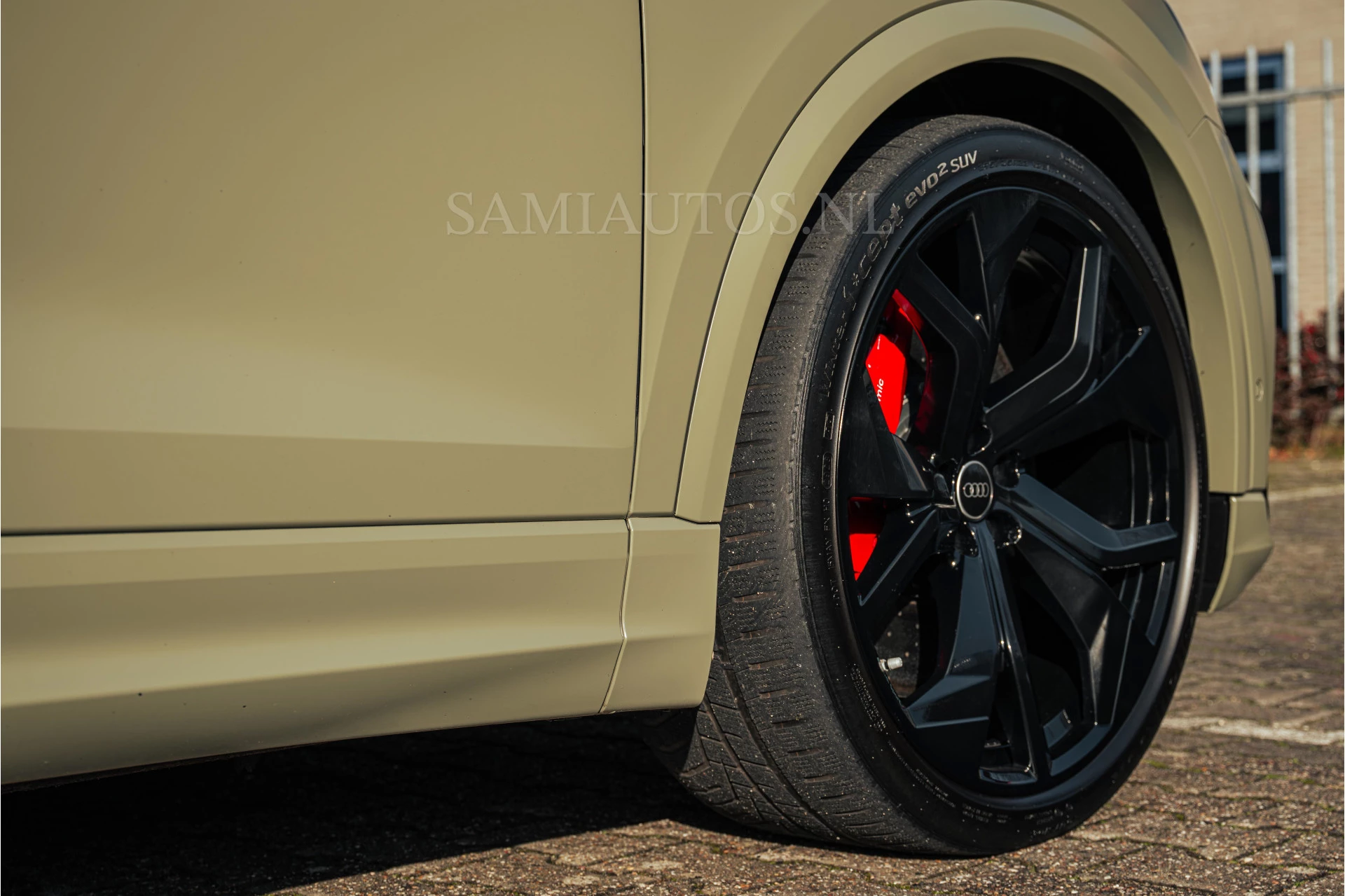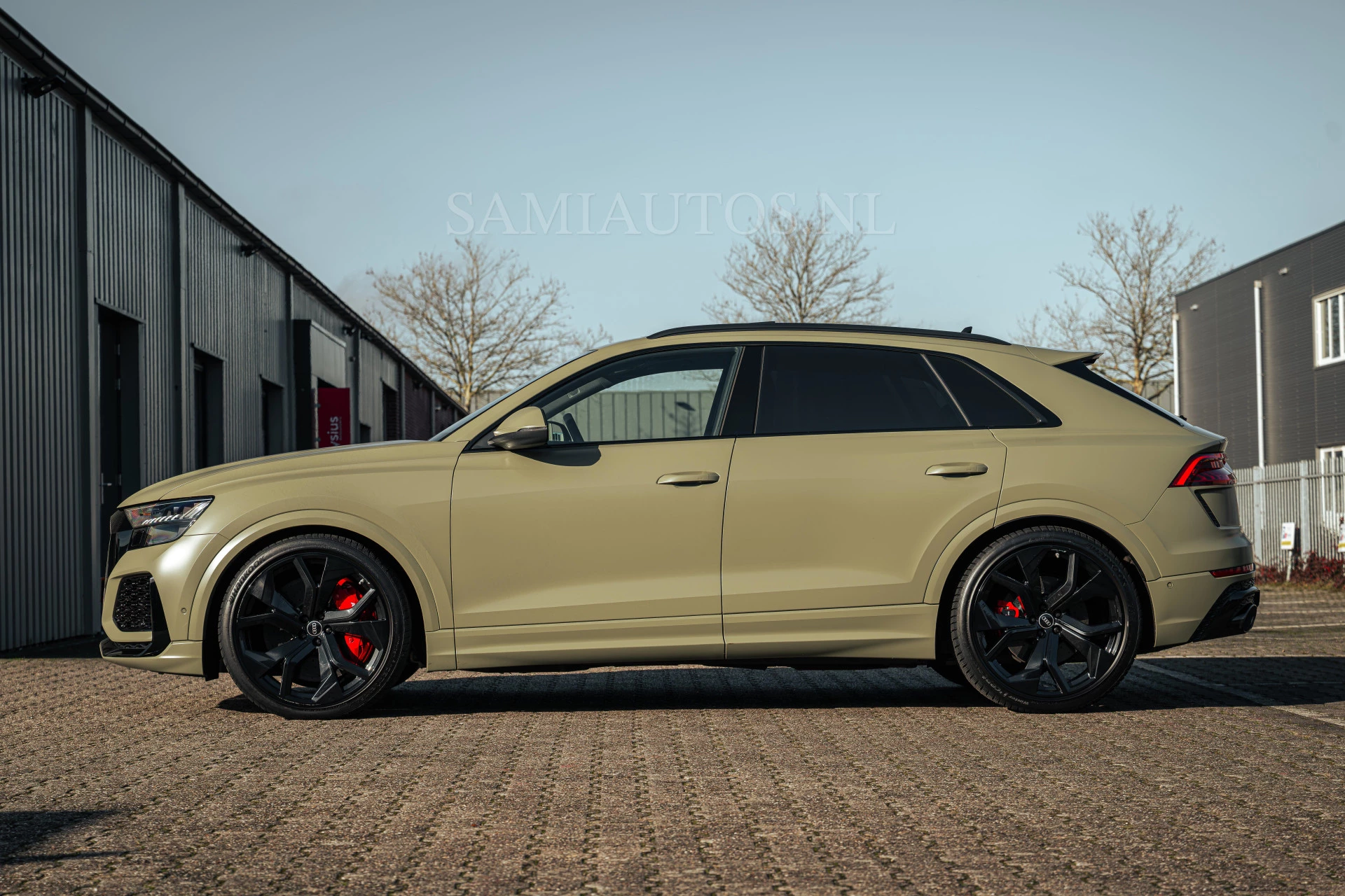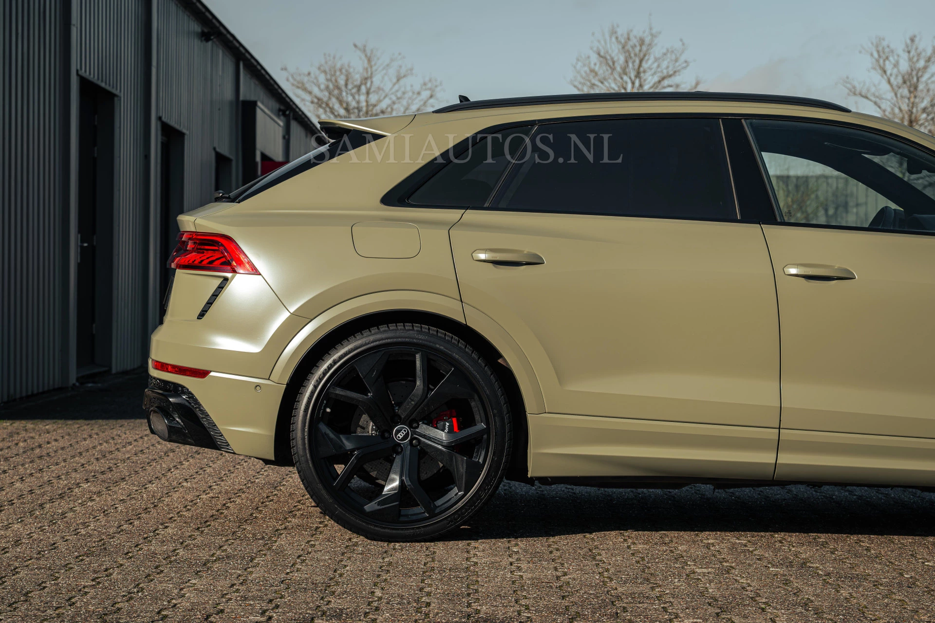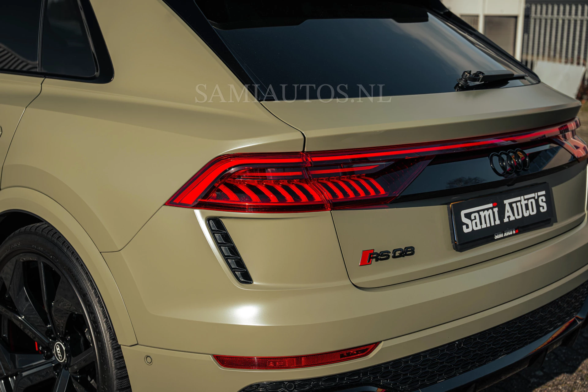 Deze Audi RS Q8 is momenteel gewrapt in mat olijfgroen. De originele kleur is zwart metallic.