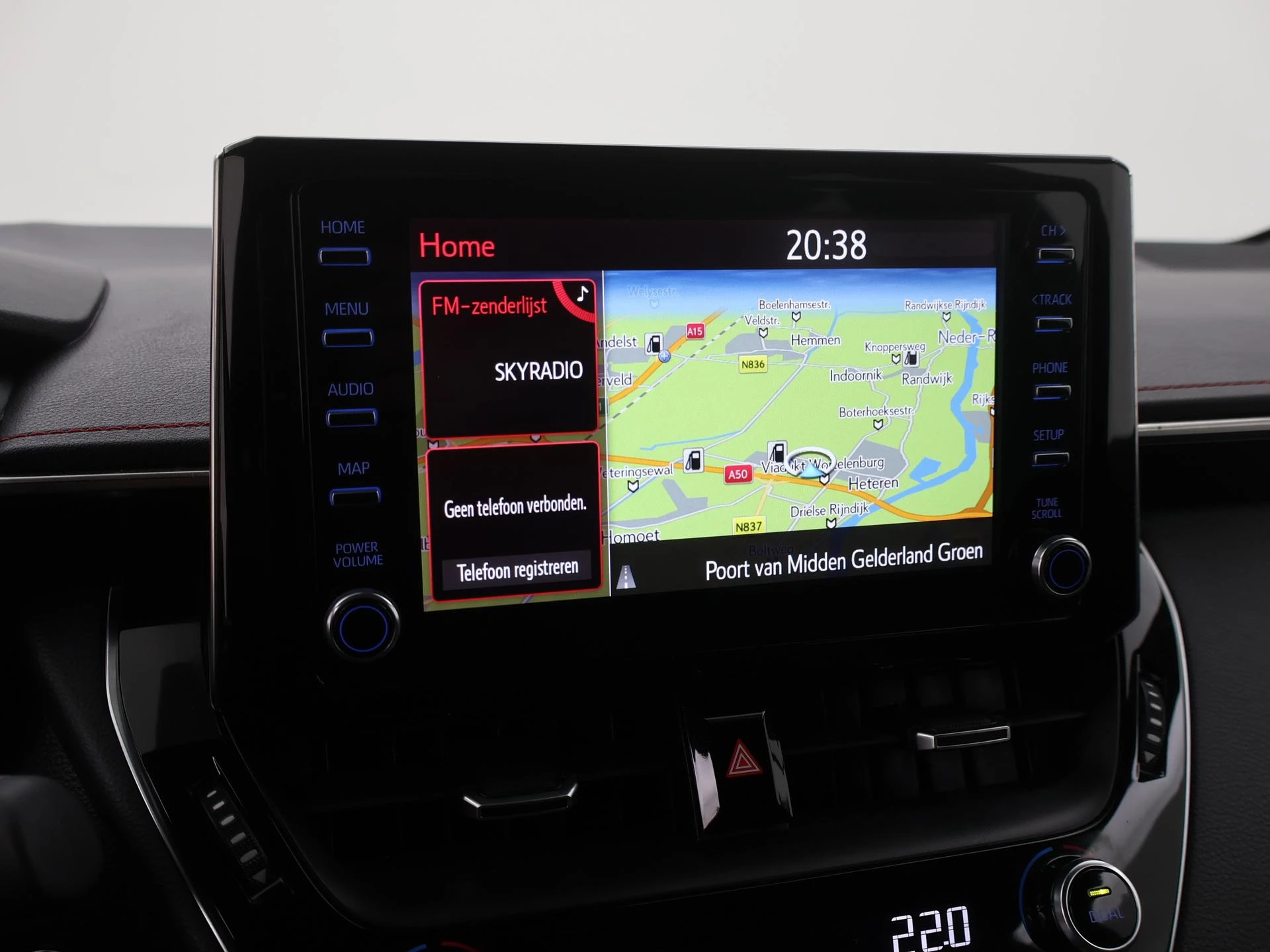 De nieuwste veiligheidssystemen komen in deze Toyota Corolla Touring Sports samen. Verkeersbord-detectie herkent verkeersborden en toont deze op het instrumentarium van de auto. Het Lane-keeping systeem registreert permanent of u binnen de lijnen van de rijstrook blijft; dwaalt u onbedoeld af, dan waarschuwt het systeem en corrigeert de koers. Als een fiets of ander voertuig zich in de dode hoek bevindt, waarschuwt het actieve dodehoekdetectie. Dit helpt ernstige ongelukken voorkomen. De auto is ook uitgerust met head-up display, forward collision warning system, brake assist, vermoeidheidsherkenning en bandenspanning controlesysteem.